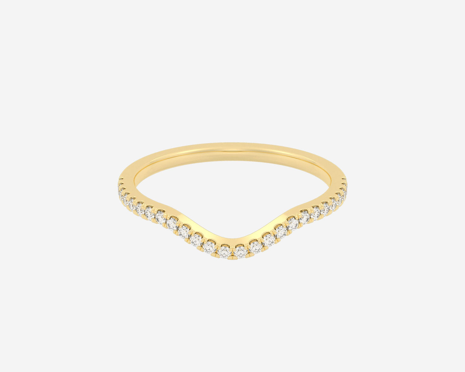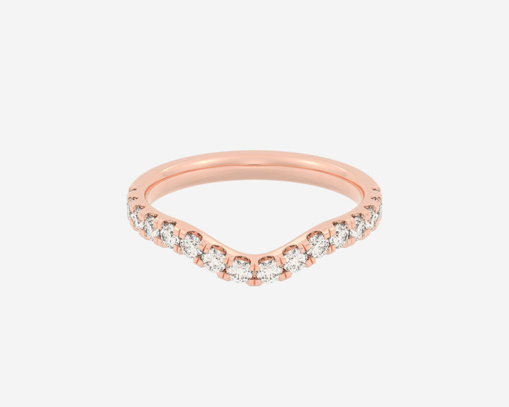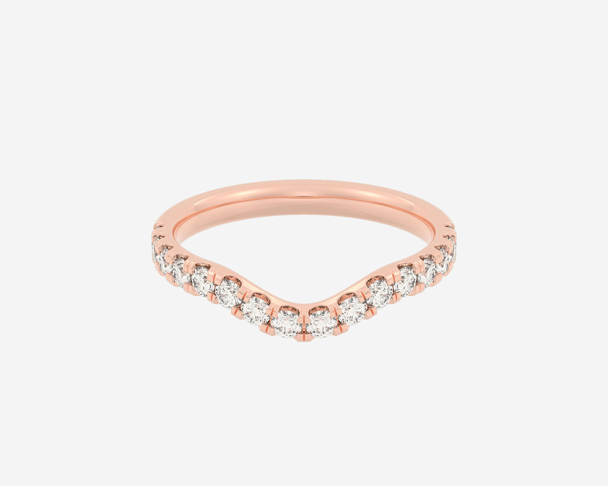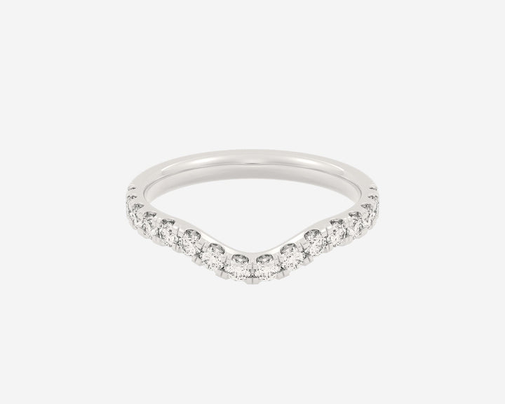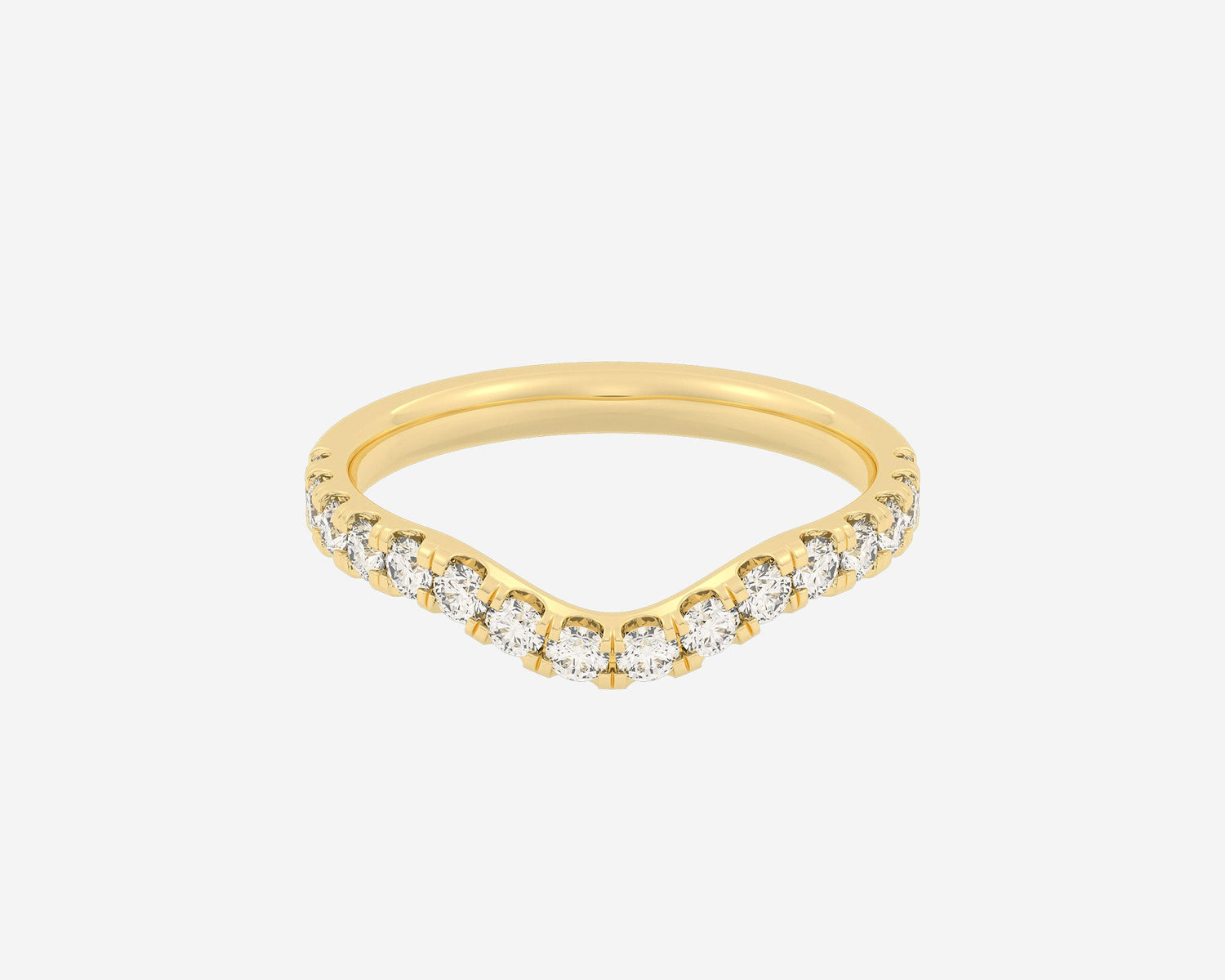 These Curved Half Eternity by Holden offer a graceful curve set halfway around the band with ethical, lab-grown diamonds, designed to complement solitaire rings ranging from 1 to 2 carats. The seamless curve symbolizes infinity and unity, crafted to enhance the natural beauty of any engagement ring while providing understated sparkle. Perfect for stacking or as a stunning standalone band.