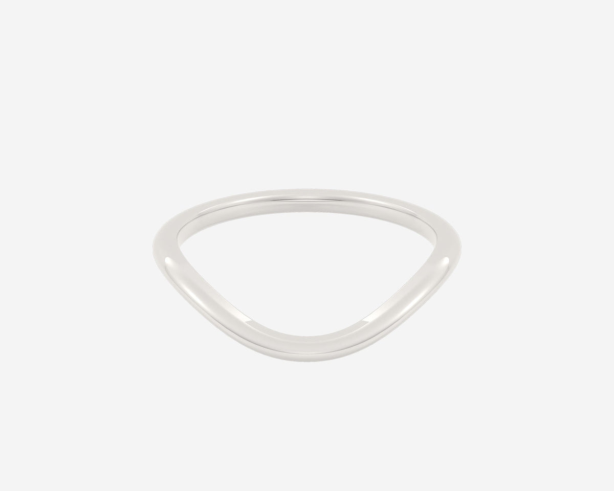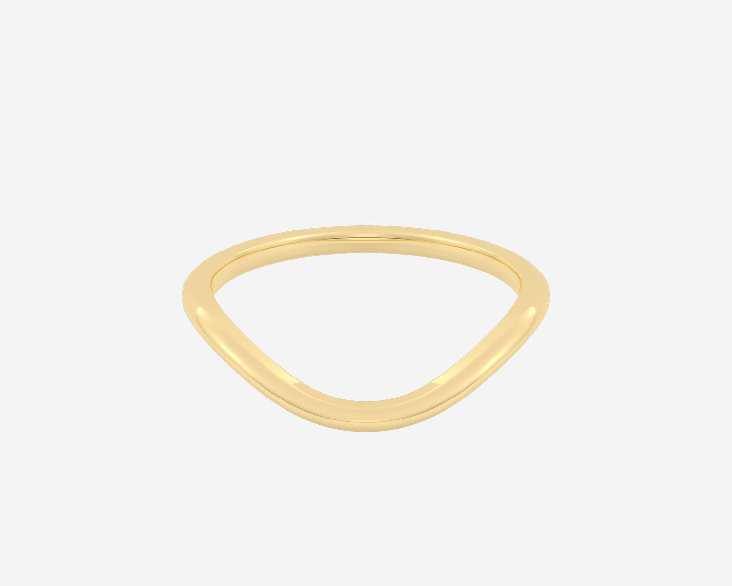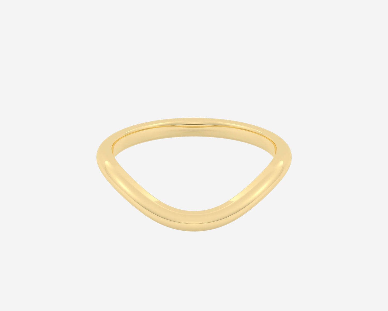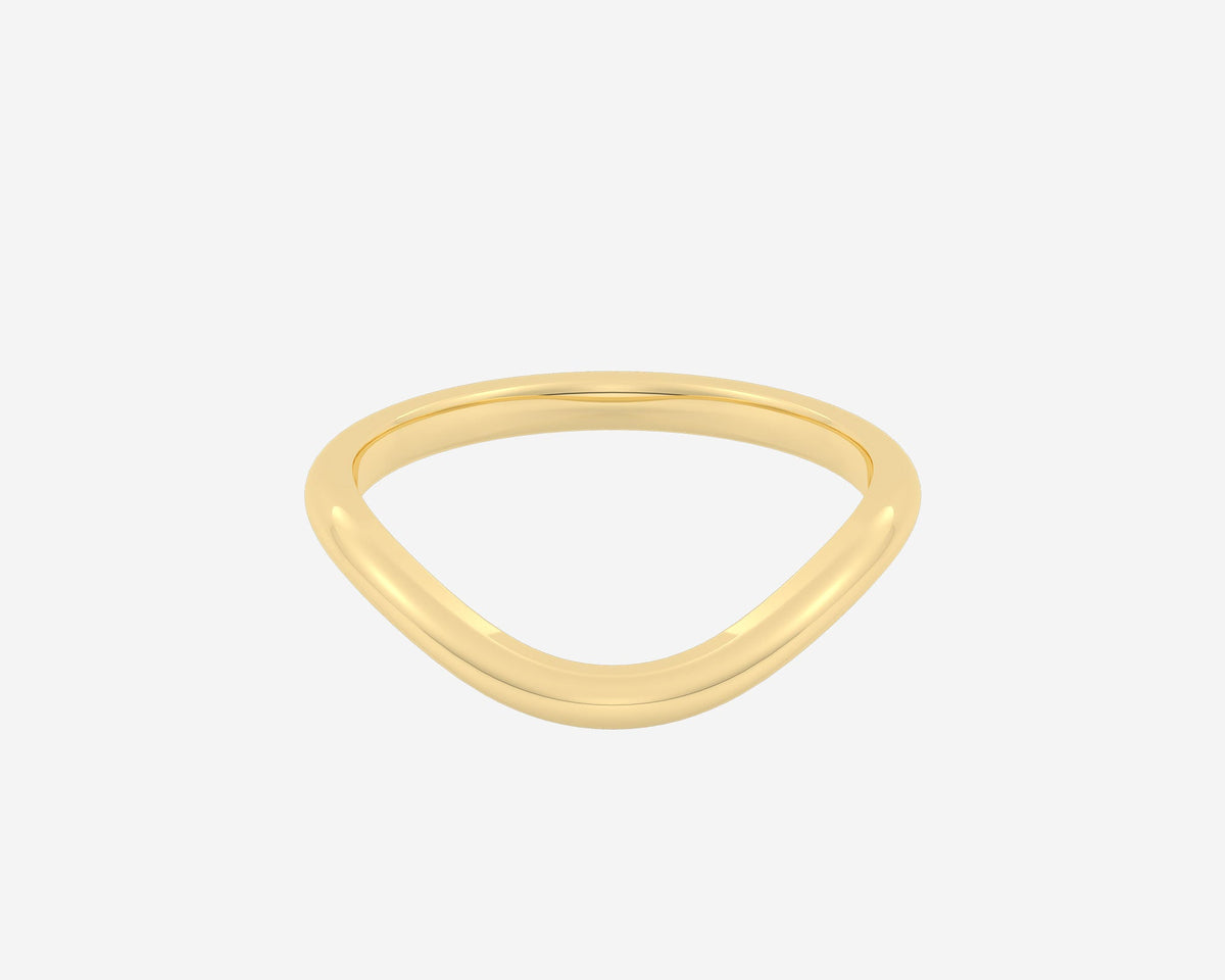 This Custom Curved wedding band by Holden offers a fluid, minimal design with a perfectly contoured shape to complement your engagement ring or stand alone strikingly. Available in 1.5mm or 2.0mm widths, and customizable in 14k or 18k gold or platinum, this band is handcrafted in NYC for a tailored fit and refined elegance.