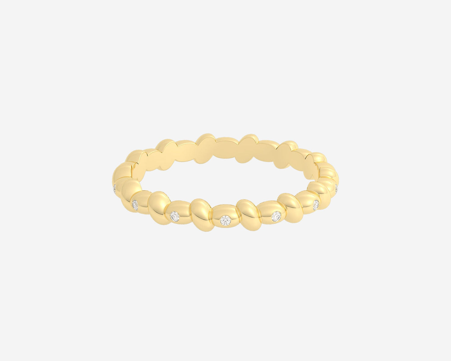Handcrafted in 10k yellow gold, 2.75mm band width with subtle lab-grown diamonds and bubble design.