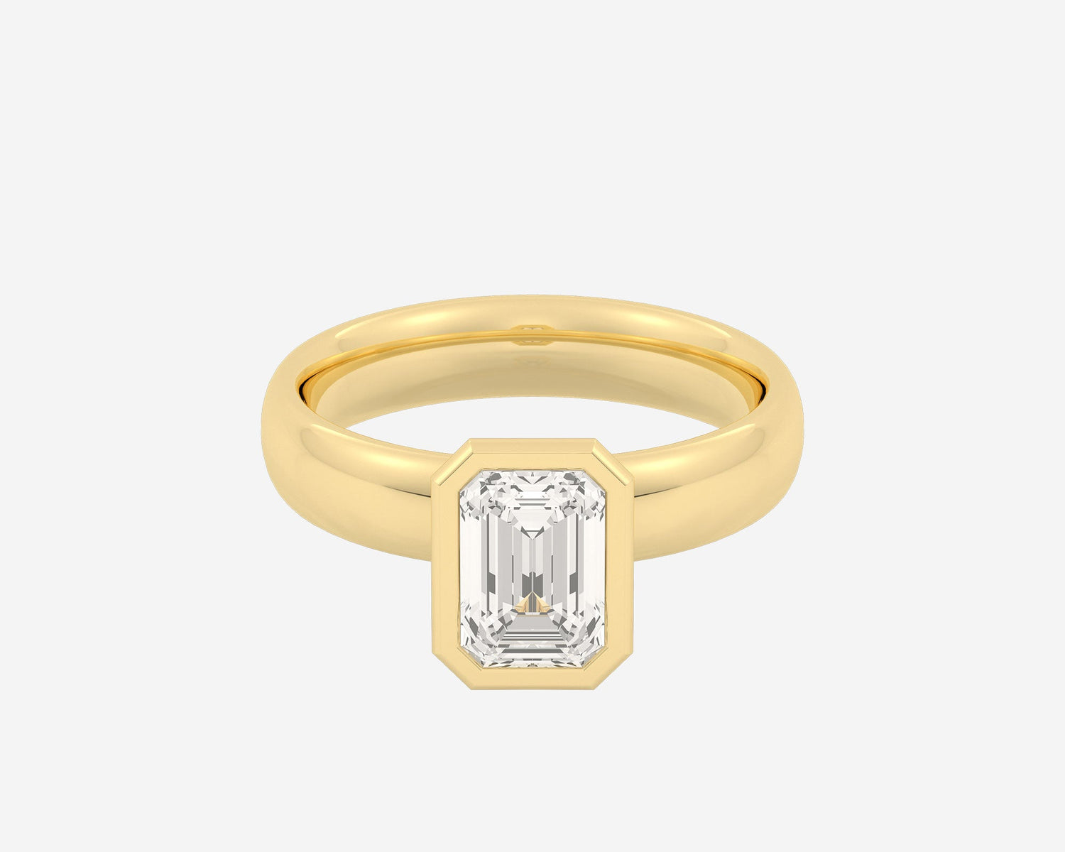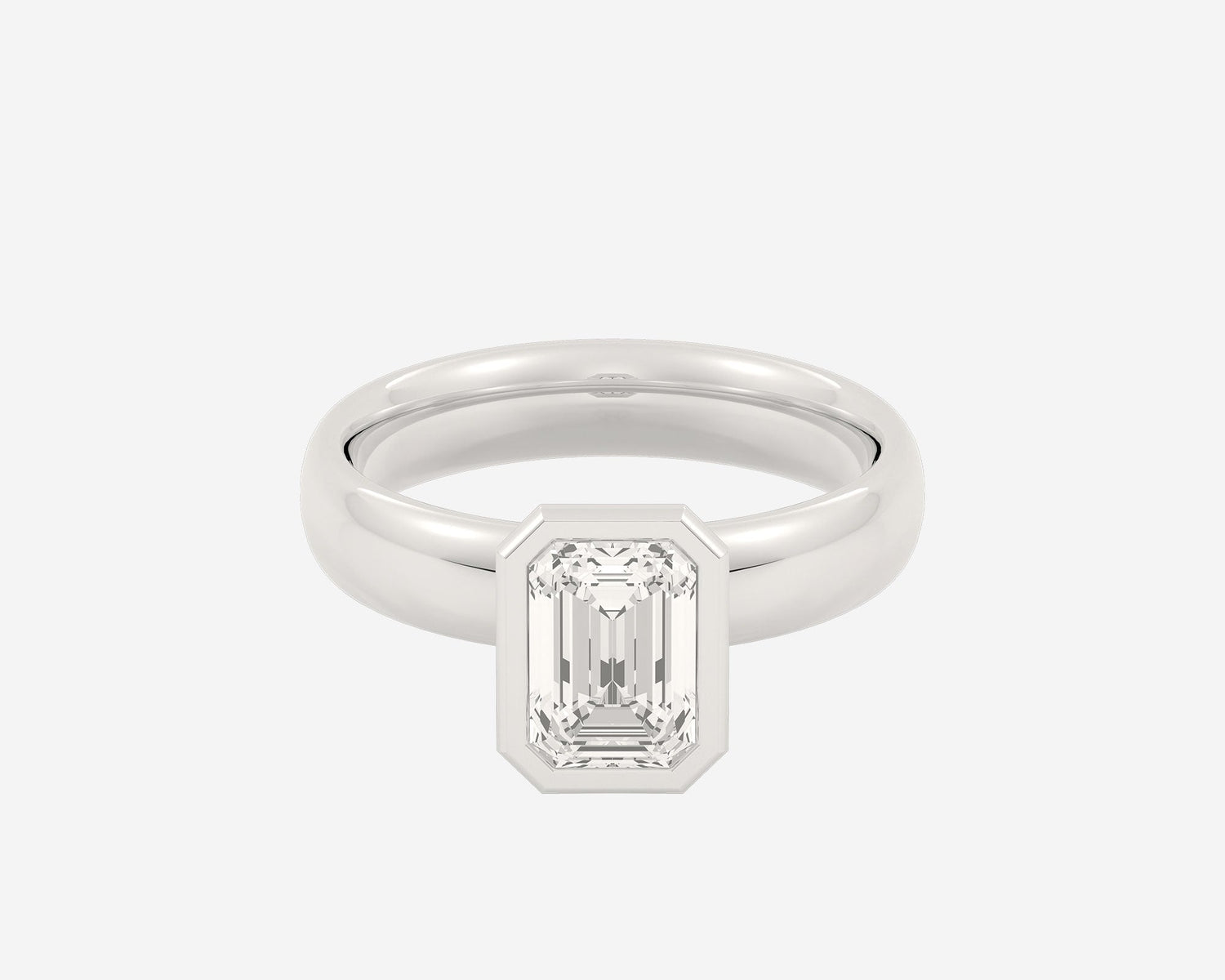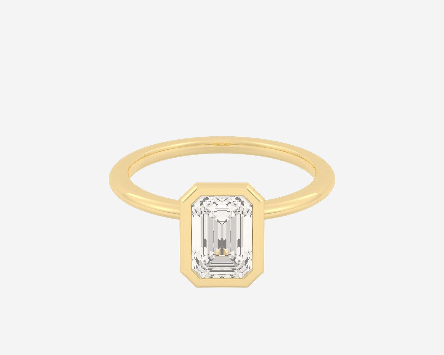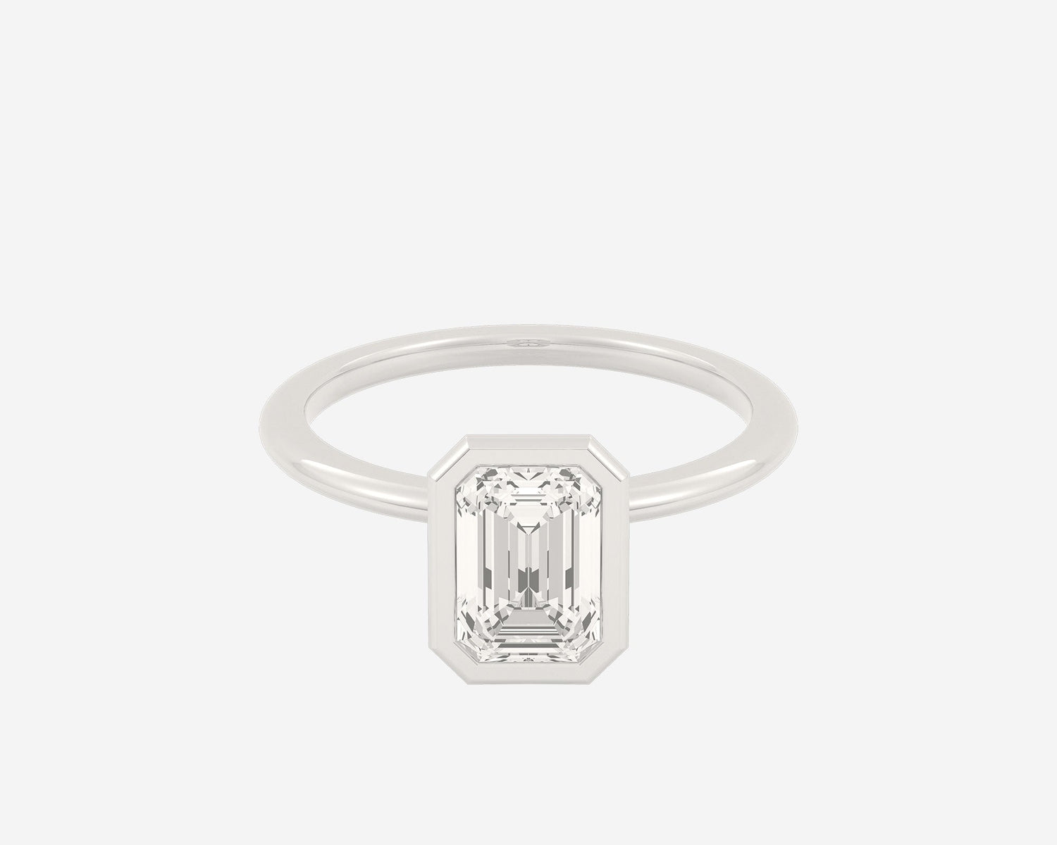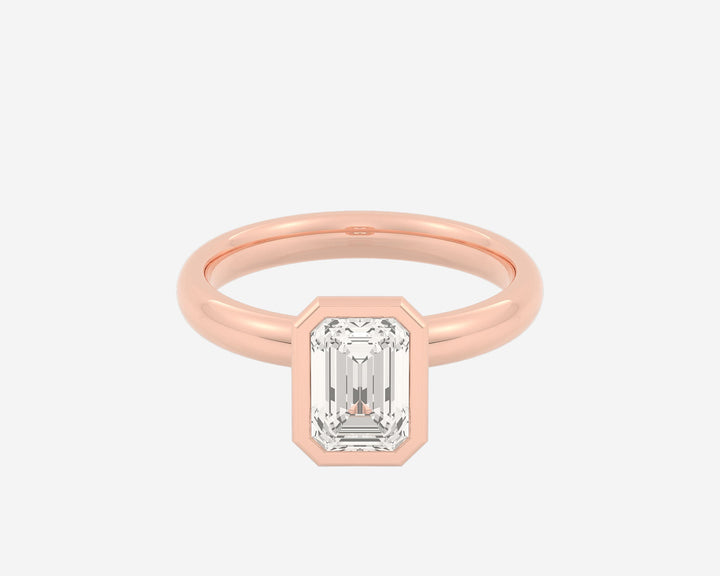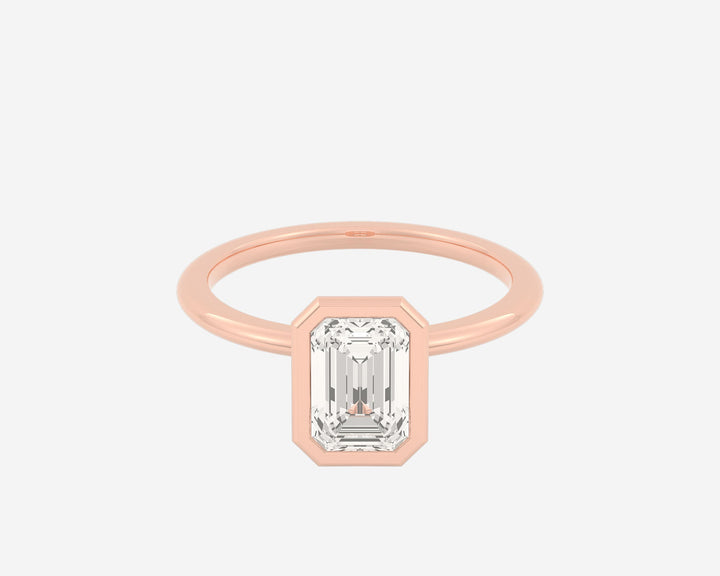 This Domed Bezel Solitaire Emerald by Holden highlights the emerald-cut diamond framed by a domed bezel setting that provides secure protection and elevates the stone’s architectural beauty. The 1.5mm band balances strength and refinement, embodying classic elegance with a modern twist. Crafted sustainably in NYC.