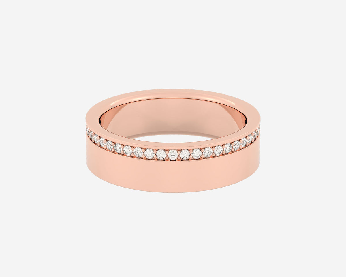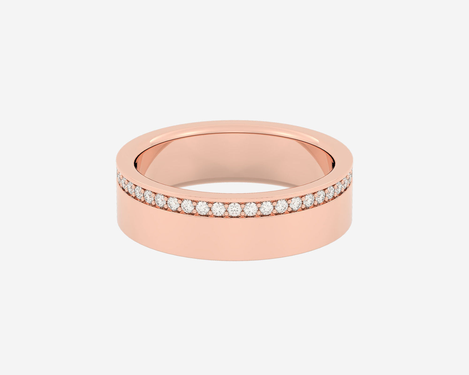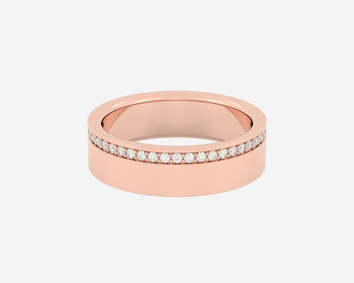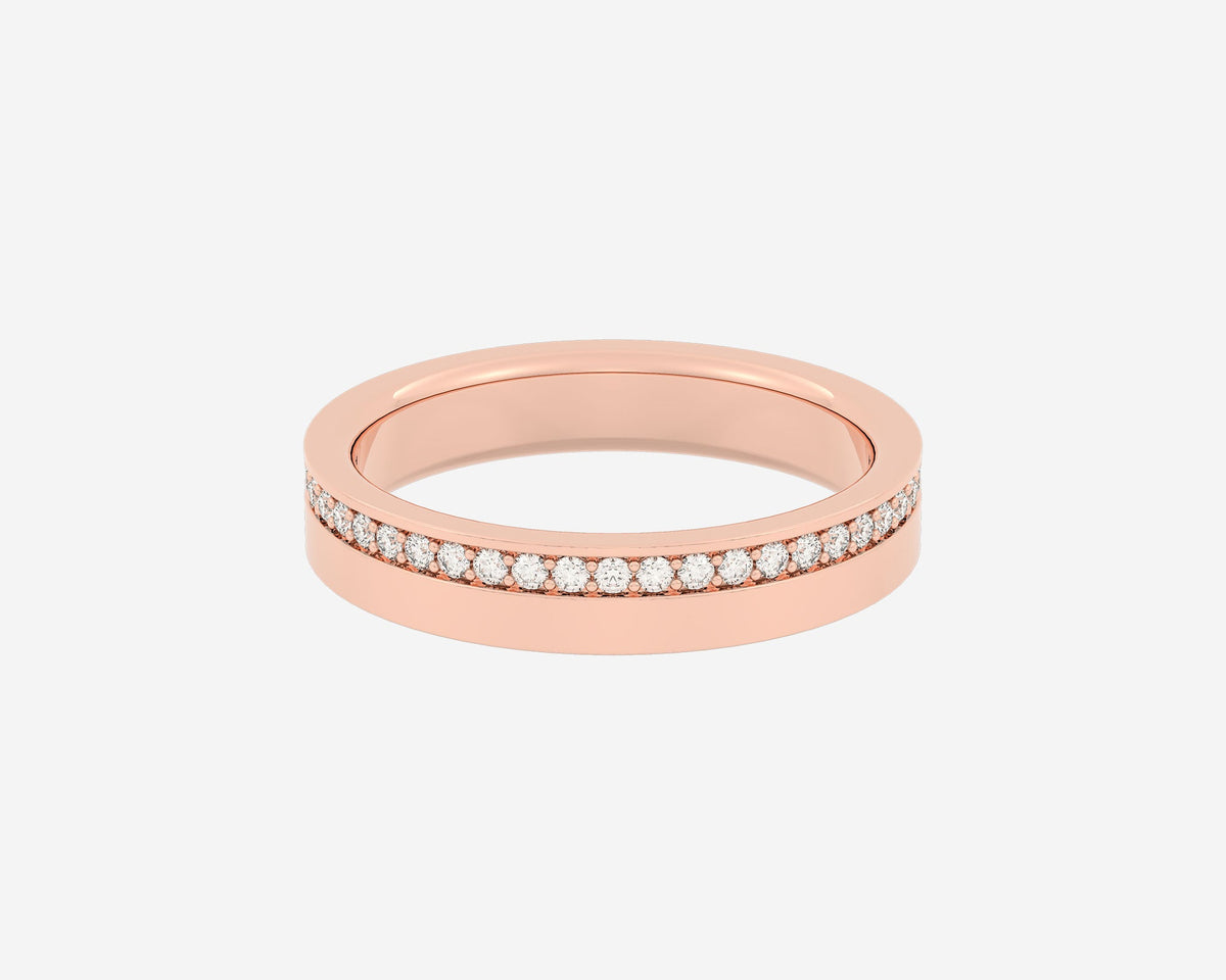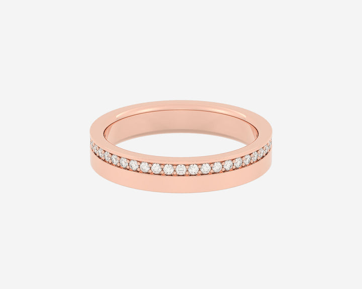 This Edge Eternity ring by Holden is a bold yet refined statement piece featuring a continuous row of brilliant round-cut lab-grown diamonds encircling a recycled gold or platinum band. Finished in either matte or mirror polish, it symbolizes eternal love and strength. Custom-made with expert craftsmanship for a personalized luxury experience.