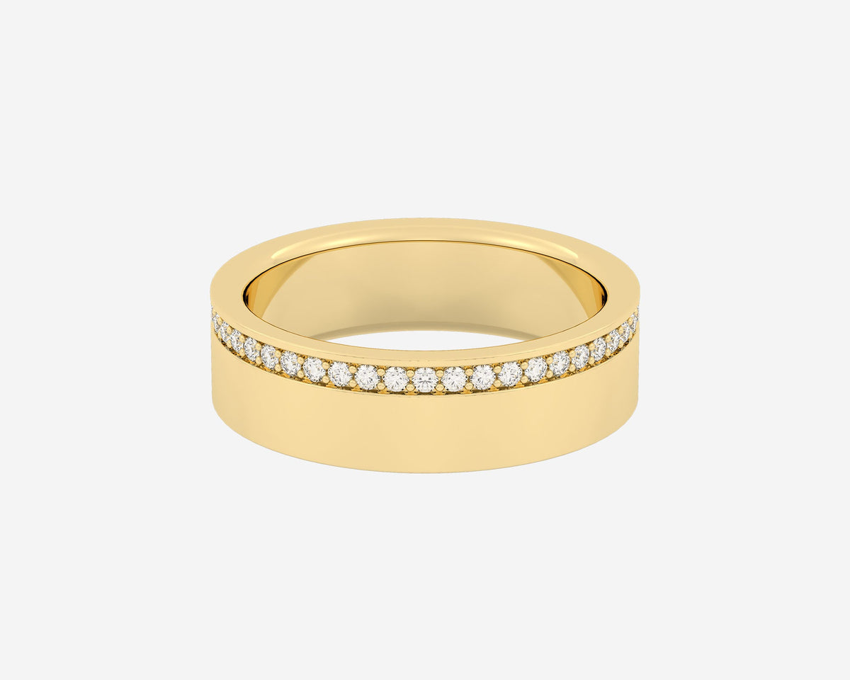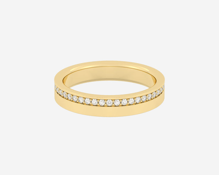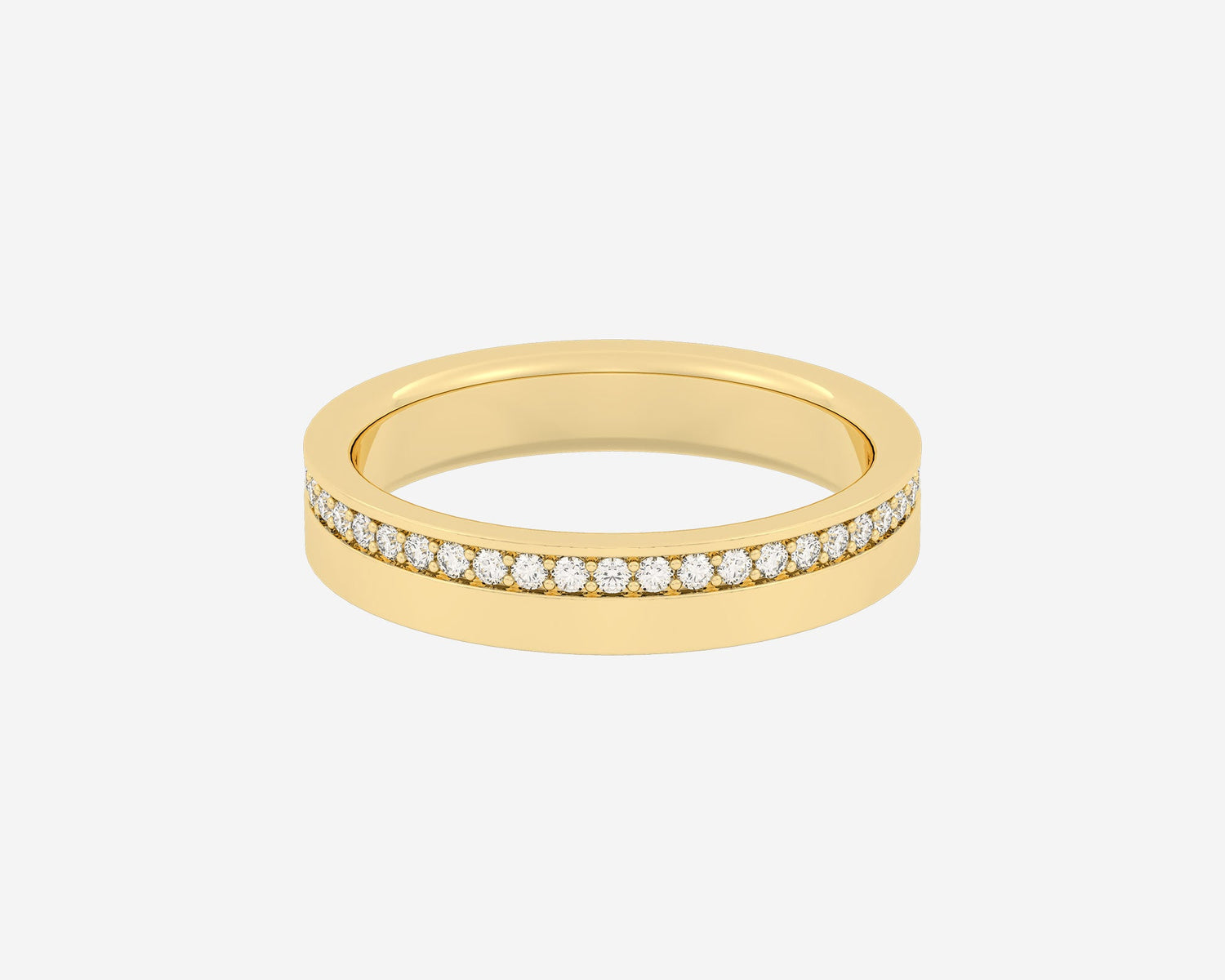 Handcrafted in 14k yellow gold, 4mm band width with lab-grown round diamonds all around.