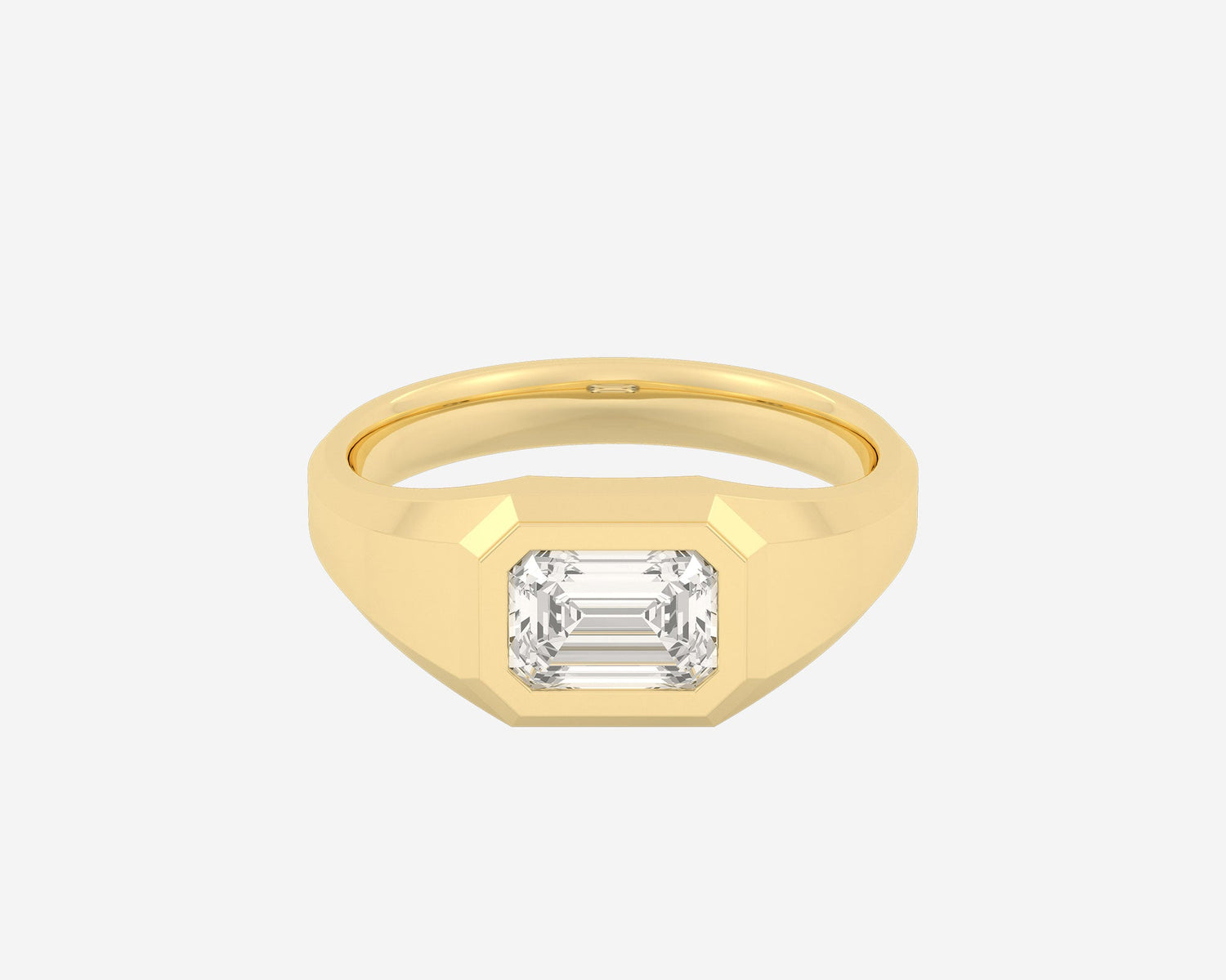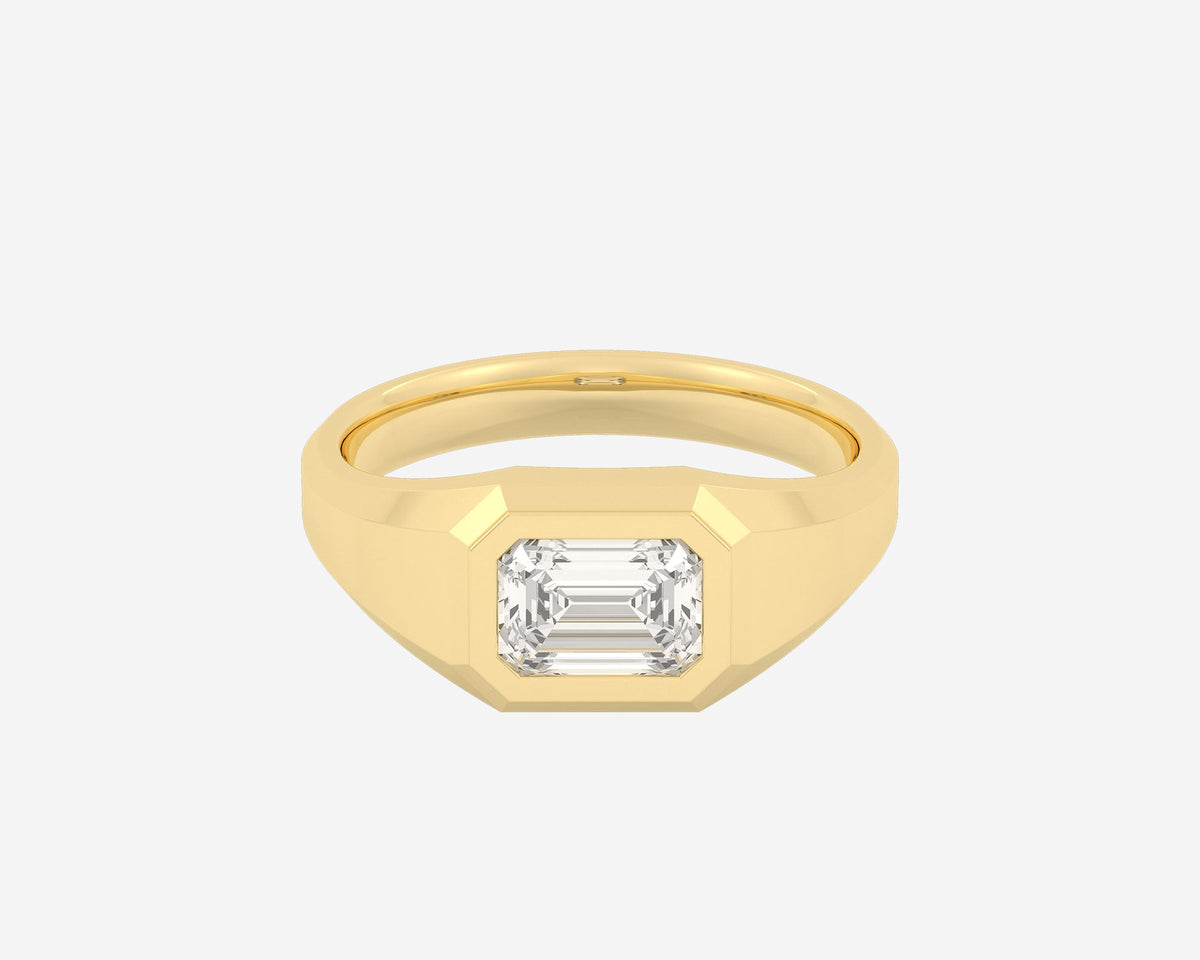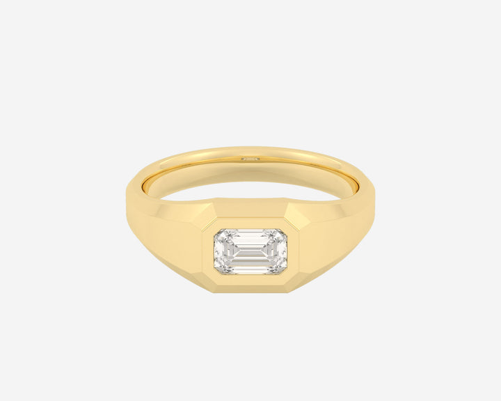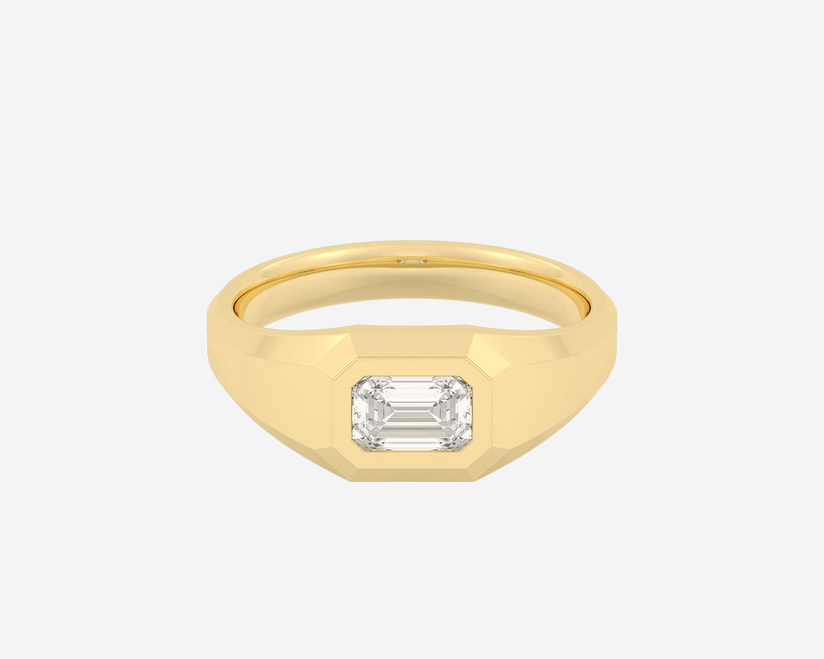 This Emerald Diamond Signet ring by Holden combines the timeless allure of emerald-cut diamonds with sustainable design principles. Made in NYC with recycled metals and 0.5 carat ethical lab-grown diamonds, it is an exquisite expression of sophistication and responsibility.
