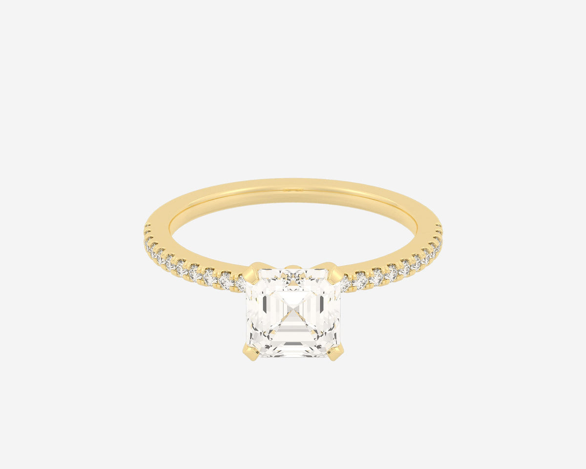 This Eternity Solitaire Asscher by Holden exudes vintage-inspired sophistication with its geometric Asscher-cut diamond, evoking clarity, strength, and timelessness. The clean lines and sharp facets create an eye-catching play of light, set upon a slender 1.5mm band that complements the stone's architectural beauty. Crafted sustainably in NYC, this ring is perfect for those who cherish classic luxury with a modern conscience.