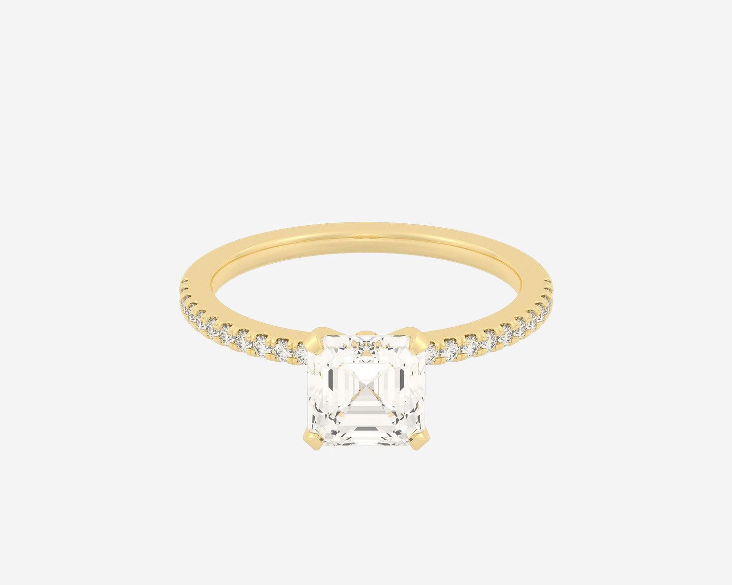 Handcrafted in 14k yellow gold with an Asscher-cut lab-grown diamond. Band width measures 1.5mm. Made from recycled metals and ethical lab-grown diamonds, crafted in NYC.