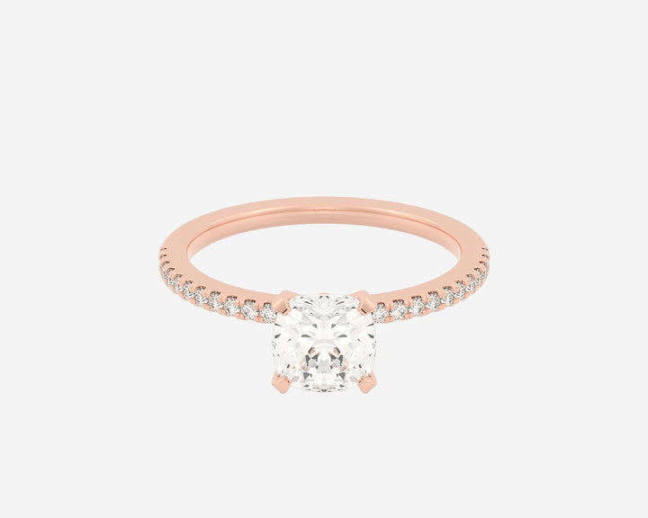 Handcrafted in 14k yellow gold with a cushion-cut lab-grown diamond. Band width measures 1.5mm. Made from recycled metals and ethical lab-grown diamonds, crafted in NYC.
