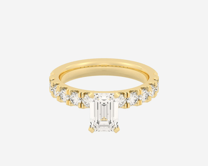 This Eternity Solitaire Emerald by Holden features a striking emerald-cut diamond, admired for its dramatic step cuts and elegant silhouette. The 1.5mm slender band frames the stone with subtlety and grace, embodying sophistication and clarity. This piece speaks to lovers of refined, architectural design and ethical craftsmanship, combining sustainable luxury with timeless appeal.