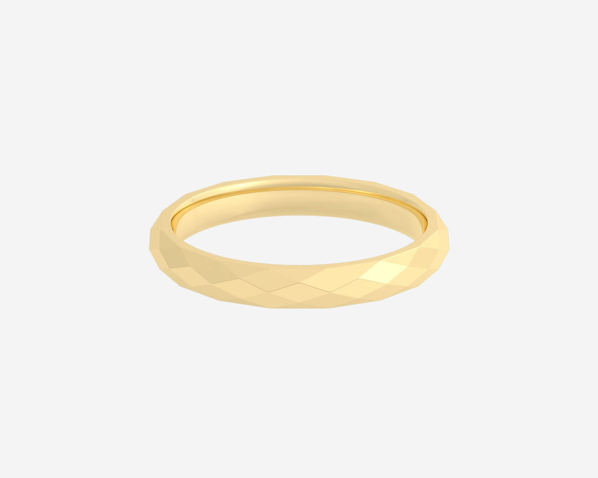 Handcrafted in 10k yellow gold, 3mm width with faceted surface. Made from conflict-free, recycled metals with a unisex, comfort-fit design.
