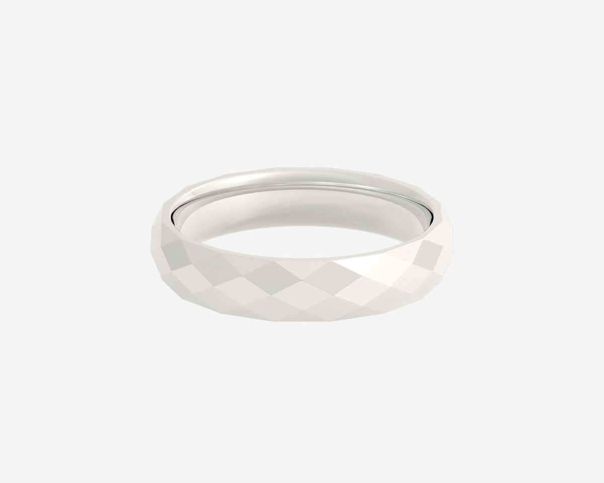 This Faceted ring by Holden showcases a 3mm width with precision-cut facets that reflect light in dynamic ways, lending a modern, geometric aesthetic. The unisex comfort-fit ensures all-day wearability, making it an excellent choice for those who value artistry combined with comfort. The ring symbolizes strength and individuality, meticulously crafted in New York City from sustainable metals.