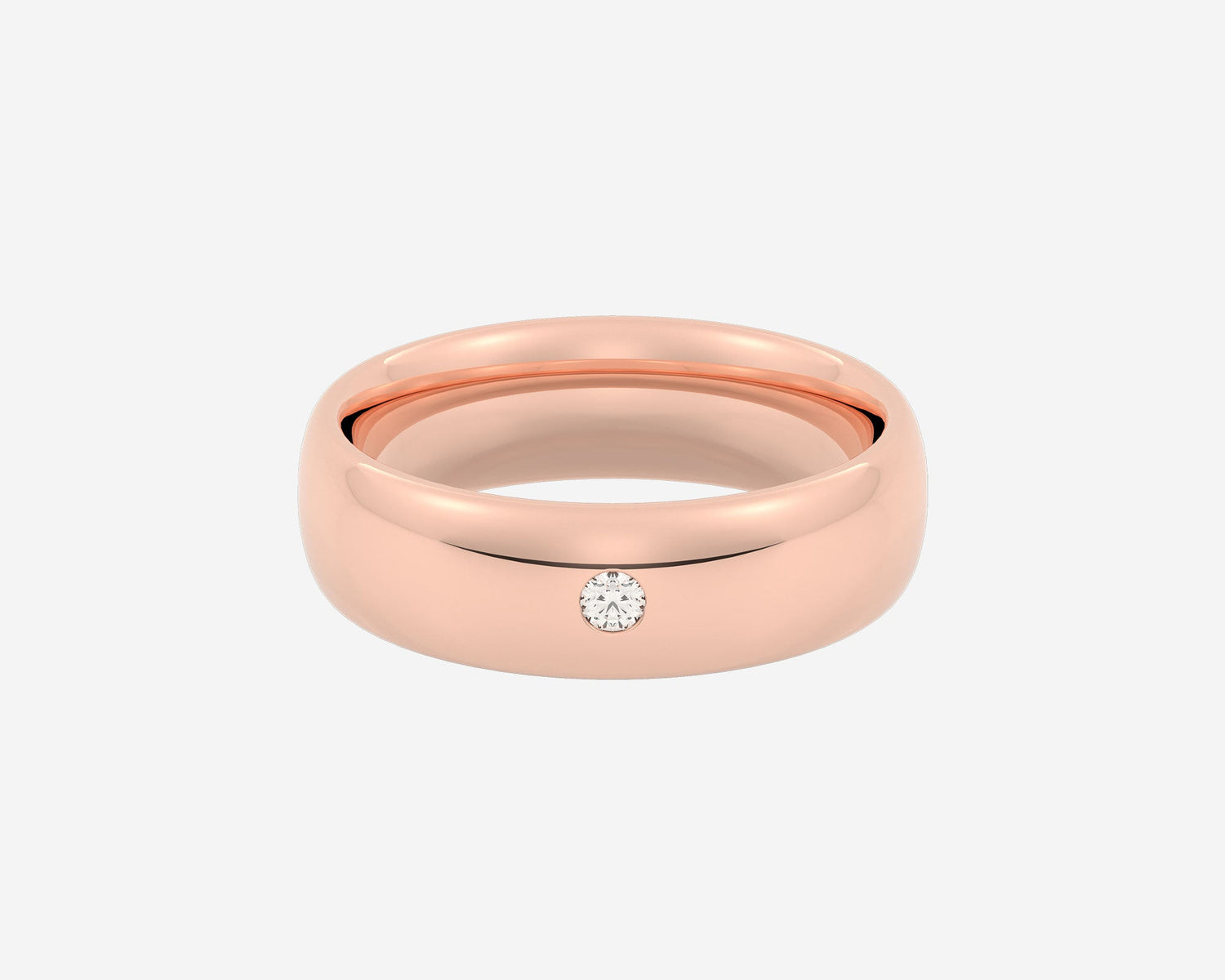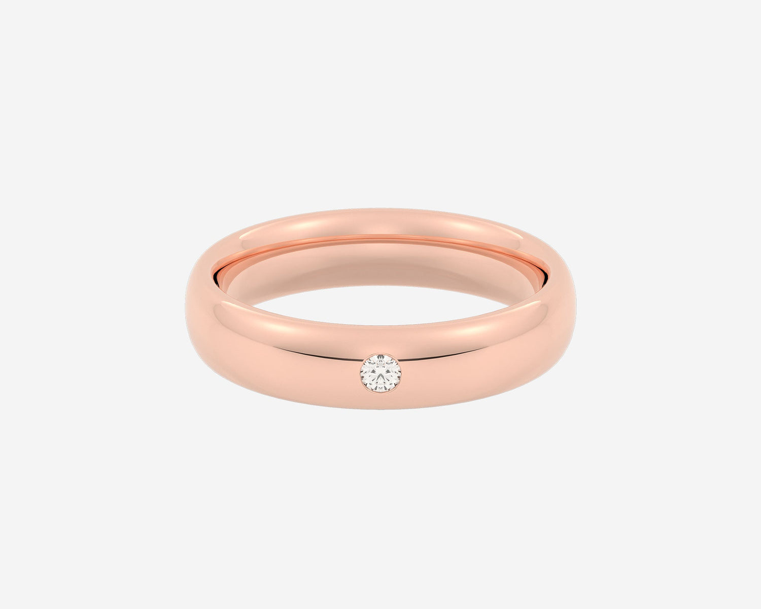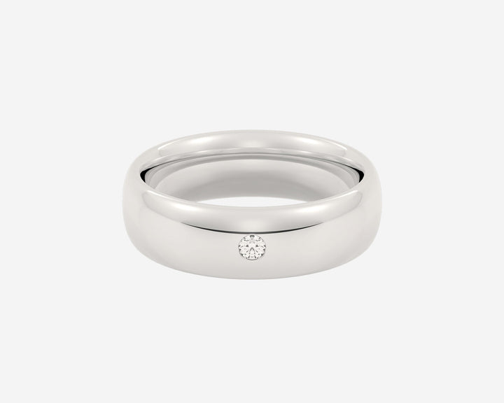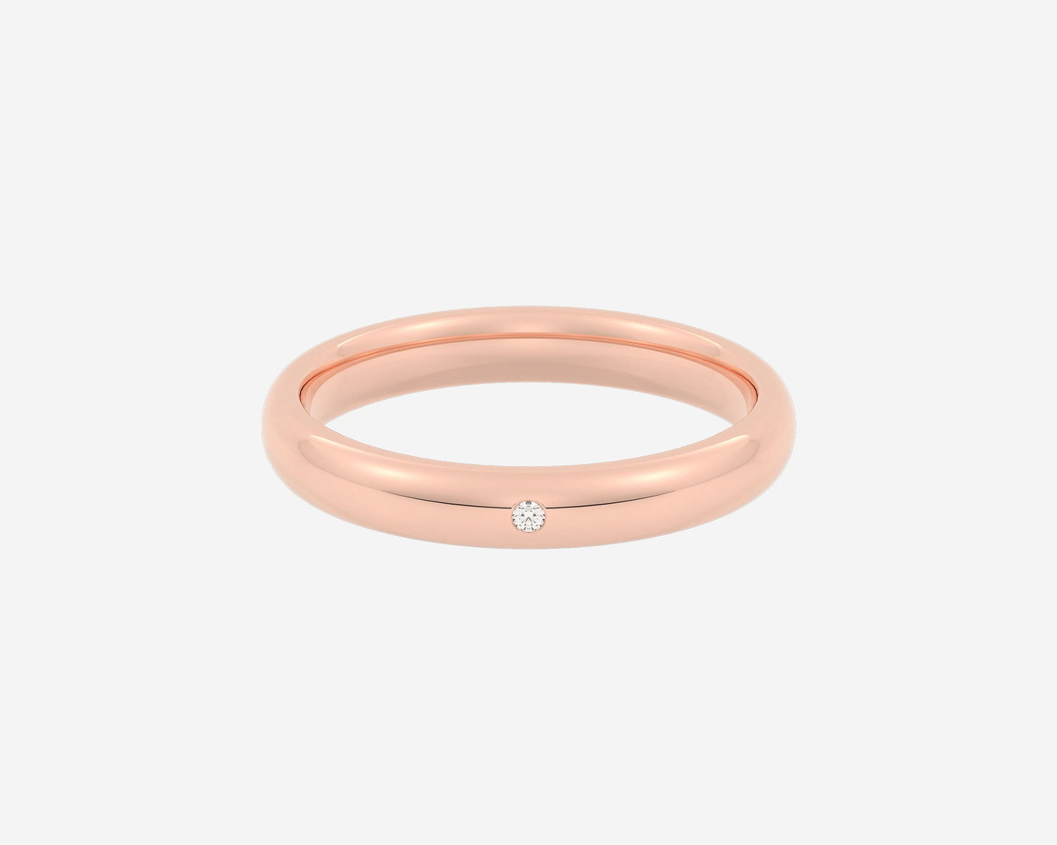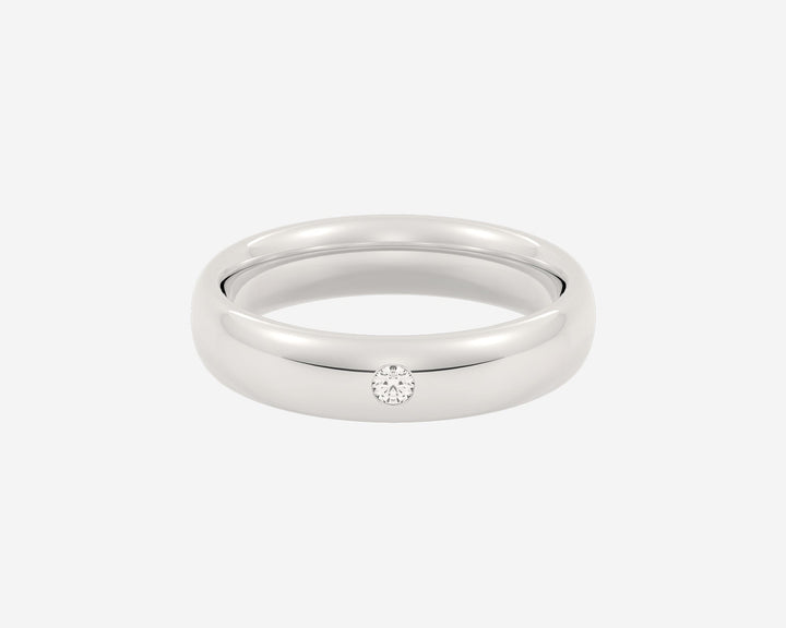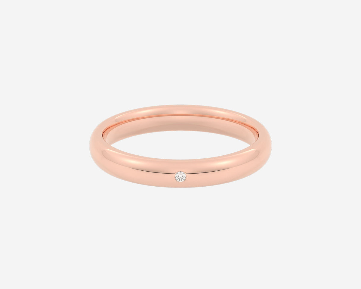 Handcrafted in 10k yellow gold, 3mm width with a single lab-grown diamond (E-G color, VS clarity) set flush. Made with conflict-free recycled metals and a unisex, comfort-fit design.
