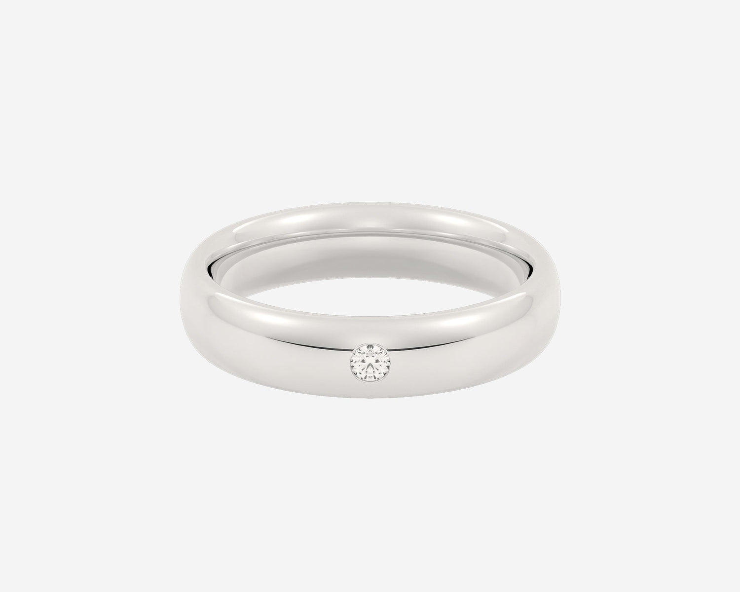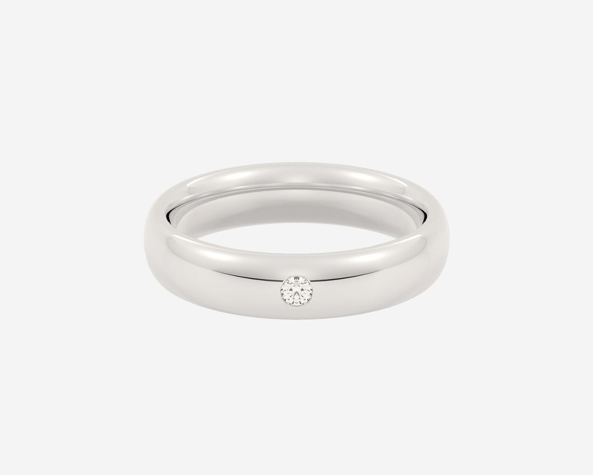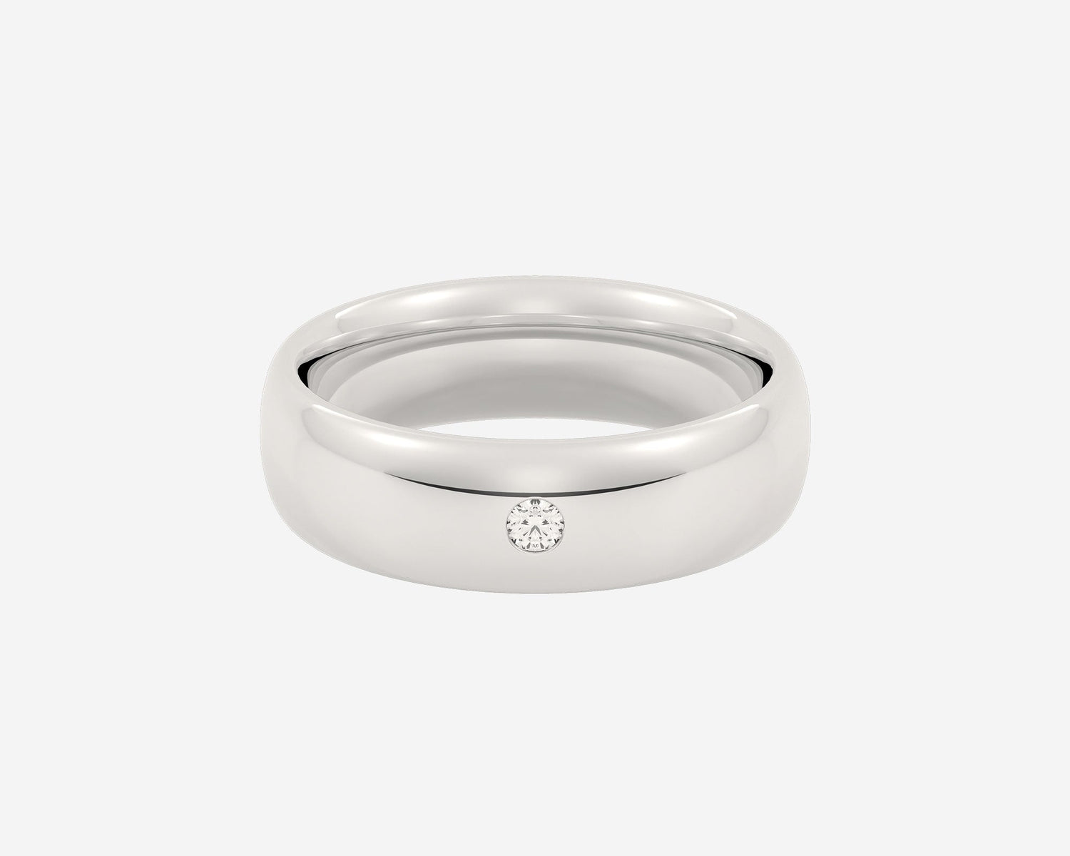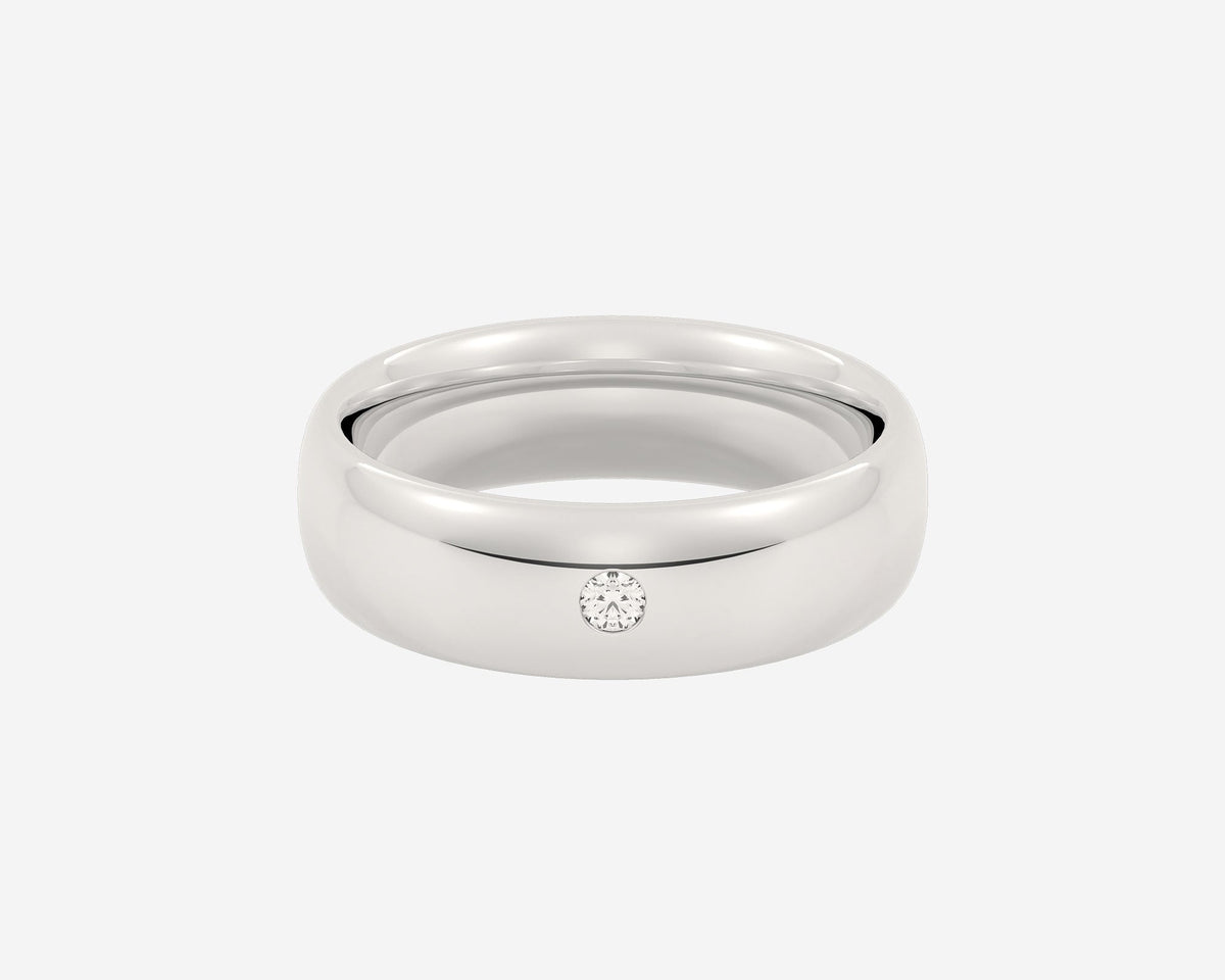 Handcrafted in 10k yellow gold, 3mm width with a single lab-grown diamond (E-G color, VS clarity) set flush. Made with conflict-free recycled metals and a unisex, comfort-fit design.