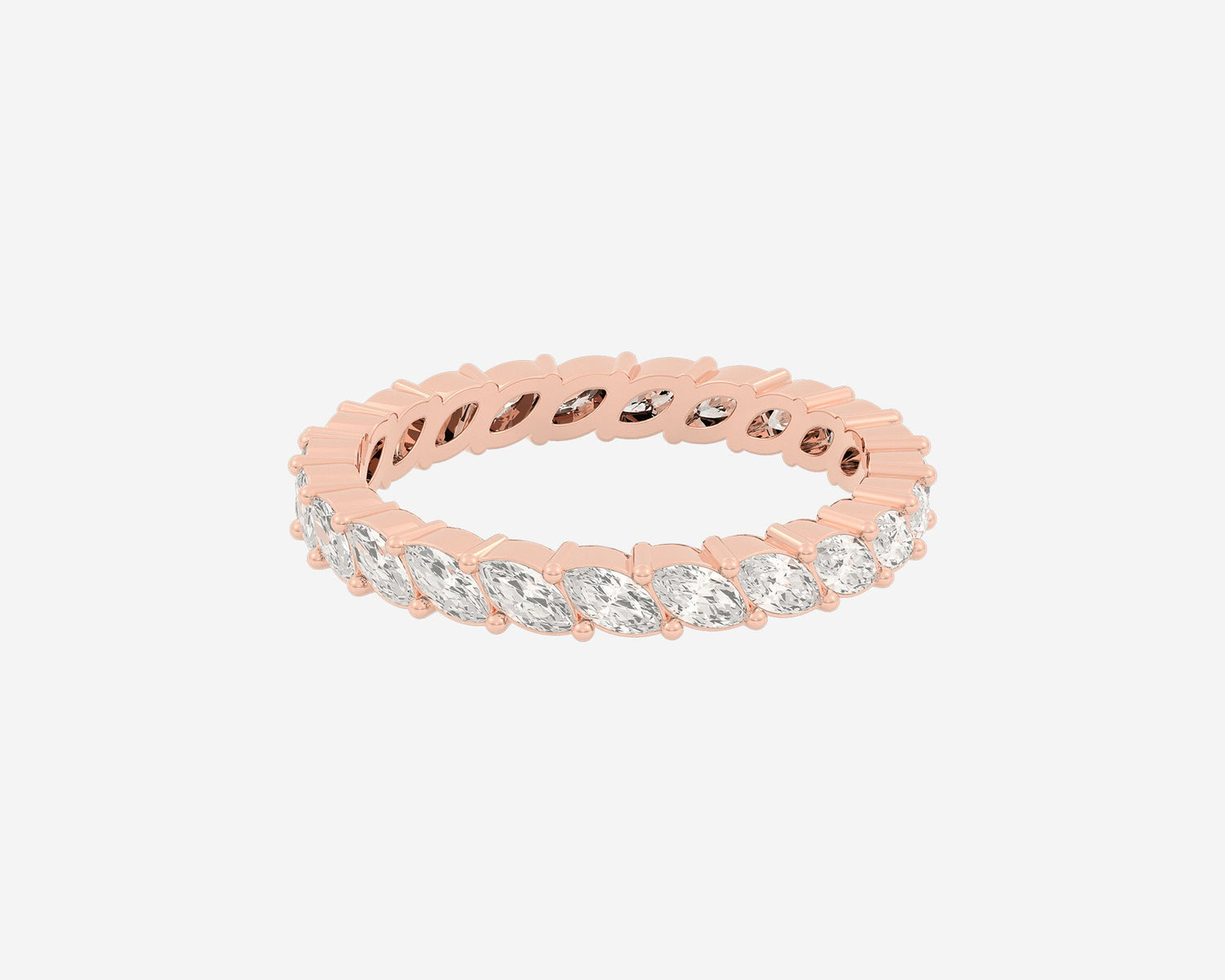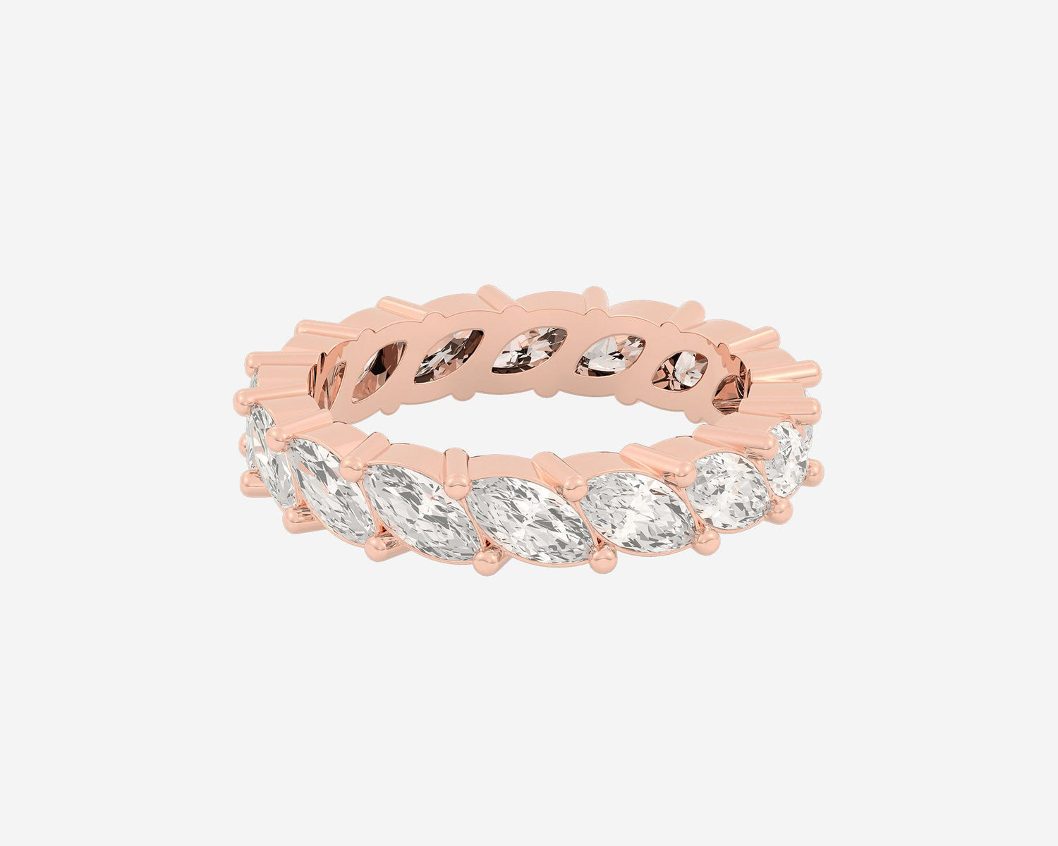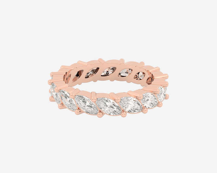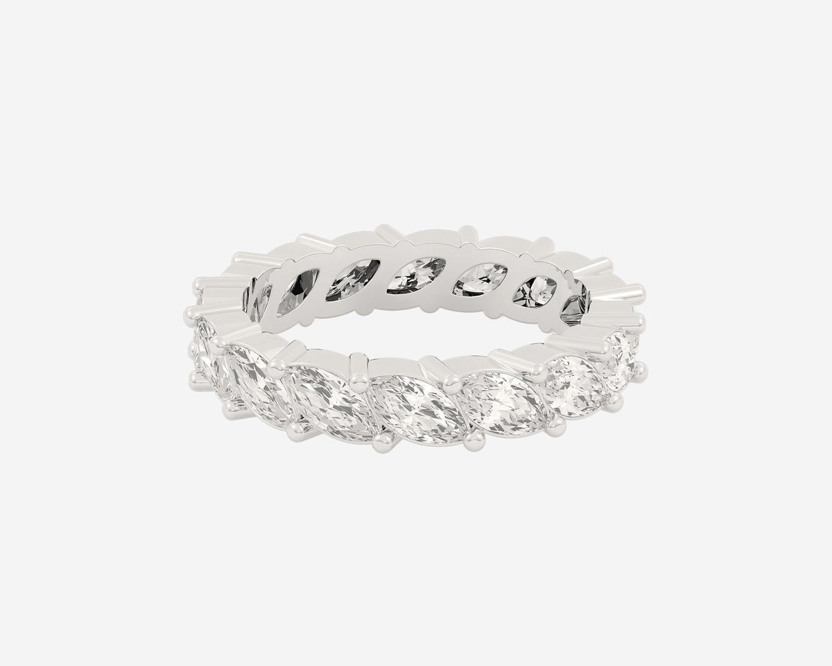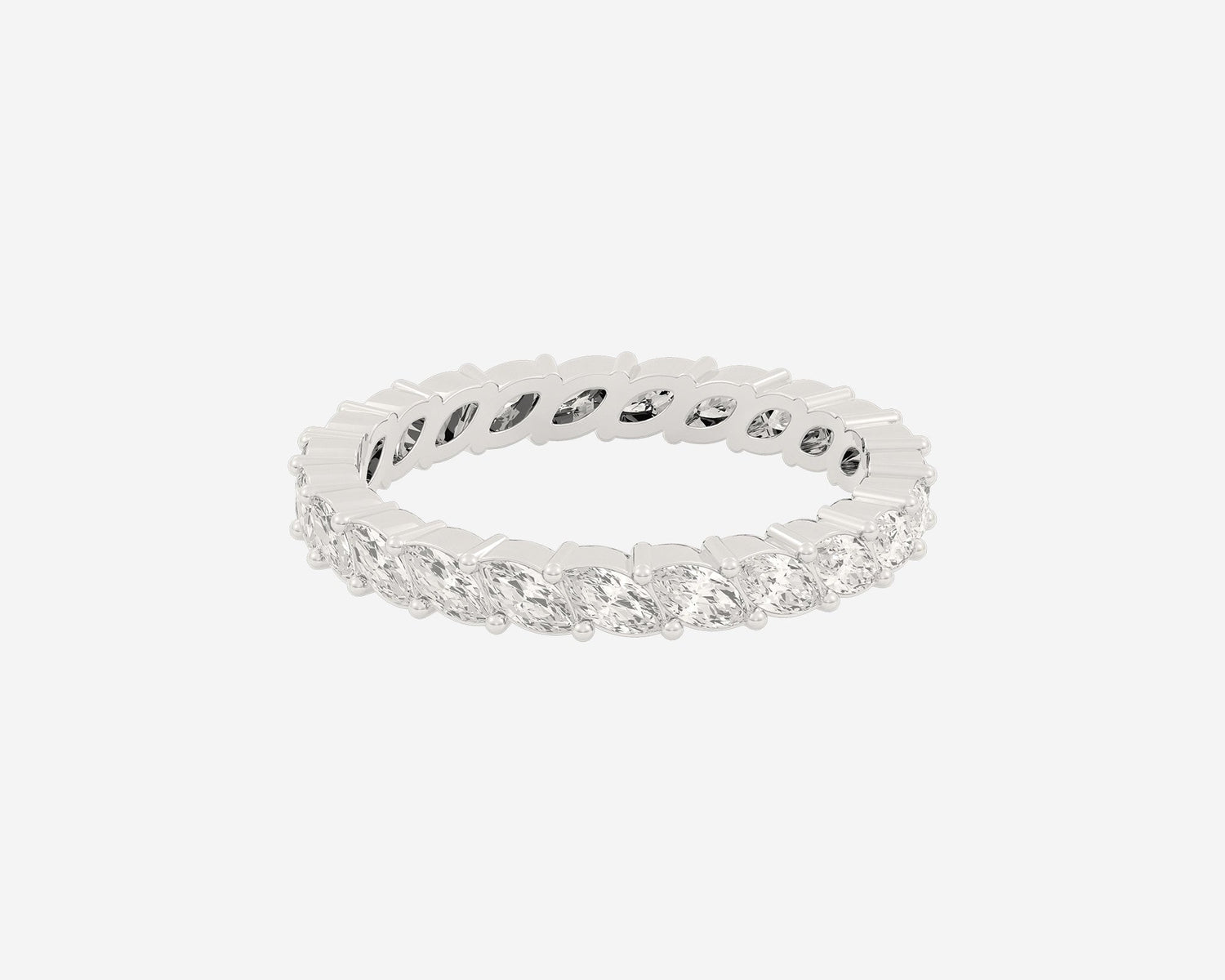 This Full Angled Marquise eternity ring by Holden features marquise lab-grown diamonds set diagonally in a shared-prong setting. Ideal as a wedding band or part of a ring stack, it balances intricate craftsmanship with modern elegance, made to order for a personalized and sustainable fine jewelry experience.