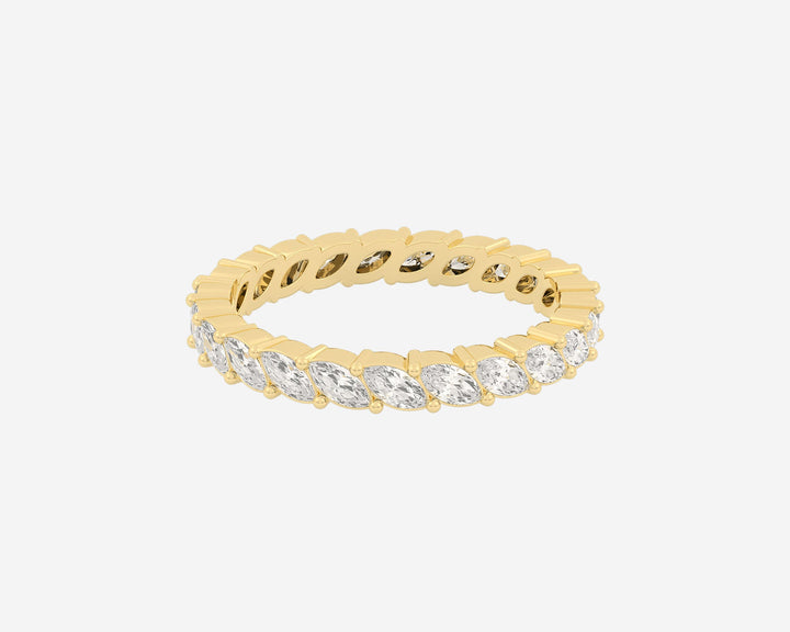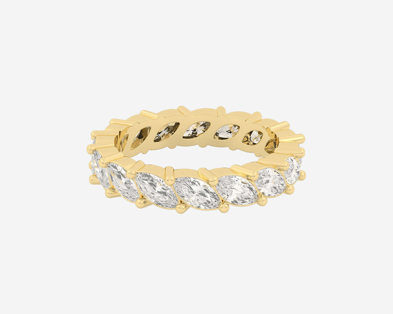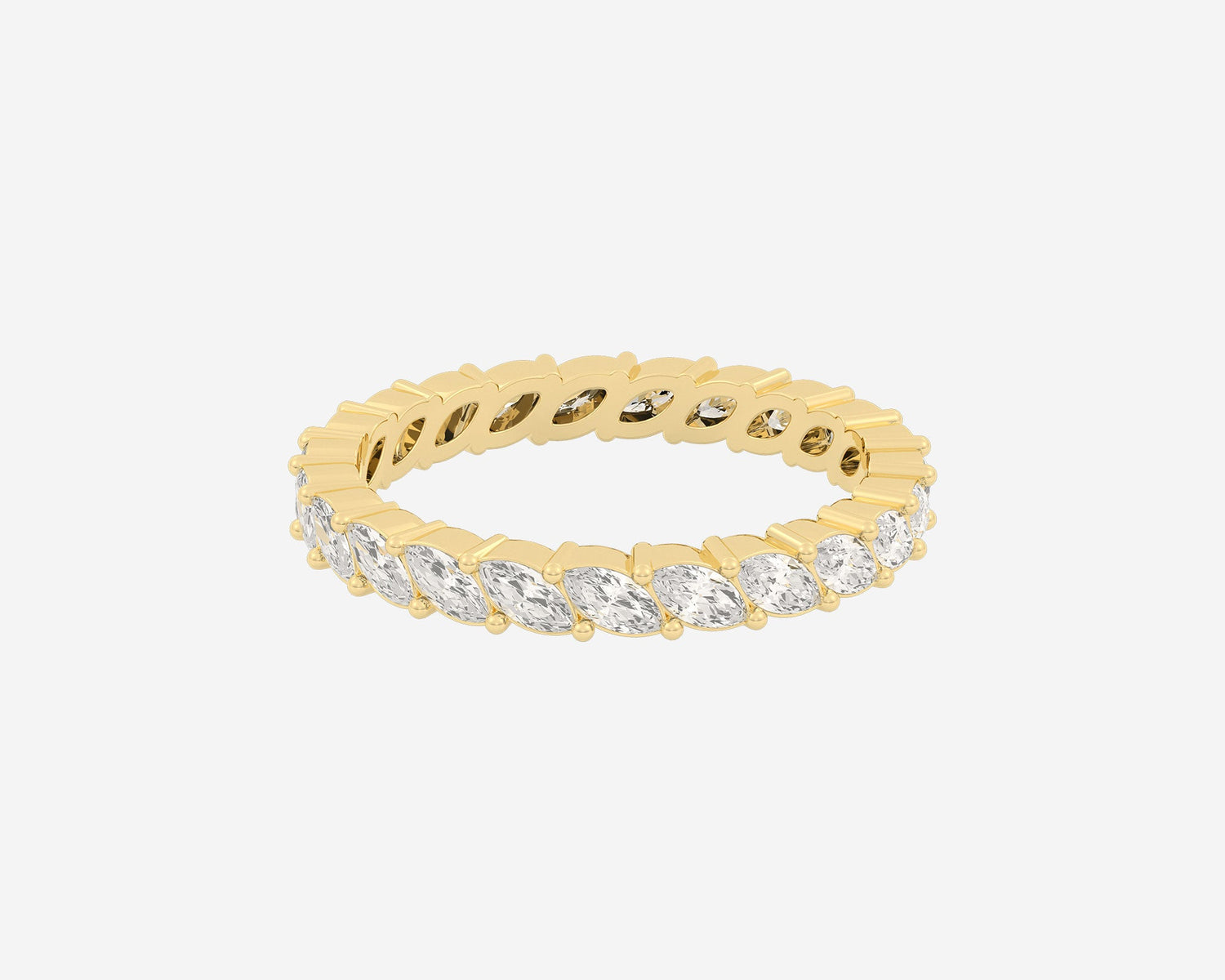 Handcrafted in 14k yellow gold, 3mm band width with diagonally set lab-grown marquise-cut diamonds.
