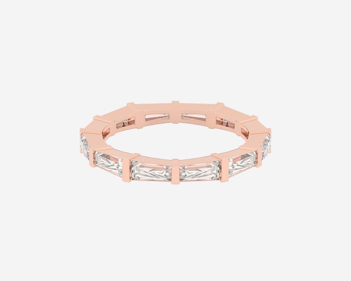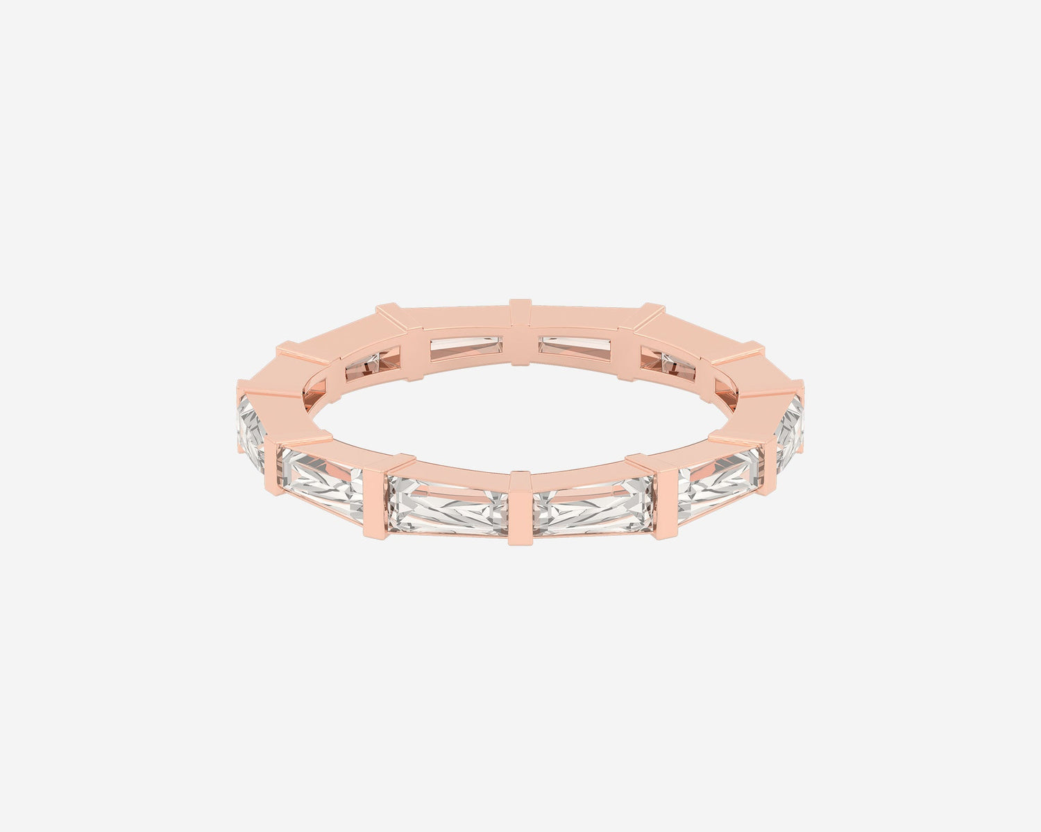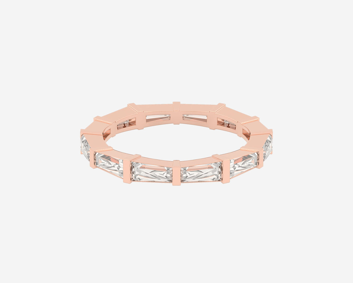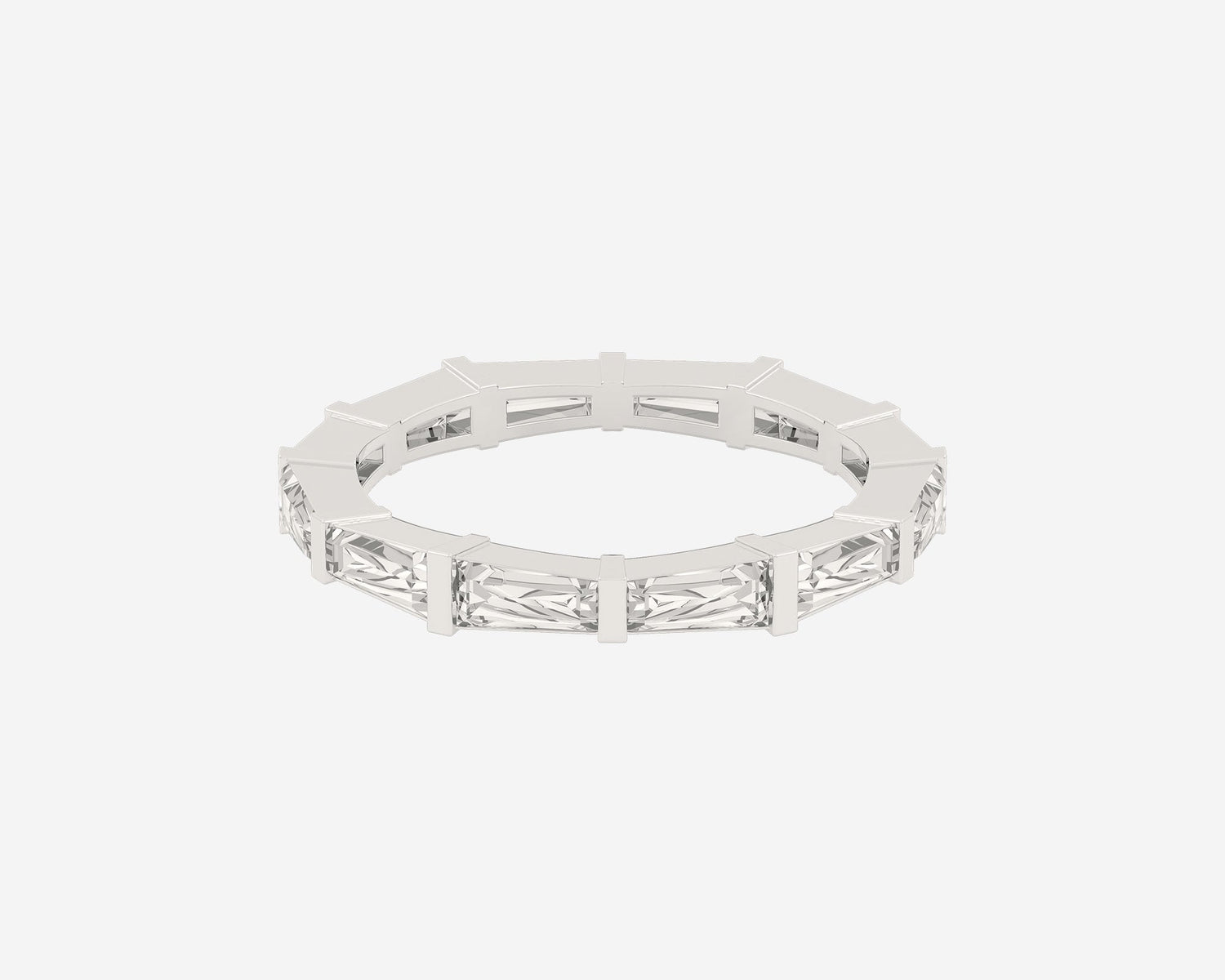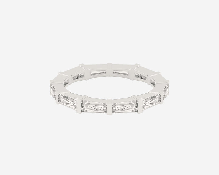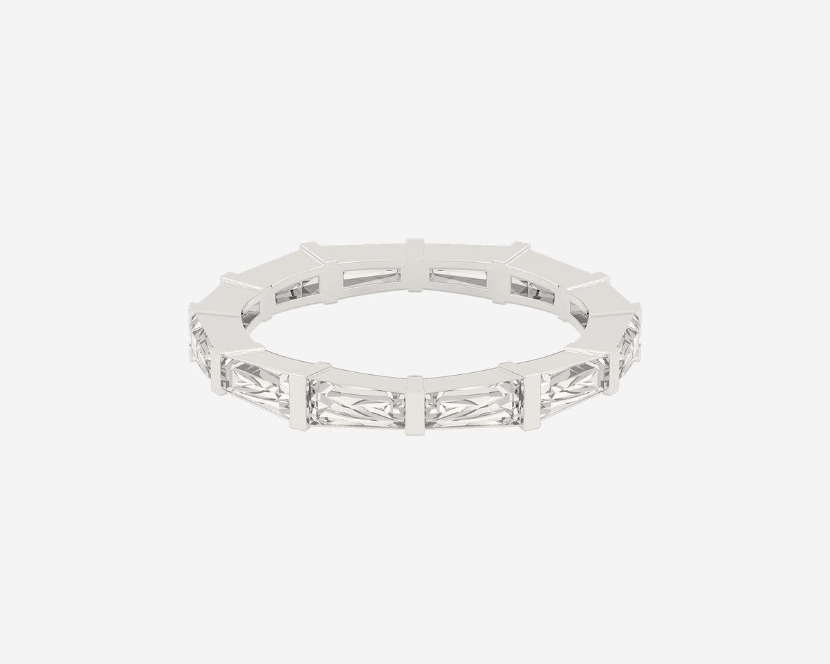 This Full Bar Baguette by Holden is a stunning 3mm full eternity band showcasing tapered baguette lab-grown diamonds set in a sleek bar setting. Ideal as a wedding band or an everyday stackable ring, each piece is meticulously made to order, reflecting timeless elegance with sustainable craftsmanship.