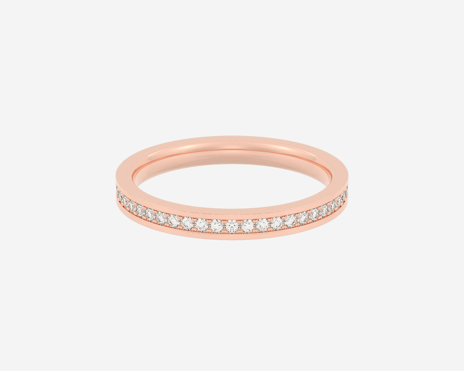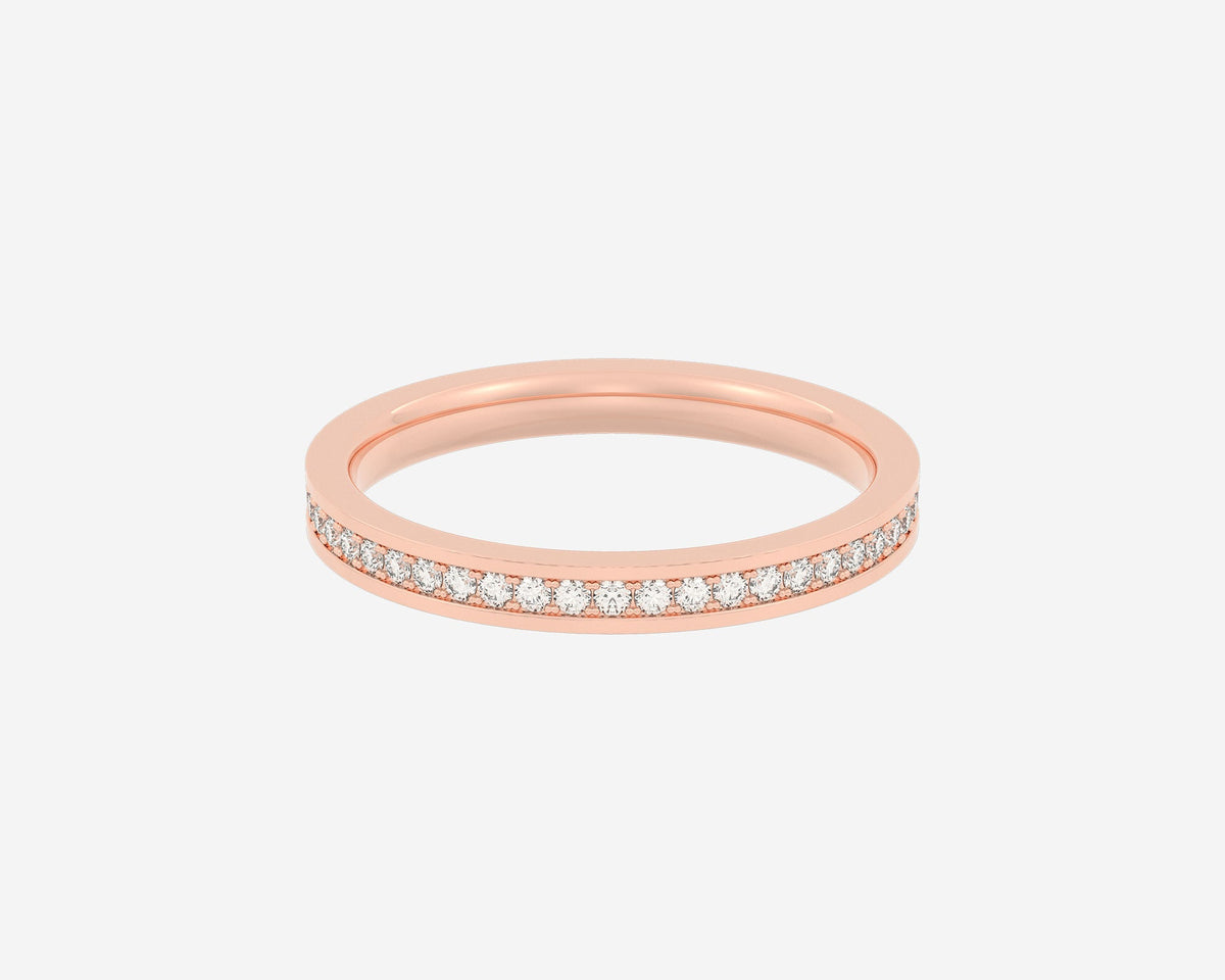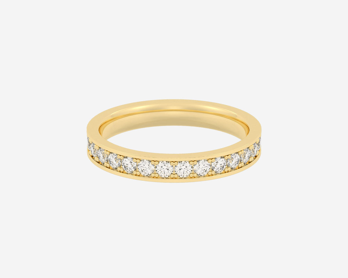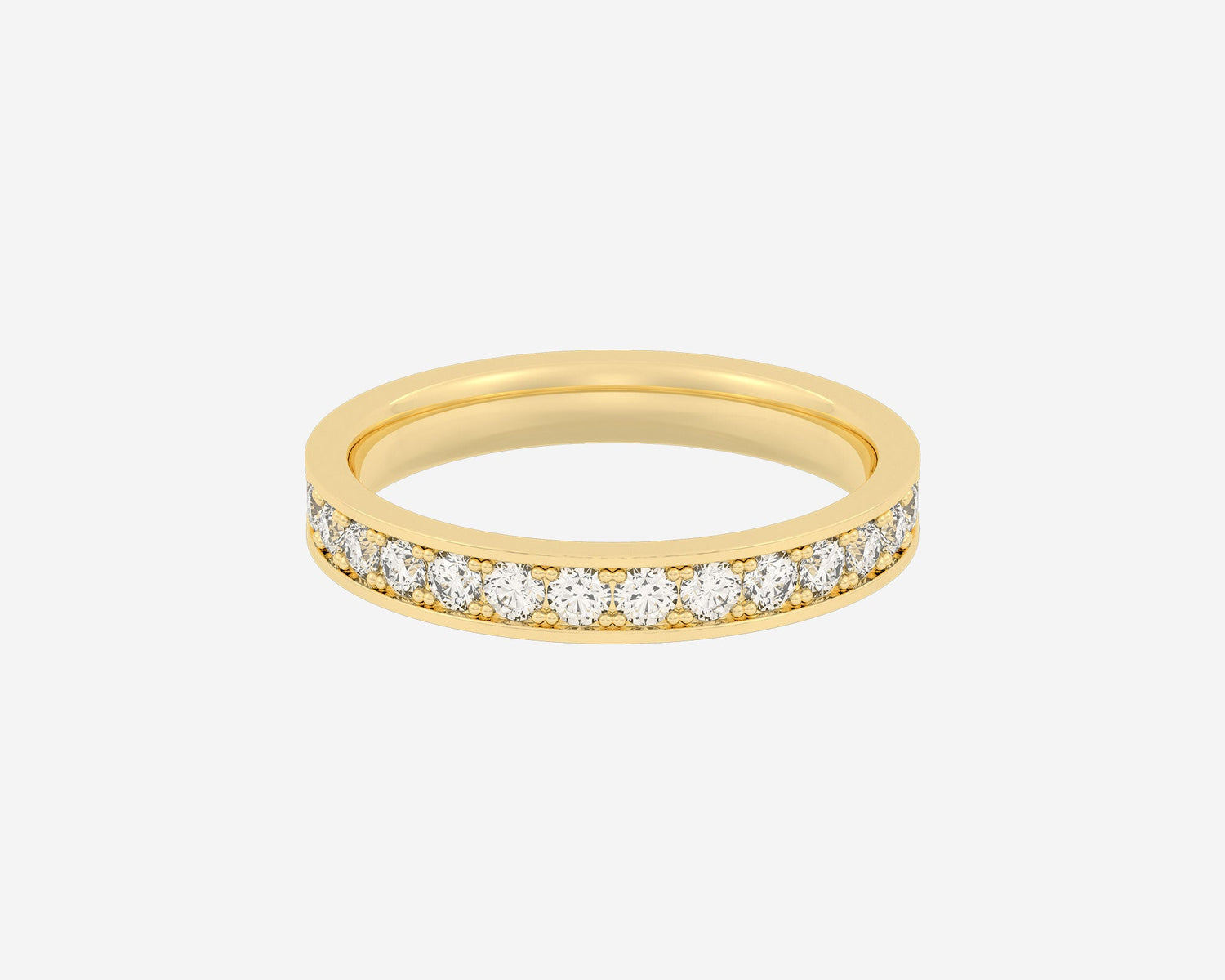 Handcrafted in 14k yellow gold, 2mm width with lab-grown diamonds set fully in channel style (E-G color, VS clarity). Made from conflict-free, recycled metals with a unisex, comfort-fit design.