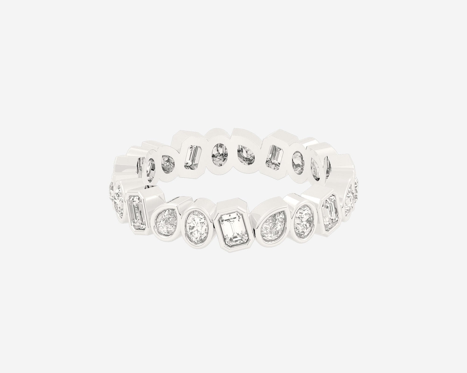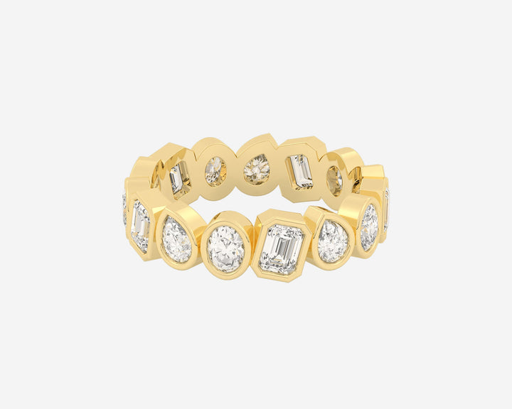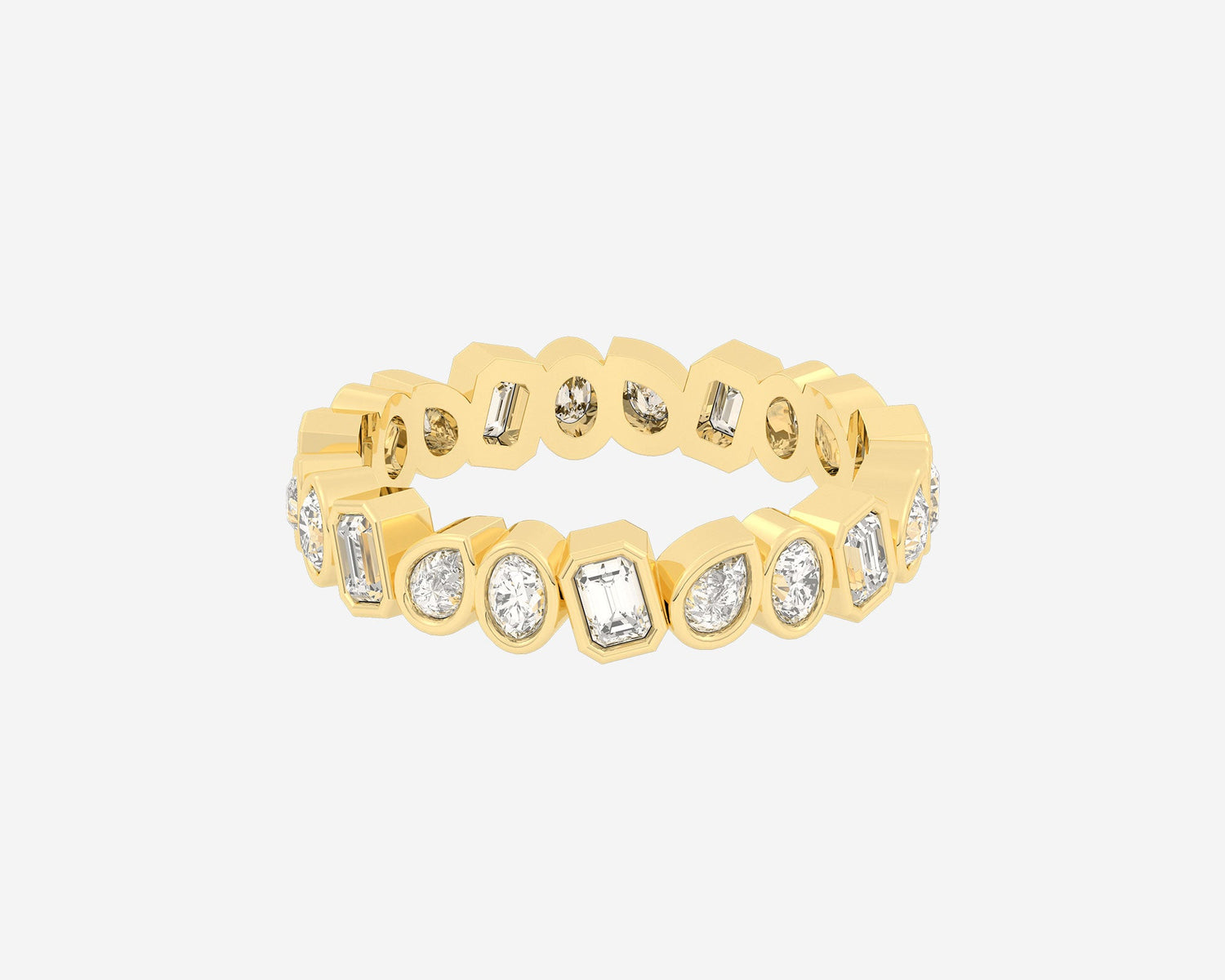 Handcrafted in 14k yellow gold with ethically sourced, lab-grown mixed-cut diamonds set across a 4mm wide band. Available in 14k and 18k gold and 950 platinum.