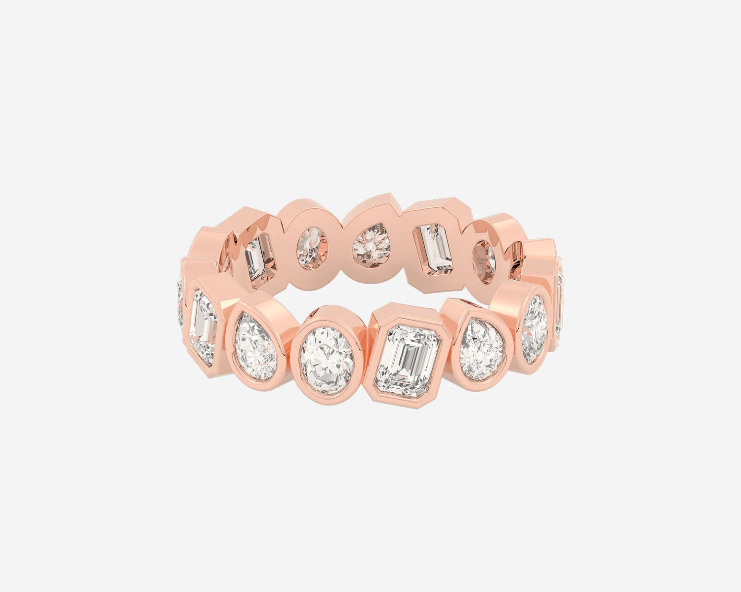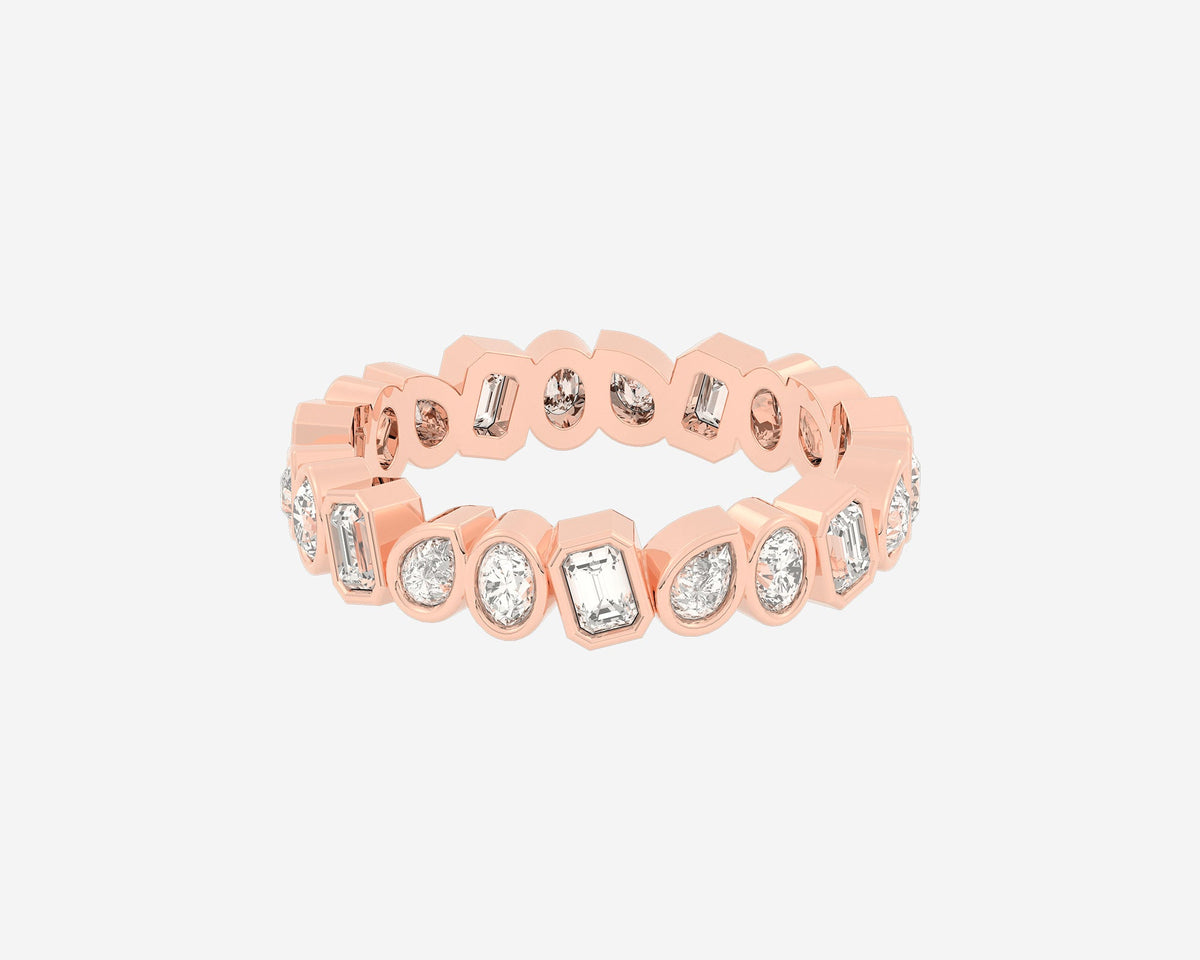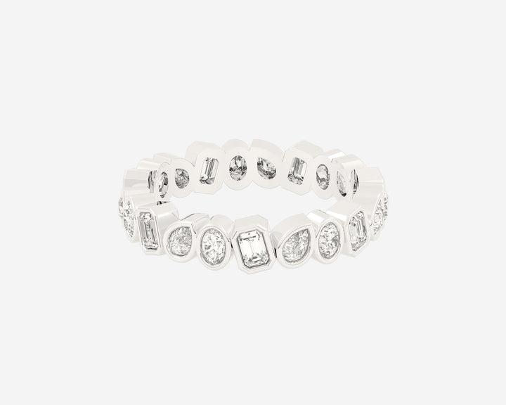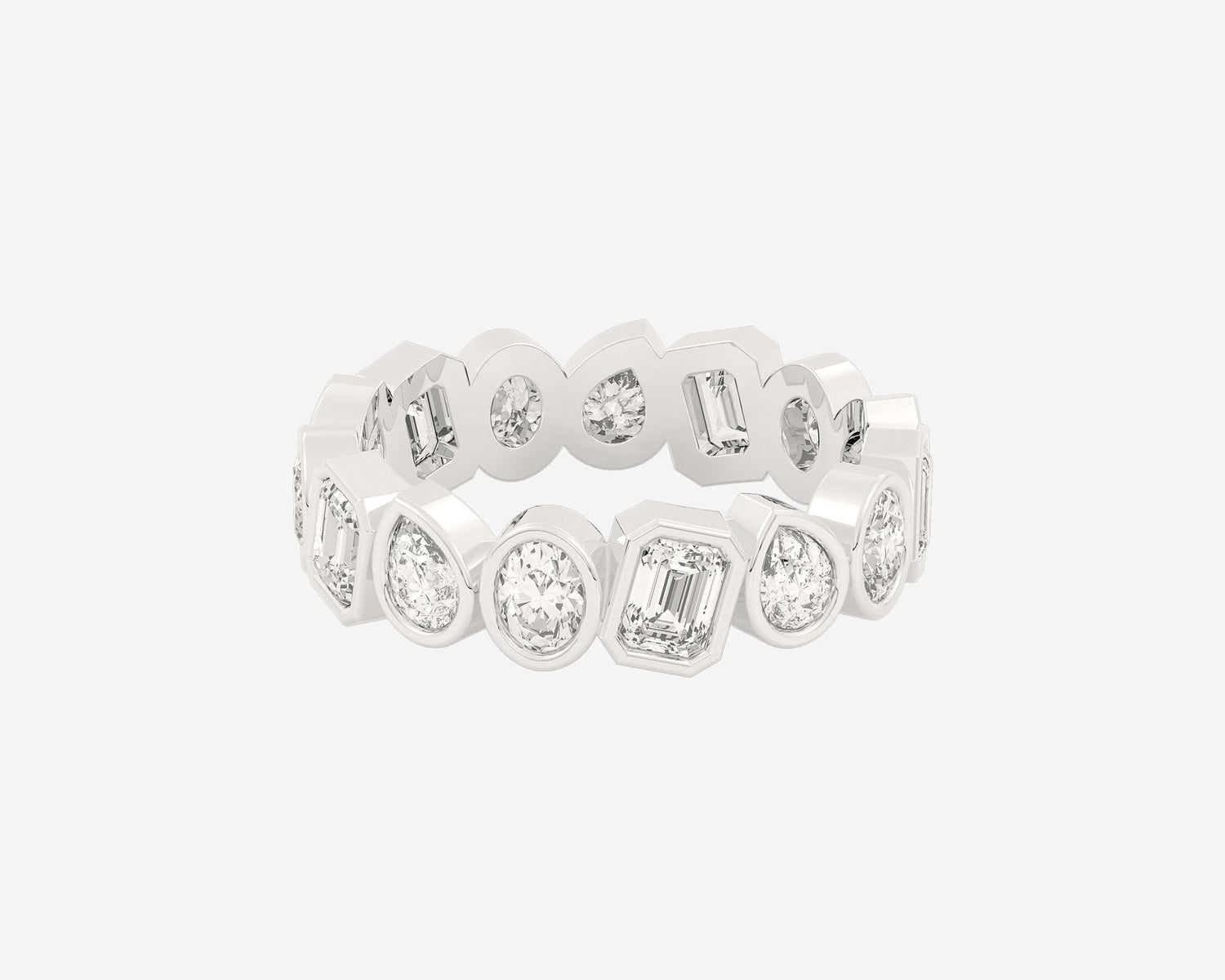 Handcrafted in 14k yellow gold with ethically sourced, lab-grown mixed-cut diamonds set across a 4mm wide band. Available in 14k and 18k gold and 950 platinum.