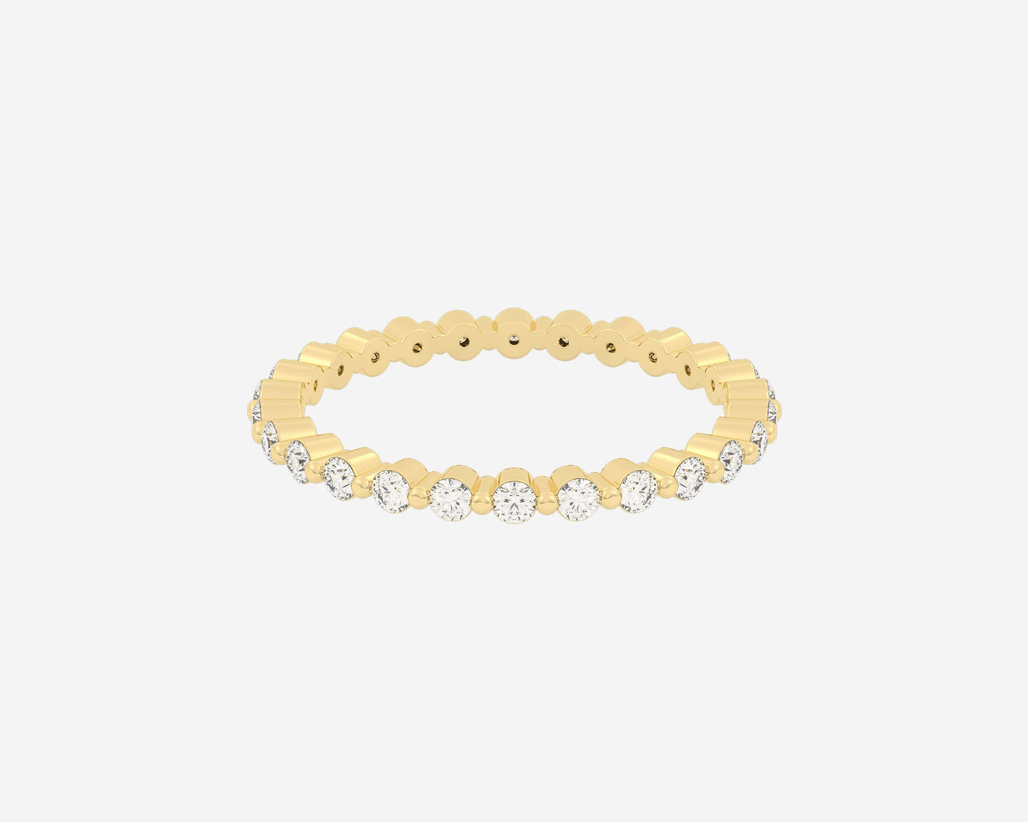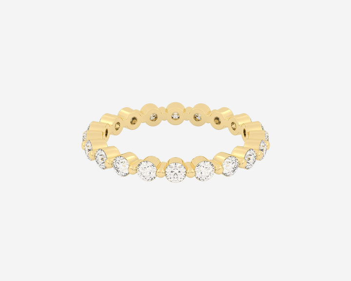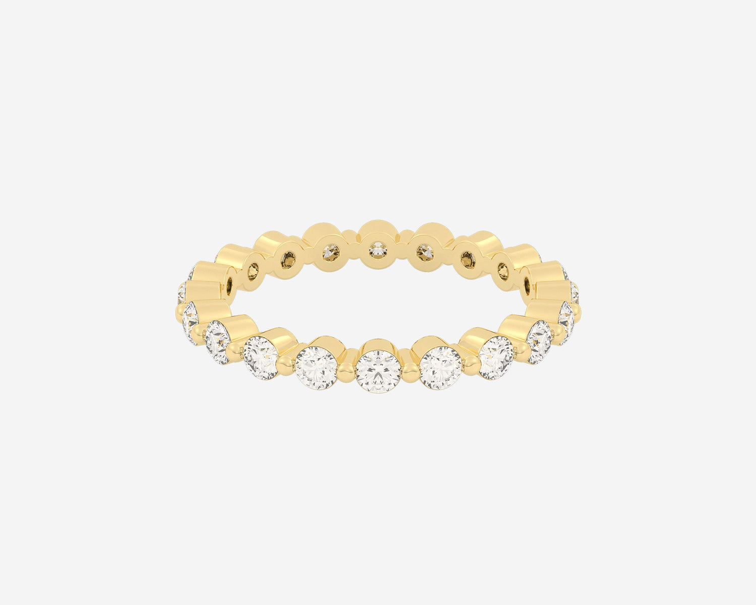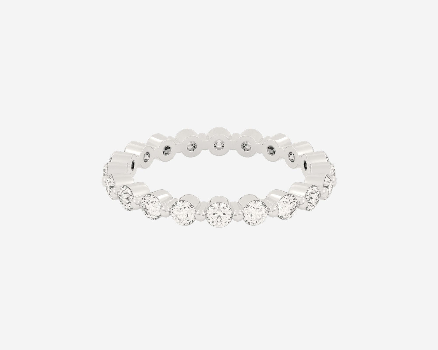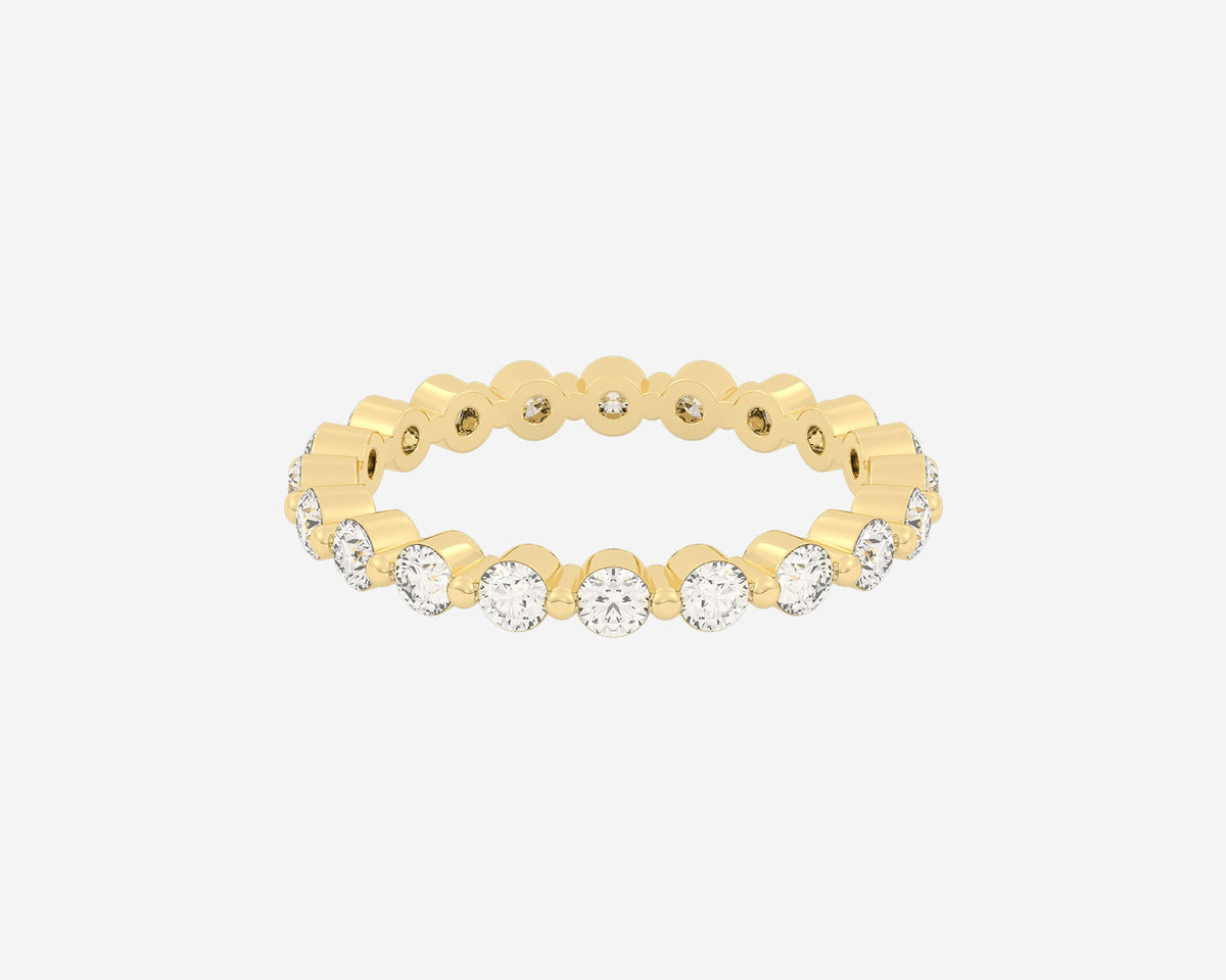 This Full Floating Eternity ring by Holden showcases ethical lab-grown diamonds set entirely around the 1.75mm band in a floating setting for maximum sparkle. With E-G color and VS clarity, it offers an elegant and radiant presence. Crafted sustainably in New York City with a unisex comfort-fit design.