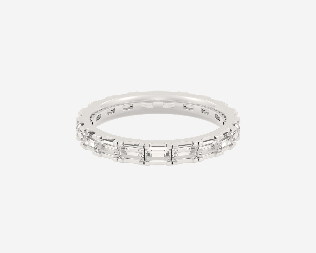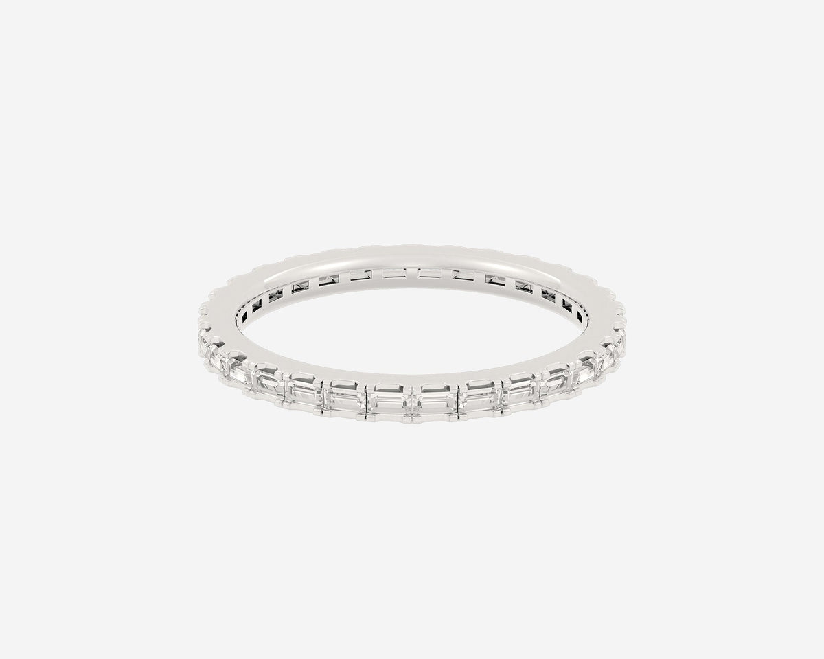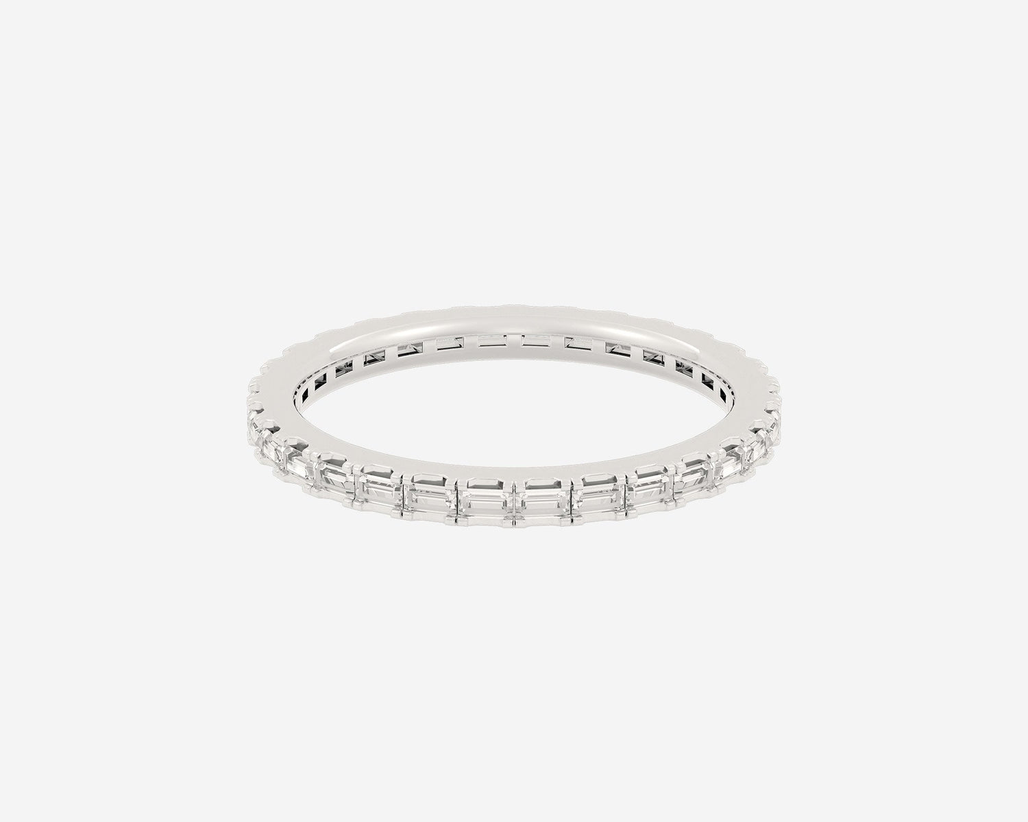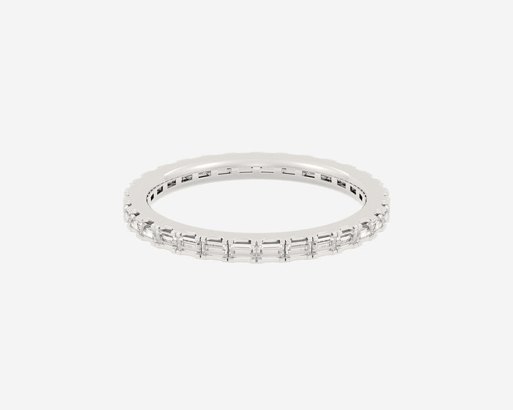 This Full Row Baguette ring by Holden is a slender 1.75mm band fully set with ethical lab-grown diamonds arranged in a horizontal row. The G-H color and VS clarity ensure exquisite sparkle, blending minimalist design with luxury. Custom crafted with a unisex comfort-fit design in New York City, it represents conscious elegance.