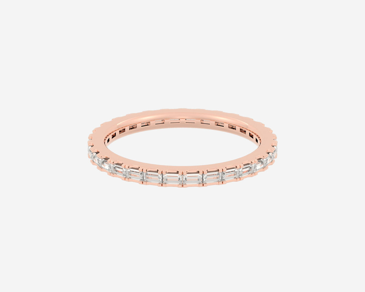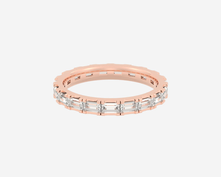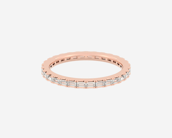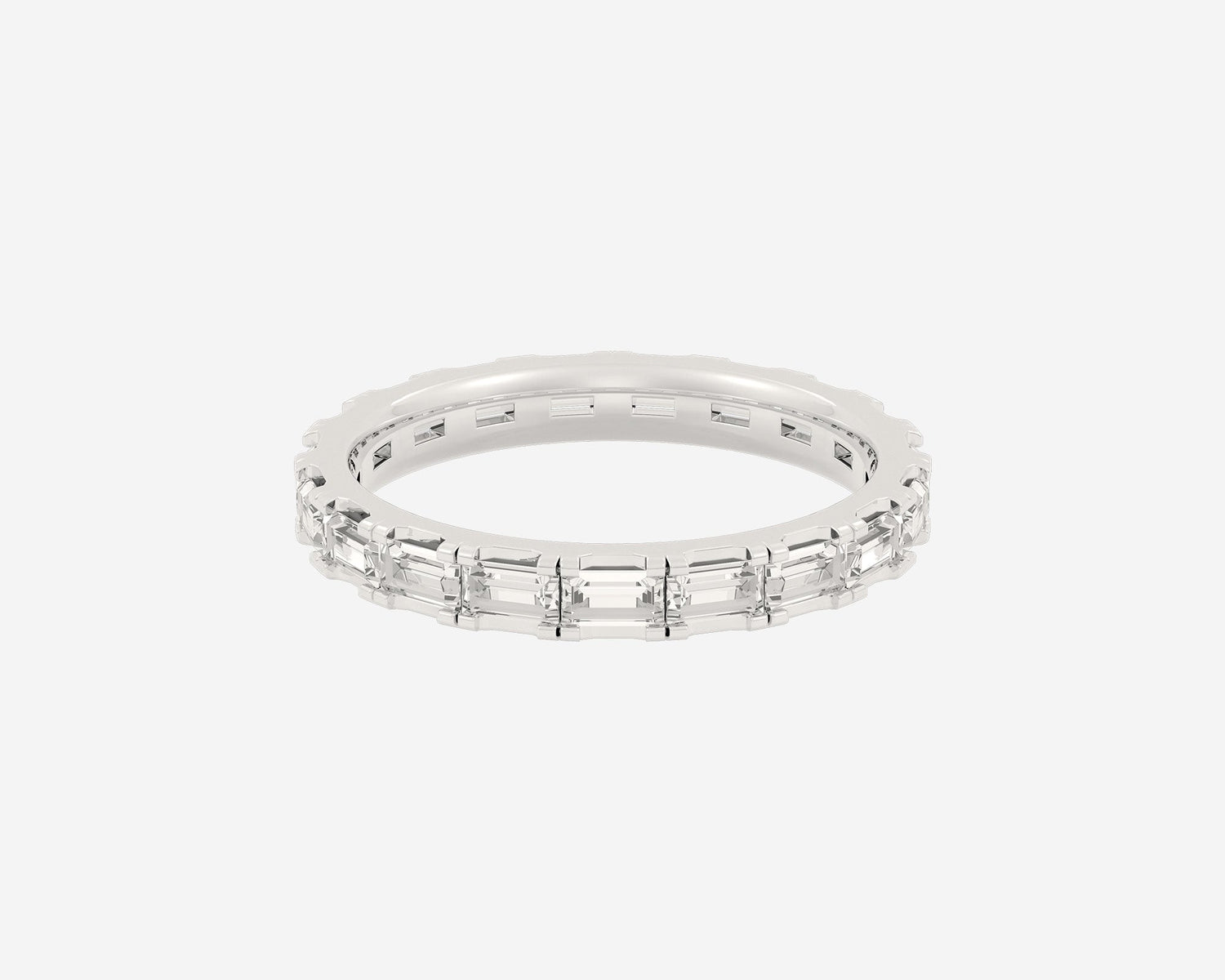 This Full Row Baguette ring by Holden is a slender 1.75mm band fully set with ethical lab-grown diamonds arranged in a horizontal row. The G-H color and VS clarity ensure exquisite sparkle, blending minimalist design with luxury. Custom crafted with a unisex comfort-fit design in New York City, it represents conscious elegance.