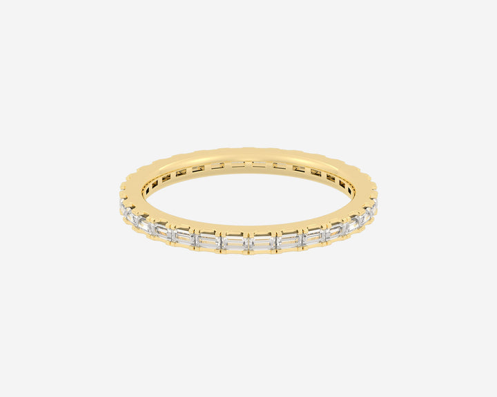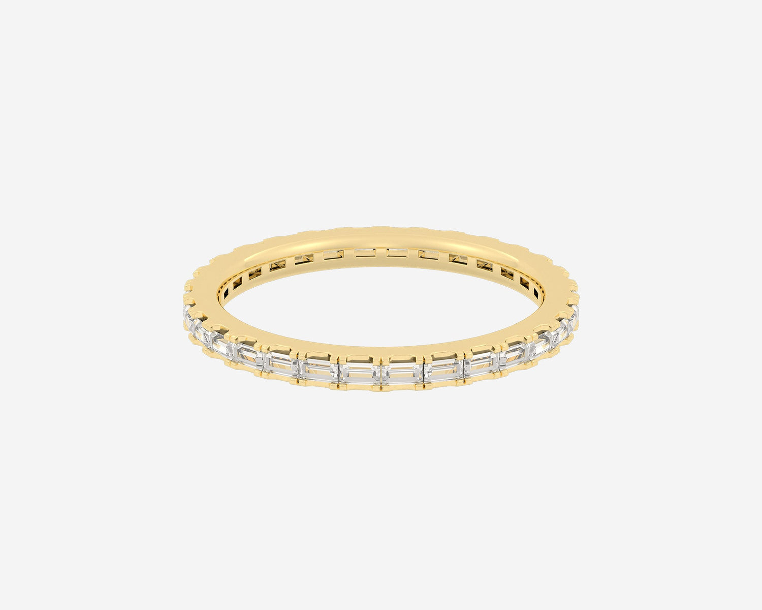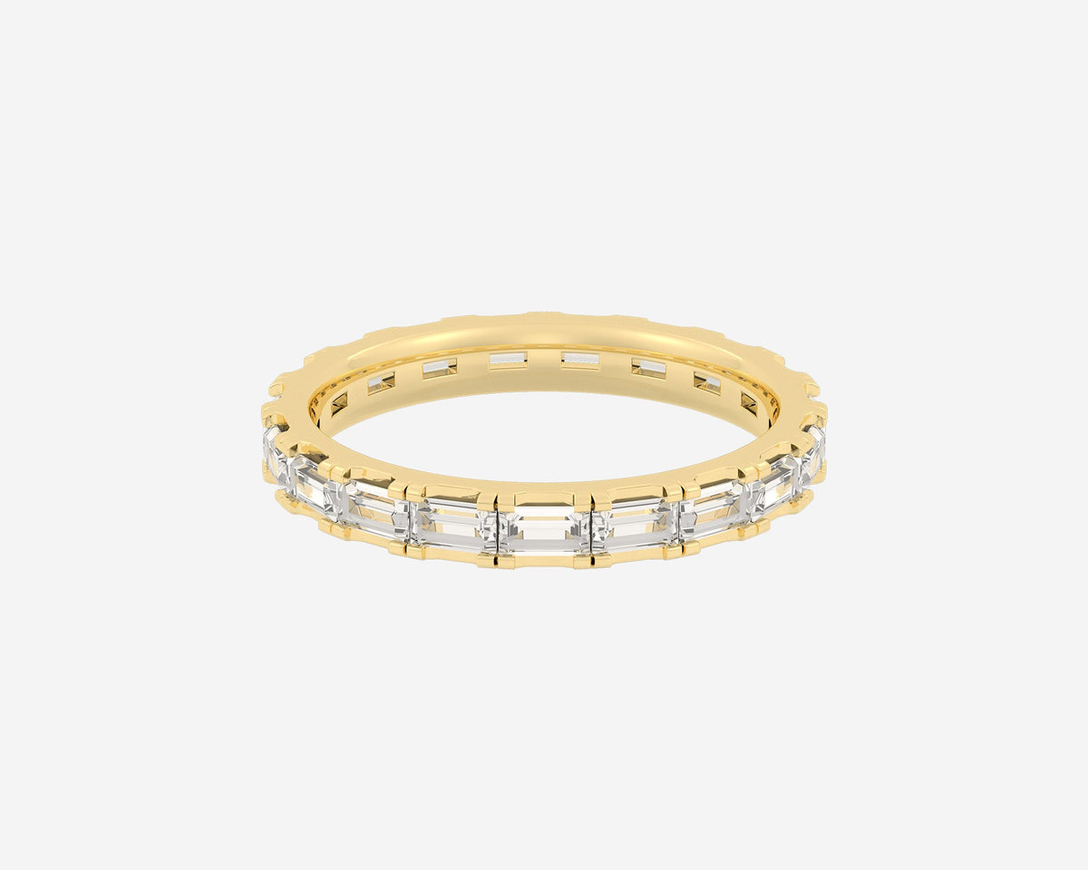 Handcrafted in 14k yellow gold, 1.75mm width with lab-grown diamonds set fully in row baguette style (G-H color, VS clarity). Made from conflict-free, recycled metals with a unisex, comfort-fit design.