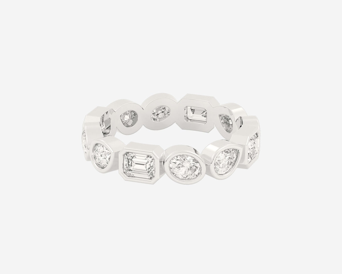 This Full Row Mixed Stone by Holden is a 3mm diamond wedding band featuring a continuous row of lab-grown diamonds. The ring blends sparkling glamour with sustainable design, perfect for stacking or as a standout piece symbolizing eternal commitment.