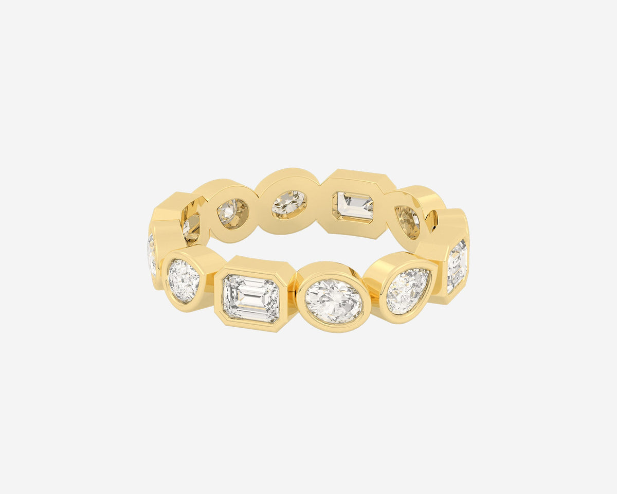 Handcrafted in 14k yellow gold with lab-grown diamonds. Band width measures 3mm. Made from recycled metals and ethical lab-grown diamonds, crafted in NYC.