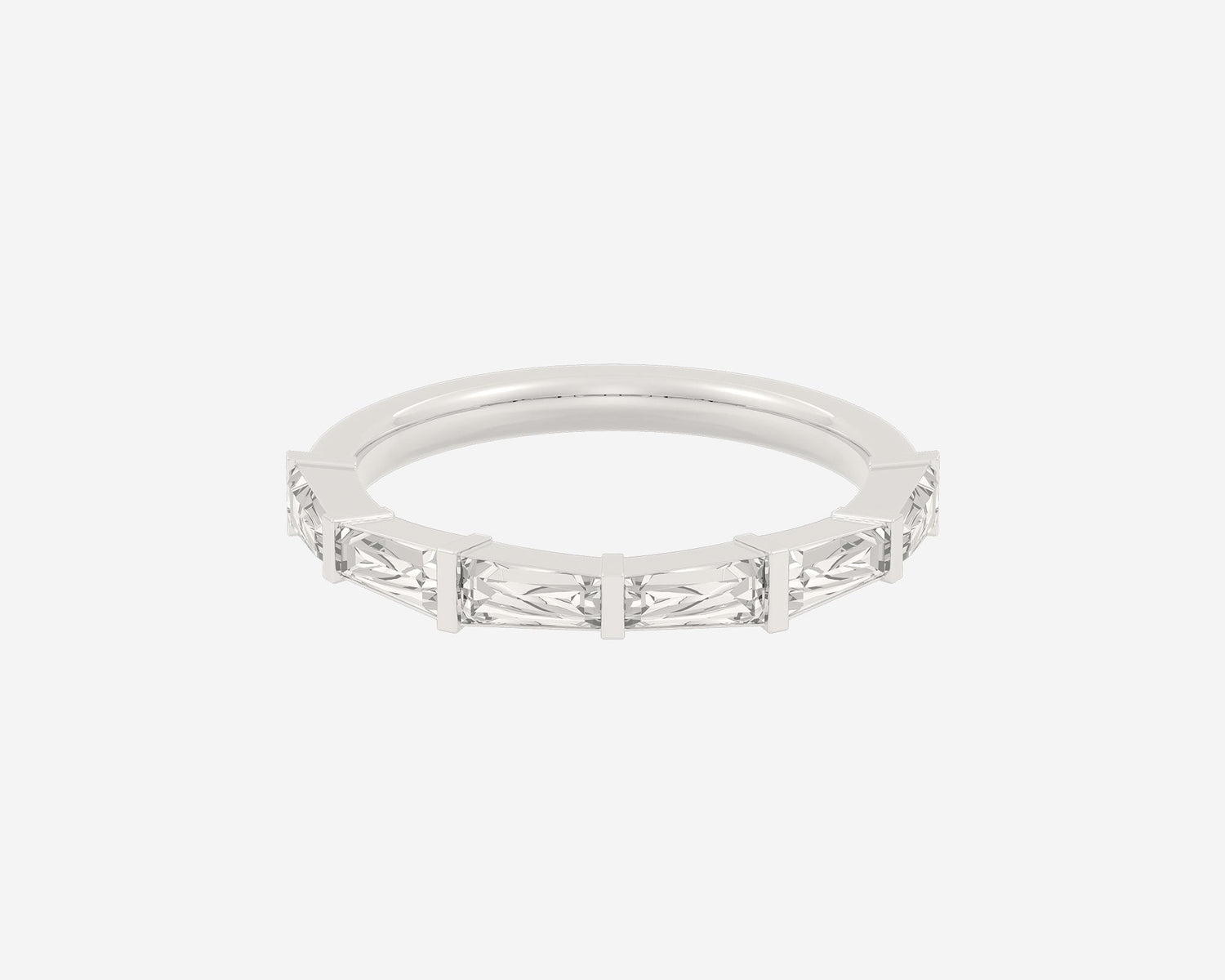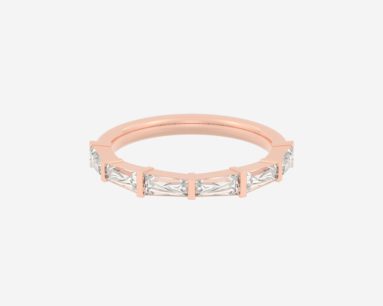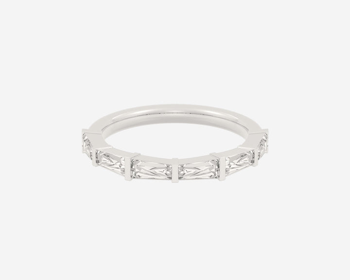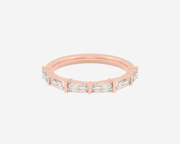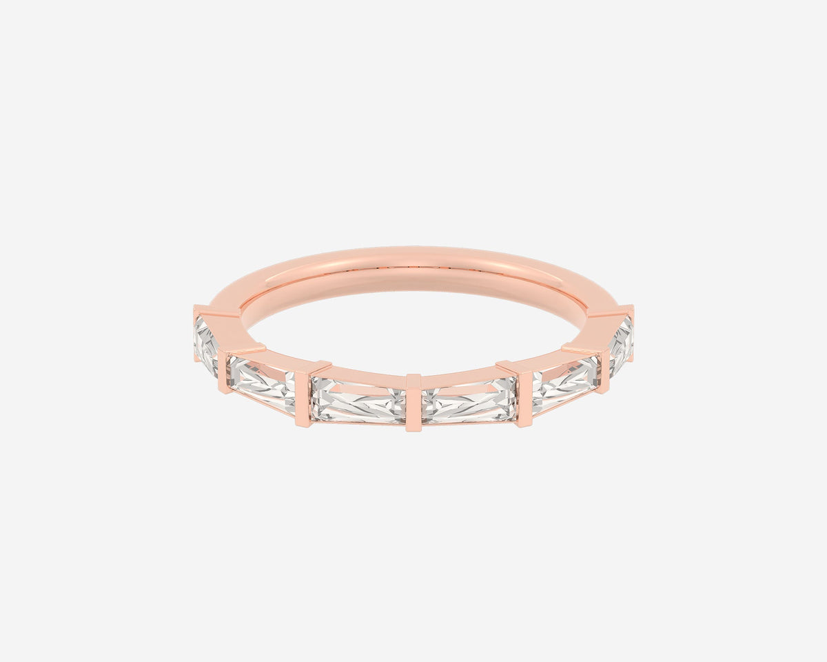 Handcrafted in 14k yellow gold, 3mm band width with lab-grown tapered baguette diamonds.