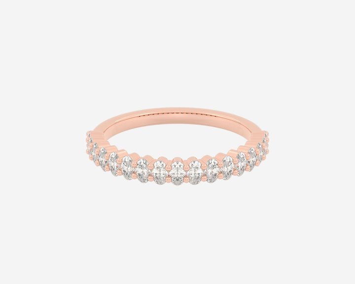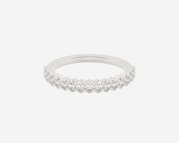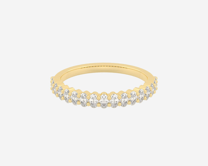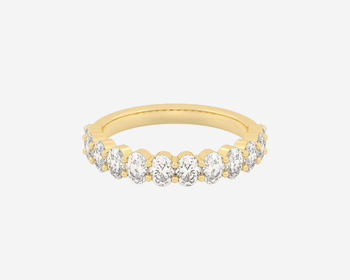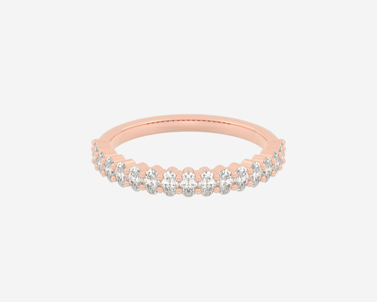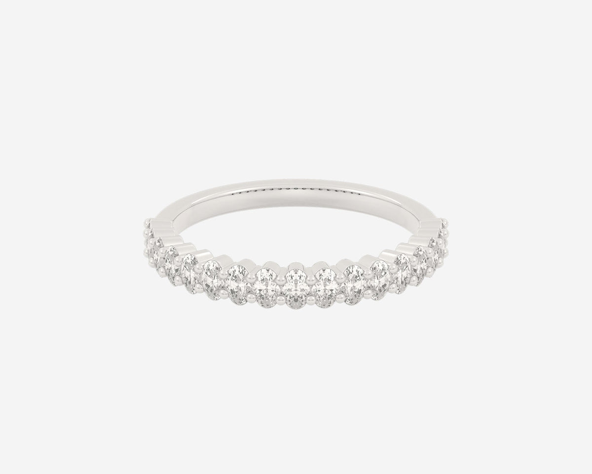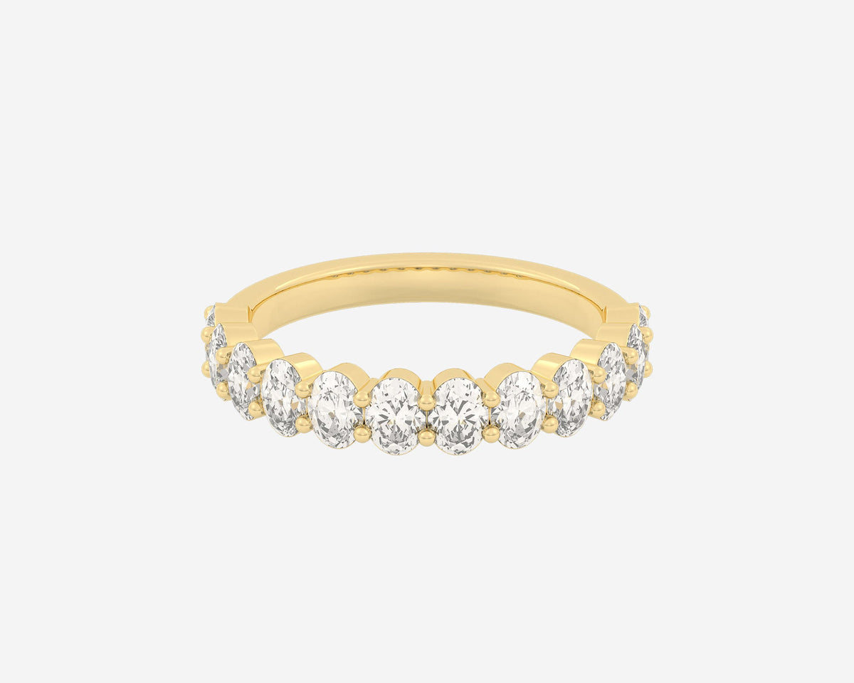 These Half Column Oval rings by Holden embody understated elegance with ethical lab-grown diamonds set halfway around the band, offering a subtle sparkle that speaks to refined taste. Their minimalist design combined with the brilliance of E-G color, VS clarity diamonds symbolizes balance and sophistication, perfect for those who appreciate conscious luxury. Custom made in New York City, each ring is a unique expression of craftsmanship and ethical commitment.