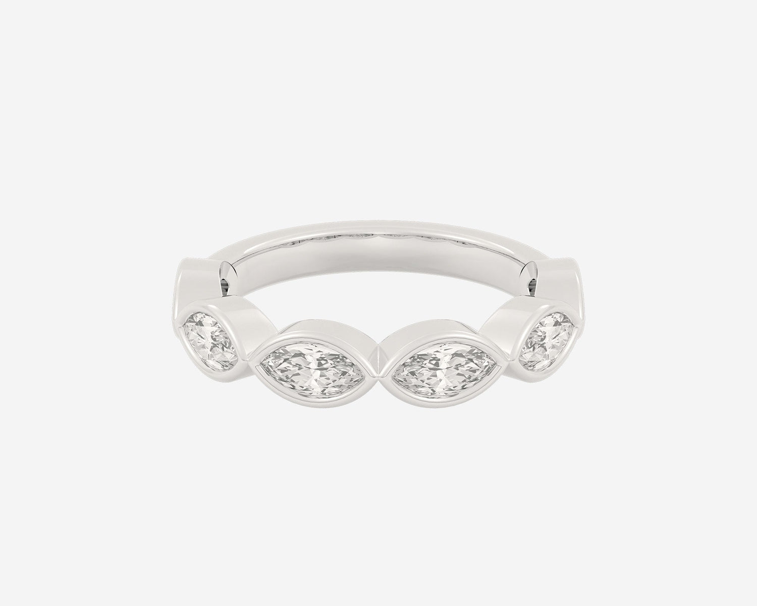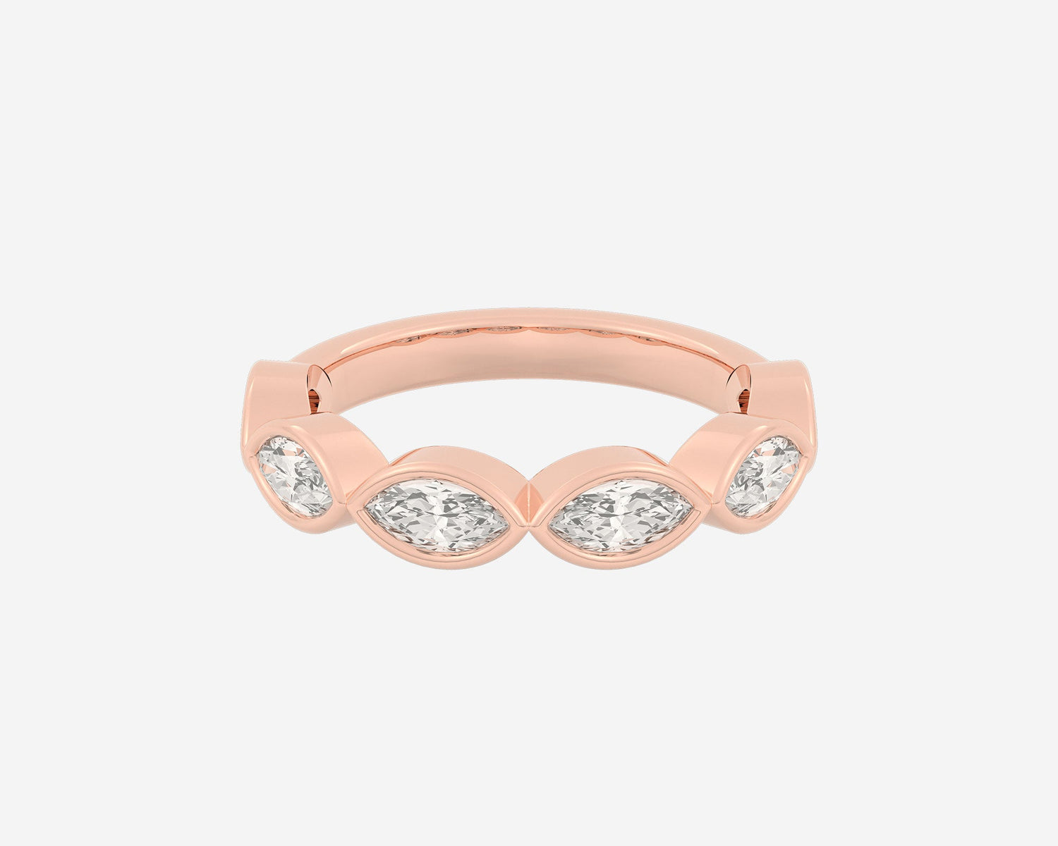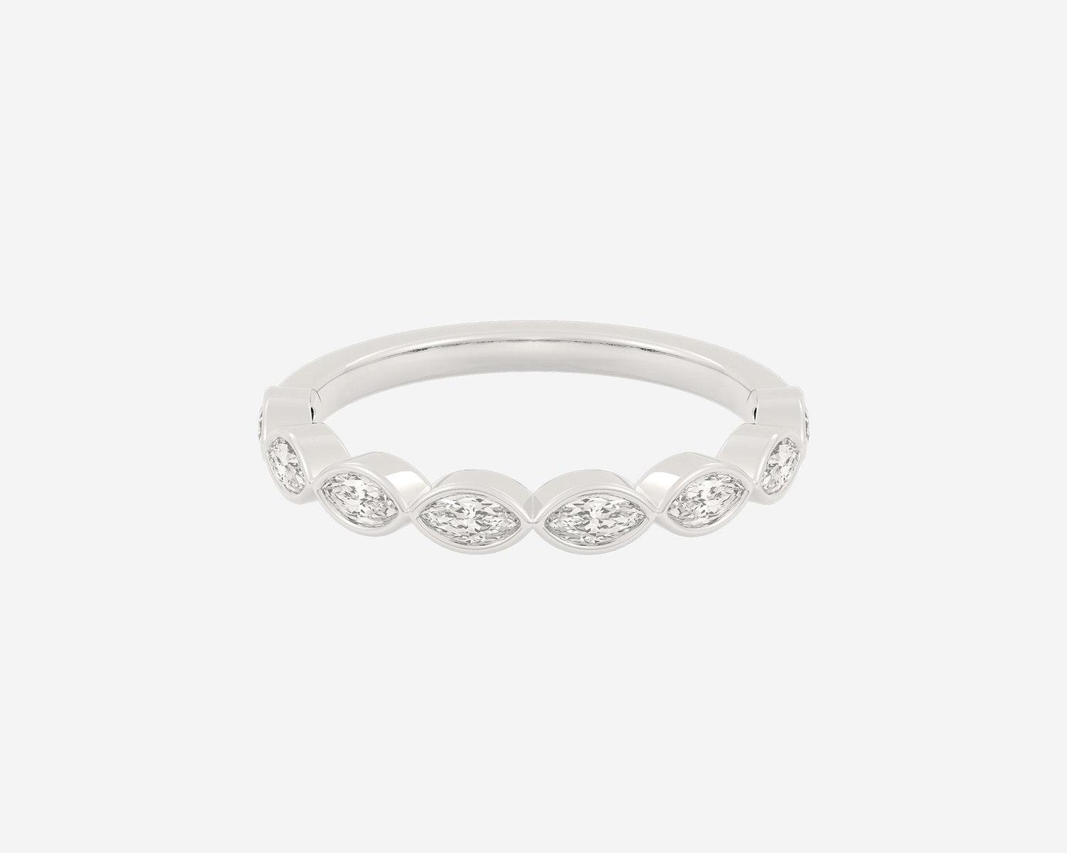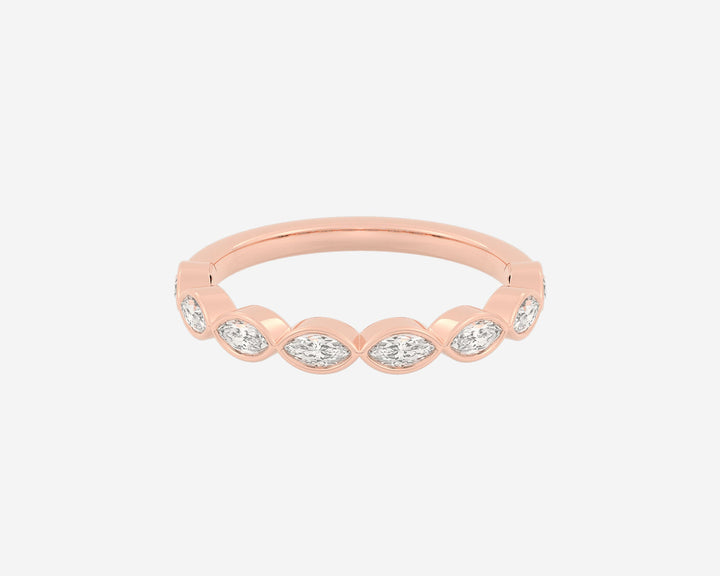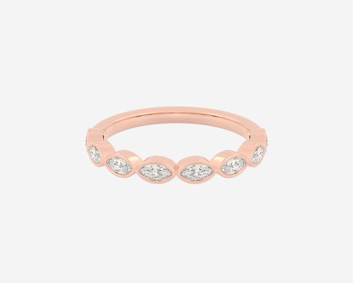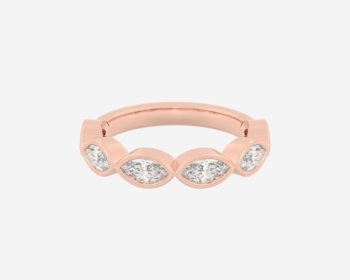 Handcrafted in 14k yellow gold, 3mm band width with horizontally bezel-set lab-grown marquise diamonds.