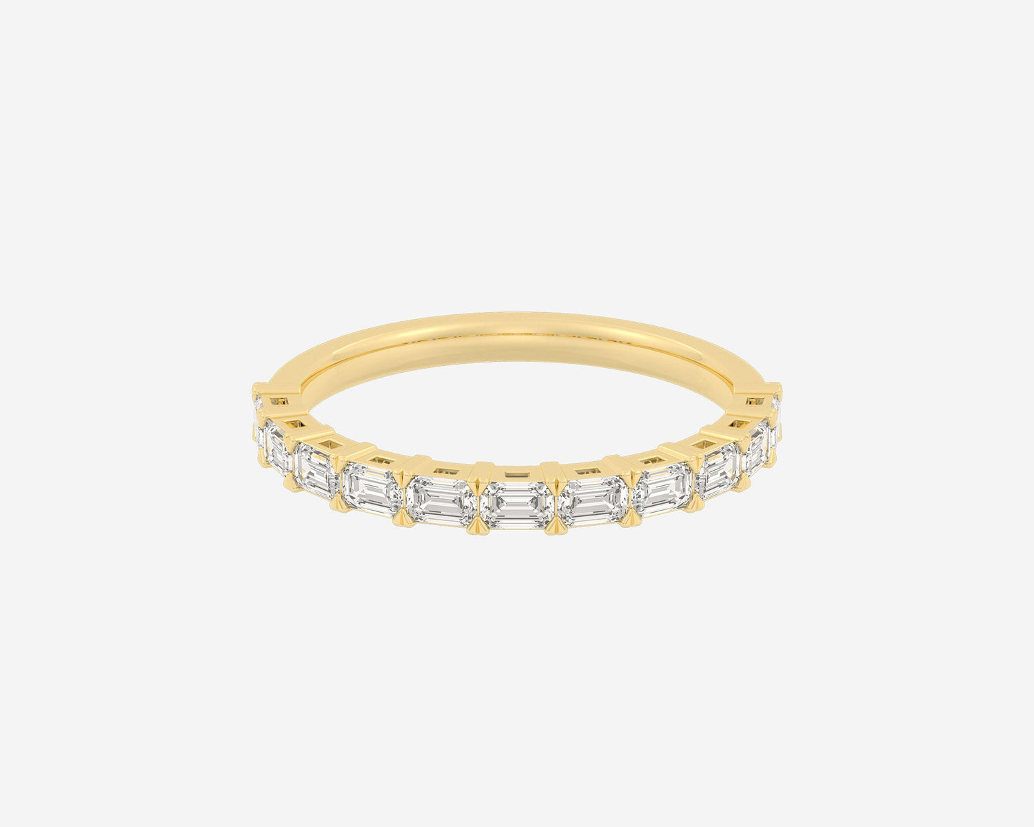 Crafted in 14k yellow gold with ethical lab-grown emerald-cut diamonds. Measures 2.75mm wide. Made from sustainable, recycled metals. Available in 14k and 18k gold and 950 platinum.