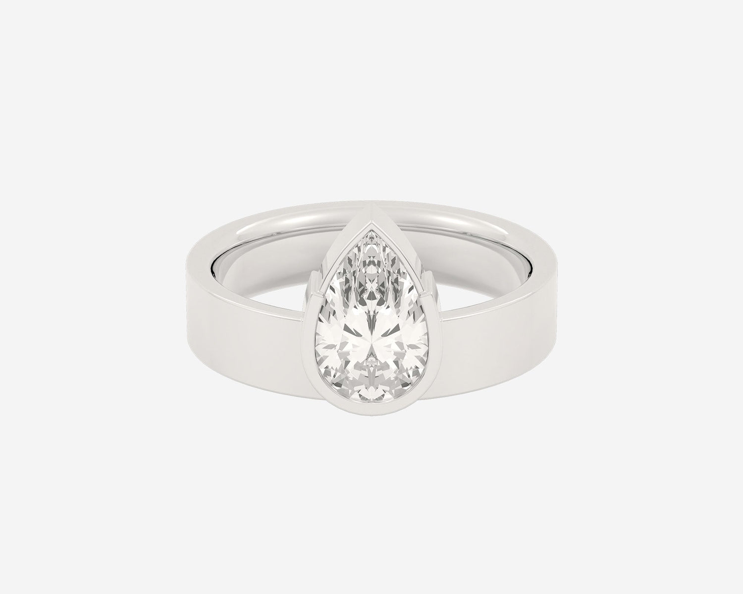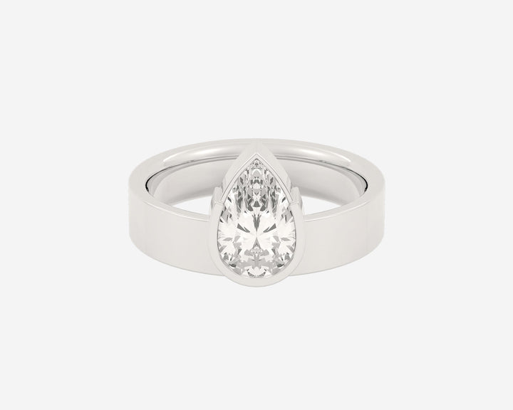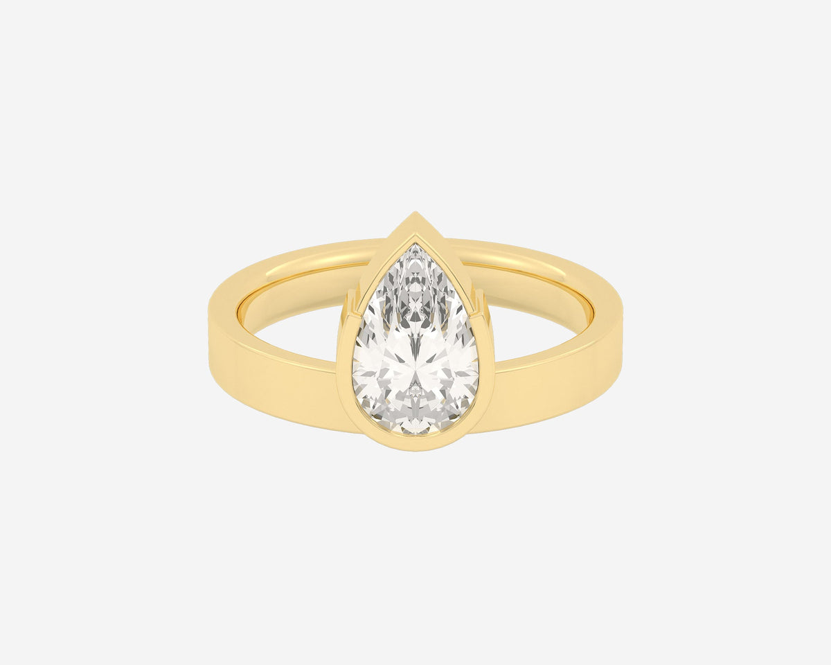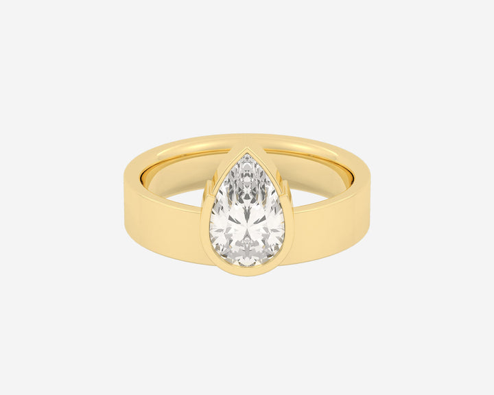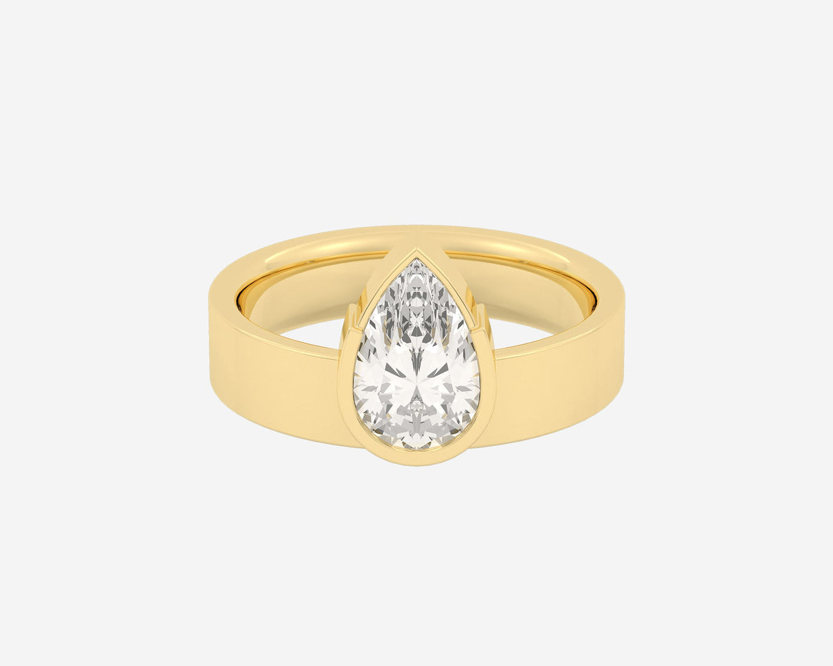 Made in 14k yellow gold with ethically sourced lab-grown pear diamond set in half bezel on a 3mm wide band. Available in 14k and 18k gold and 950 platinum.