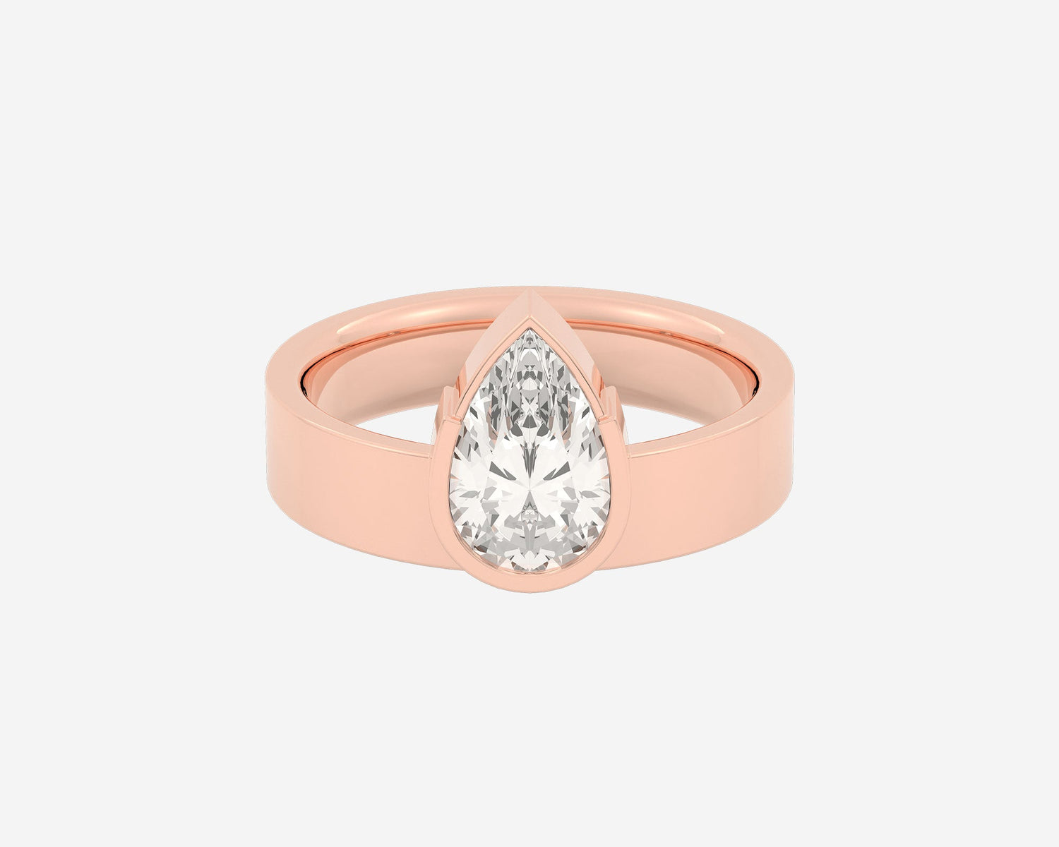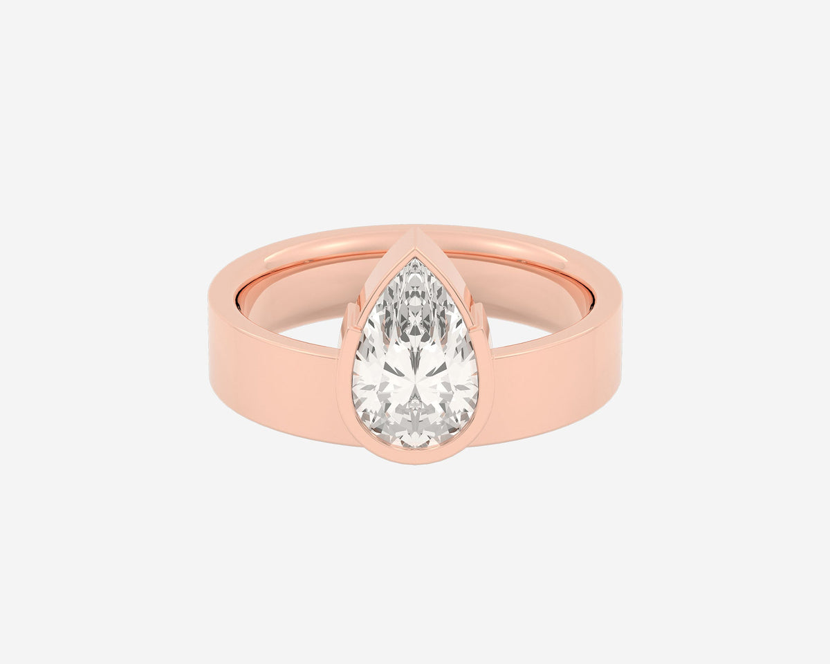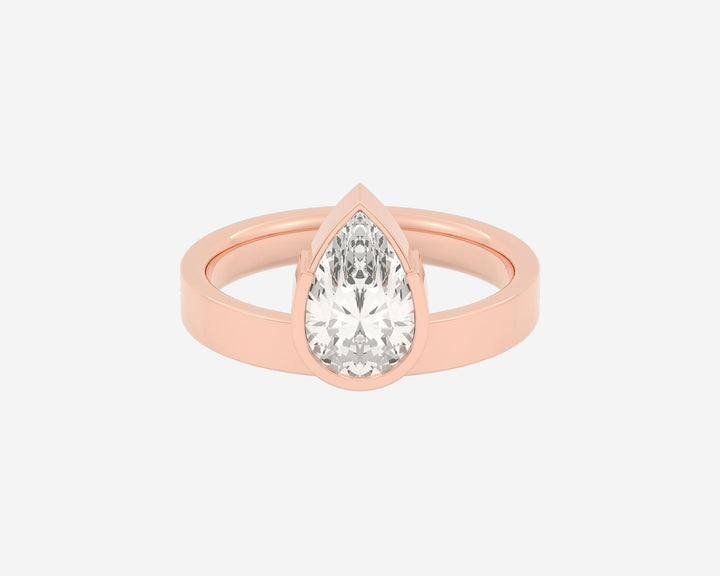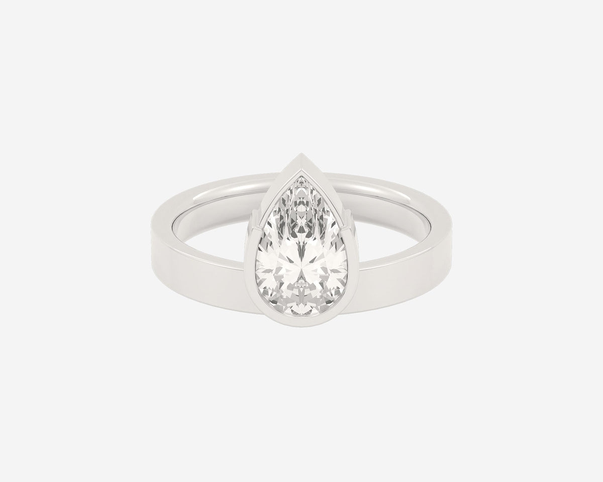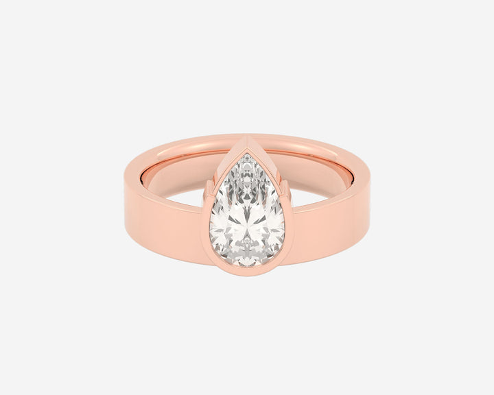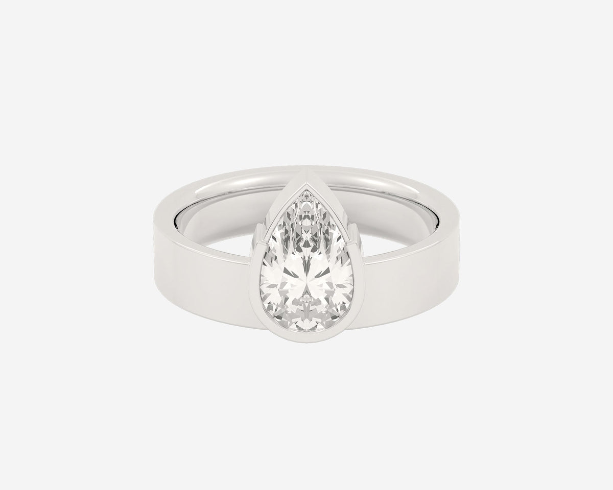 Made in 14k yellow gold with ethically sourced lab-grown pear diamond set in half bezel on a 3mm wide band. Available in 14k and 18k gold and 950 platinum.