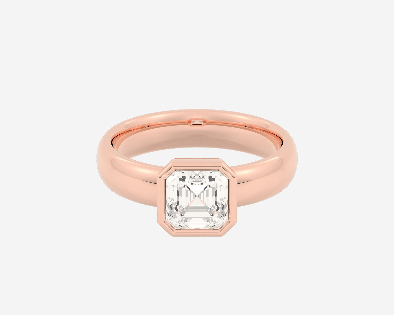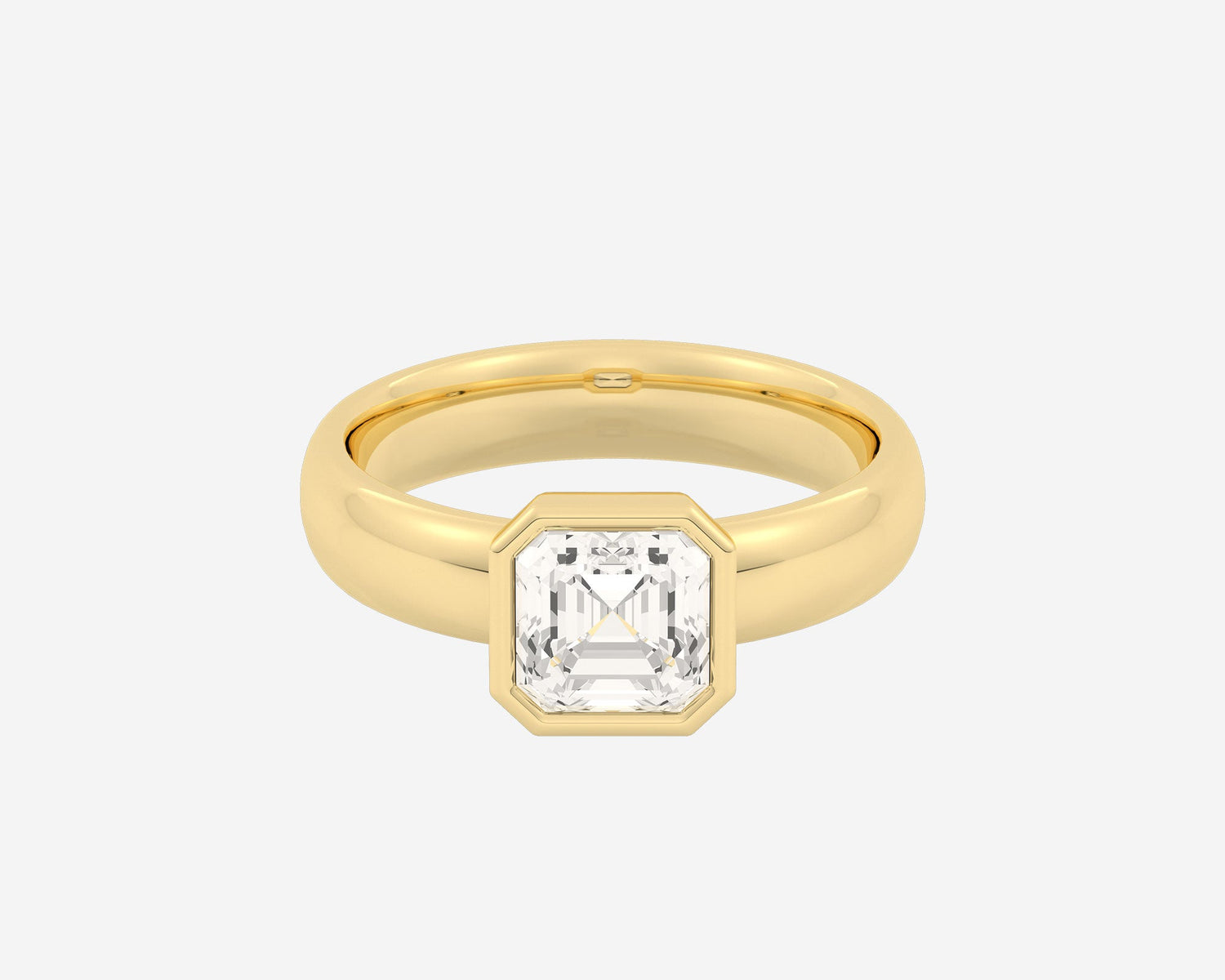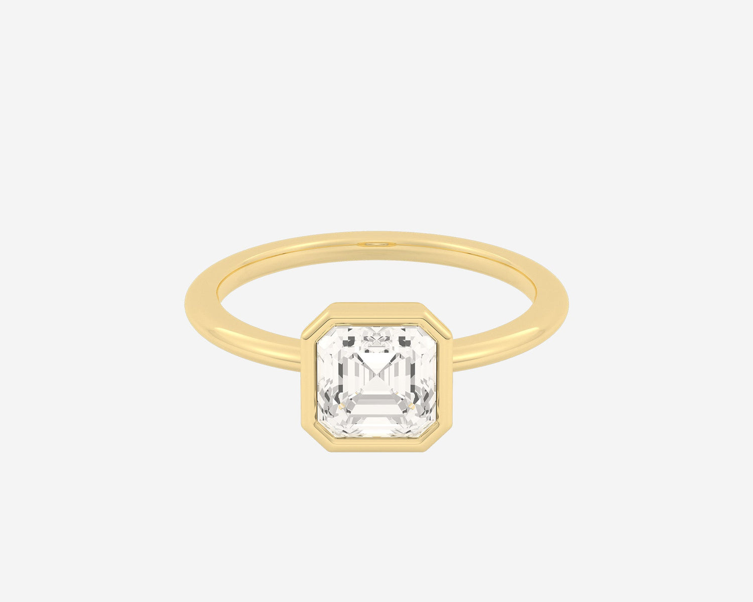 Handcrafted in 14k yellow gold, 1.5mm band width with bezel-set lab-grown Asscher-cut diamond.