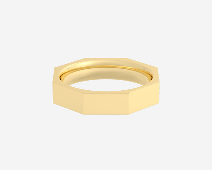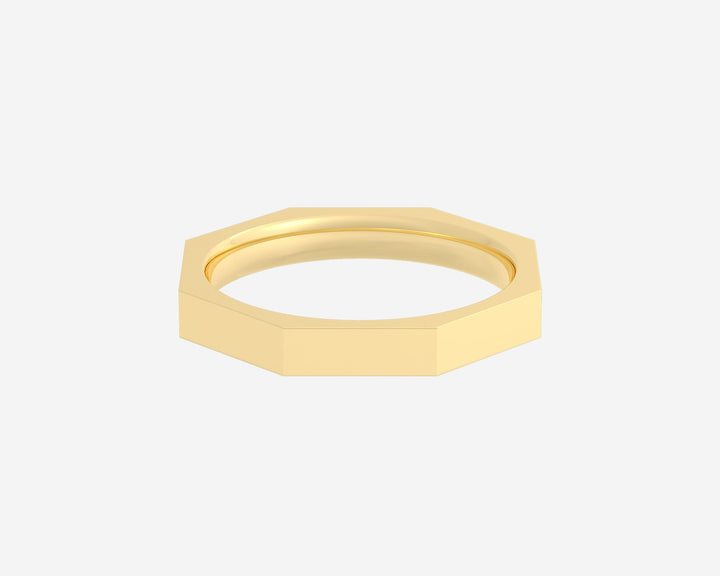 Handcrafted in 10k yellow gold, 1.5mm width with octagonal shape. Made from conflict-free, recycled metals with a unisex, comfort-fit design.