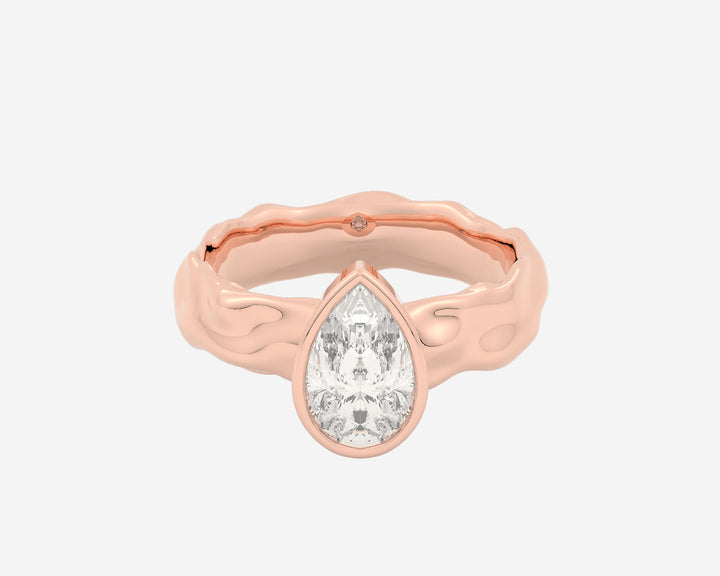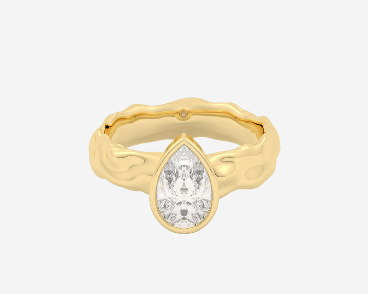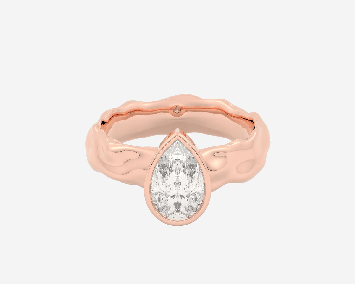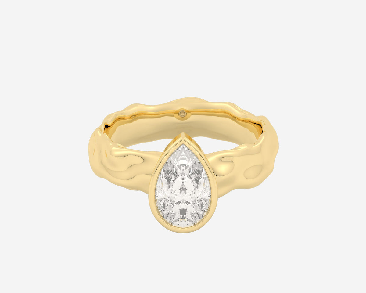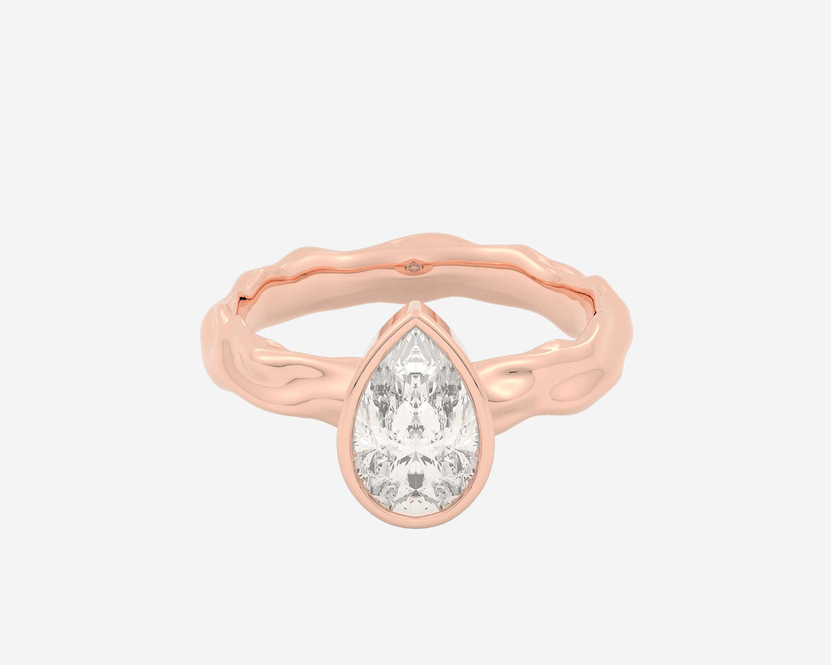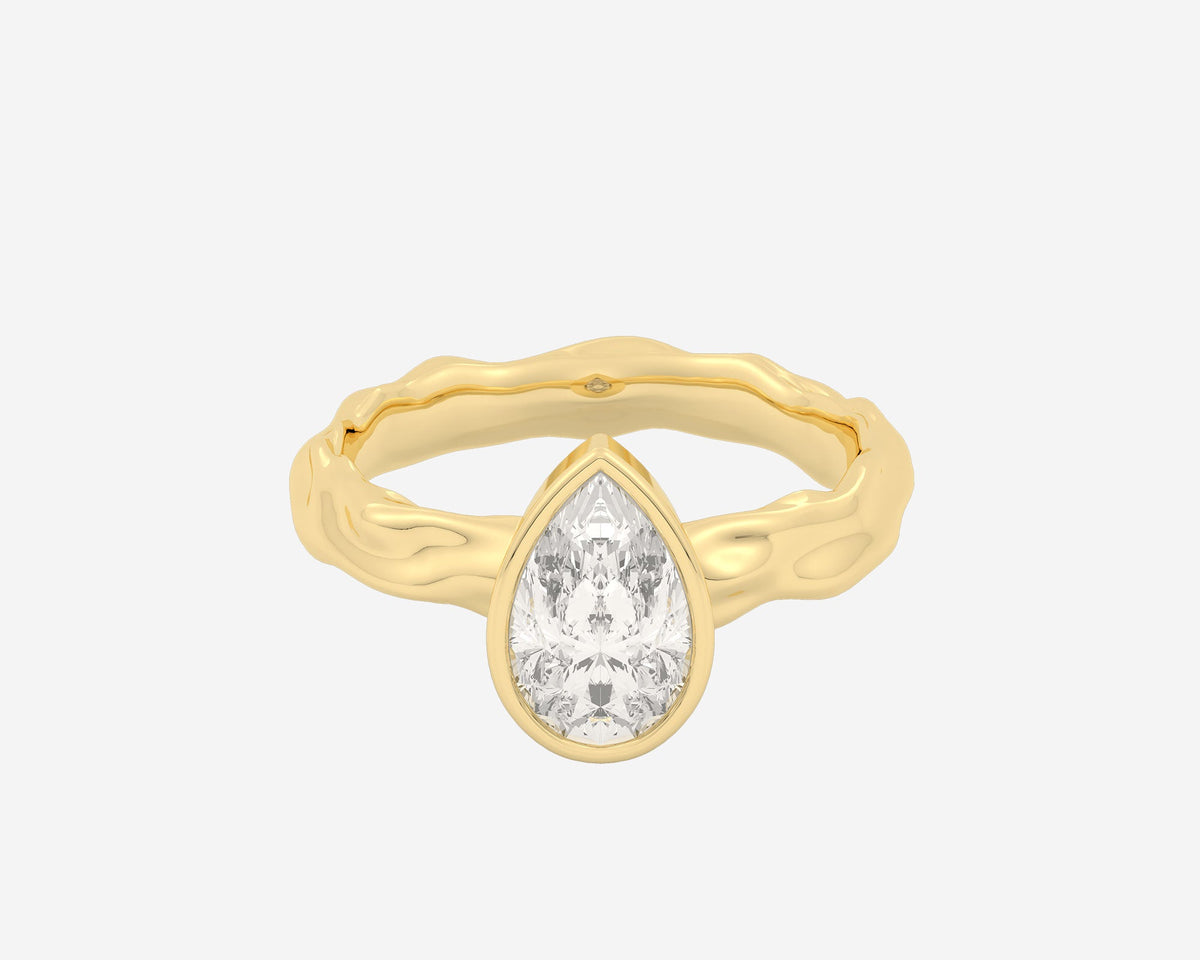 This Organic Bezel Solitaire — Pear ring by Holden reimagines classic engagement elegance with a bezel-set lab-grown pear-cut center stone and a textured sculptural band. Available in multiple gold karats and platinum, it embodies modern sophistication and bespoke craftsmanship, making it a meaningful symbol of love.