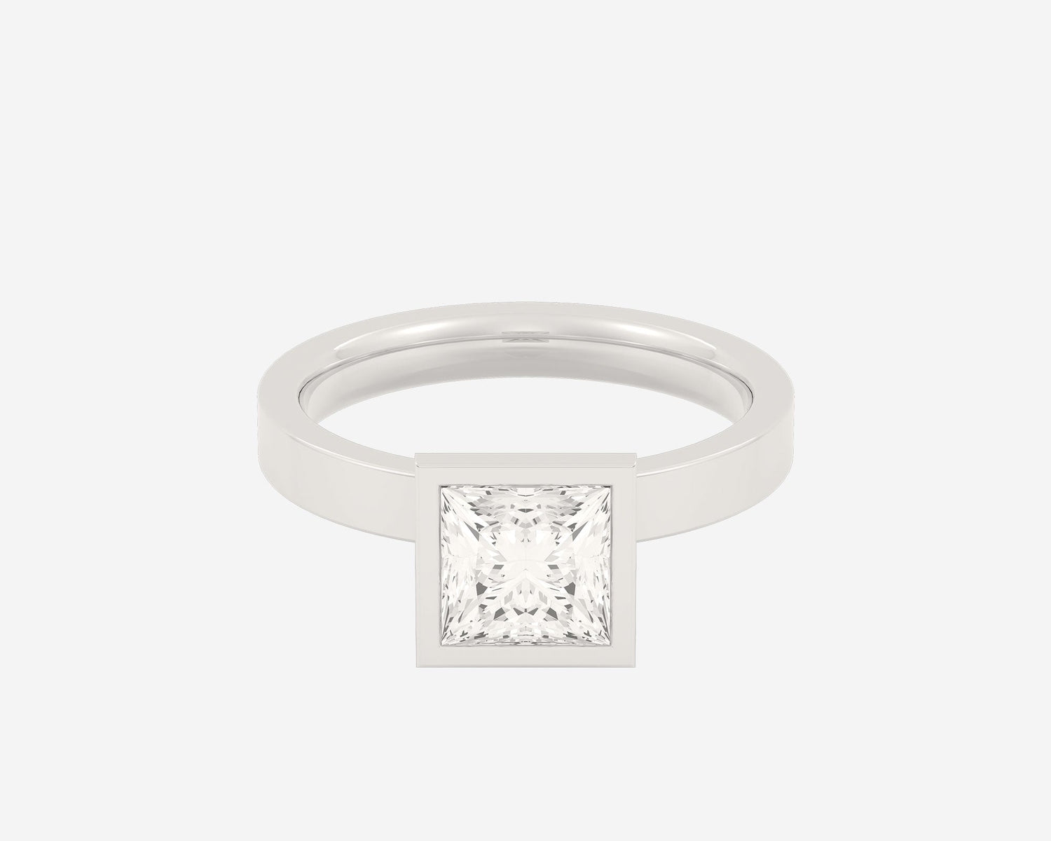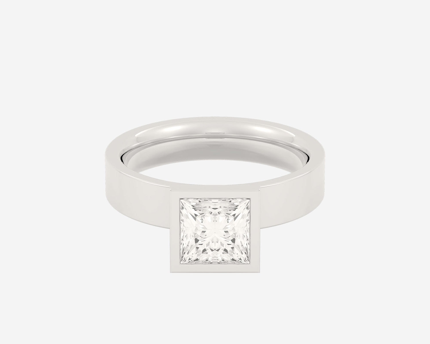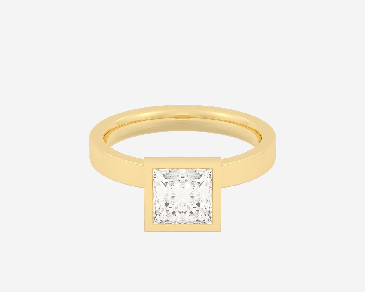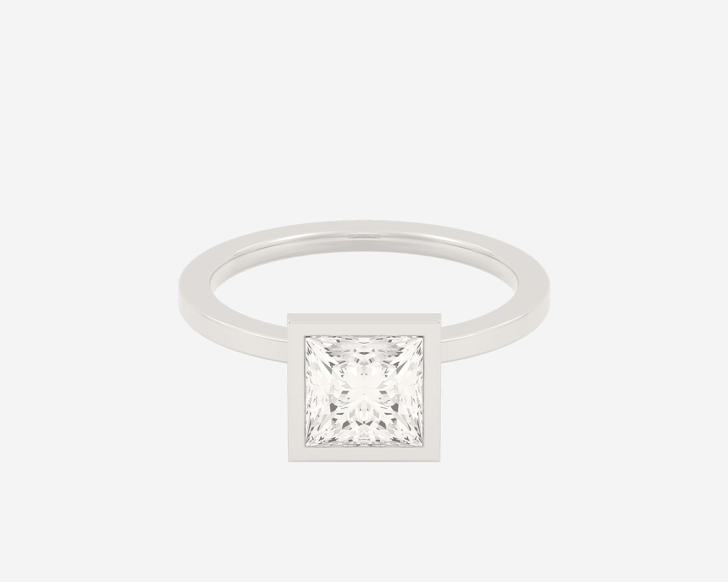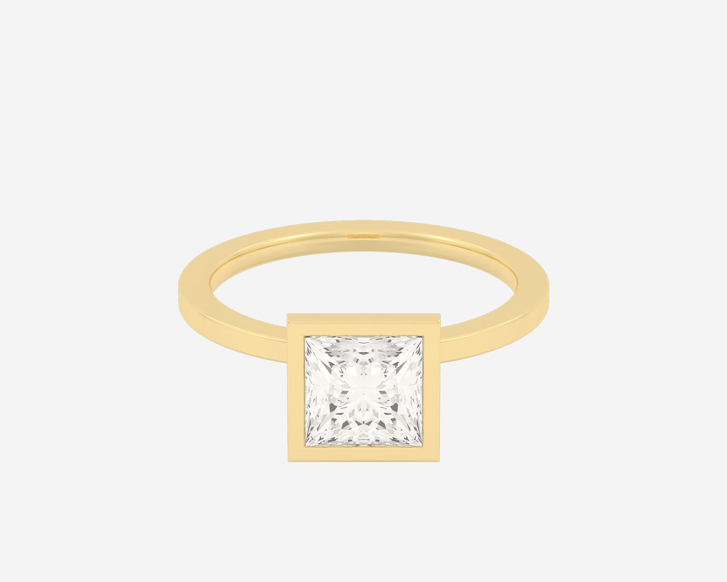 This Square Bezel Solitaire Princess by Holden features a princess-cut diamond framed by a sharp square bezel that enhances its clean lines and radiant sparkle. The 1.5mm band adds delicate balance, creating a sophisticated and contemporary solitaire ring with sustainable craftsmanship at its core.
