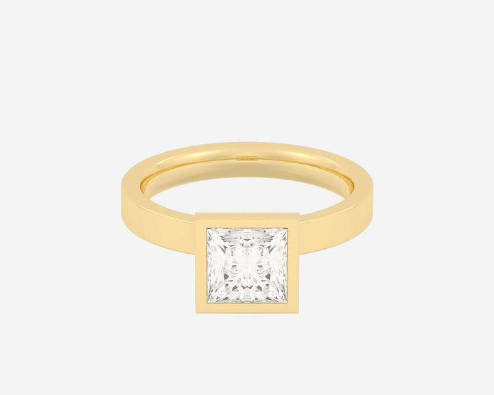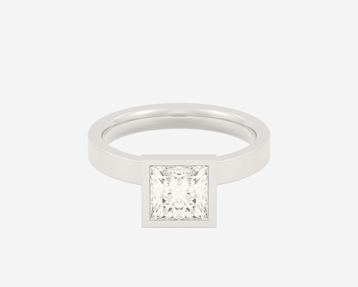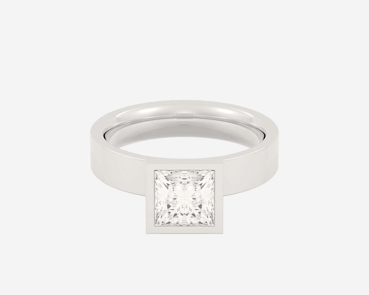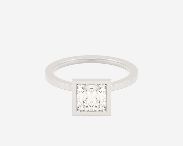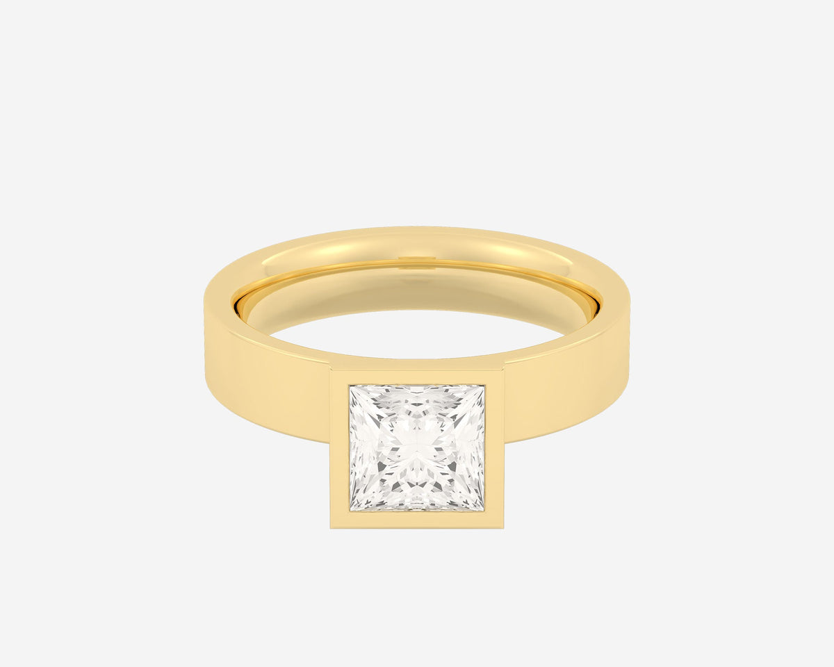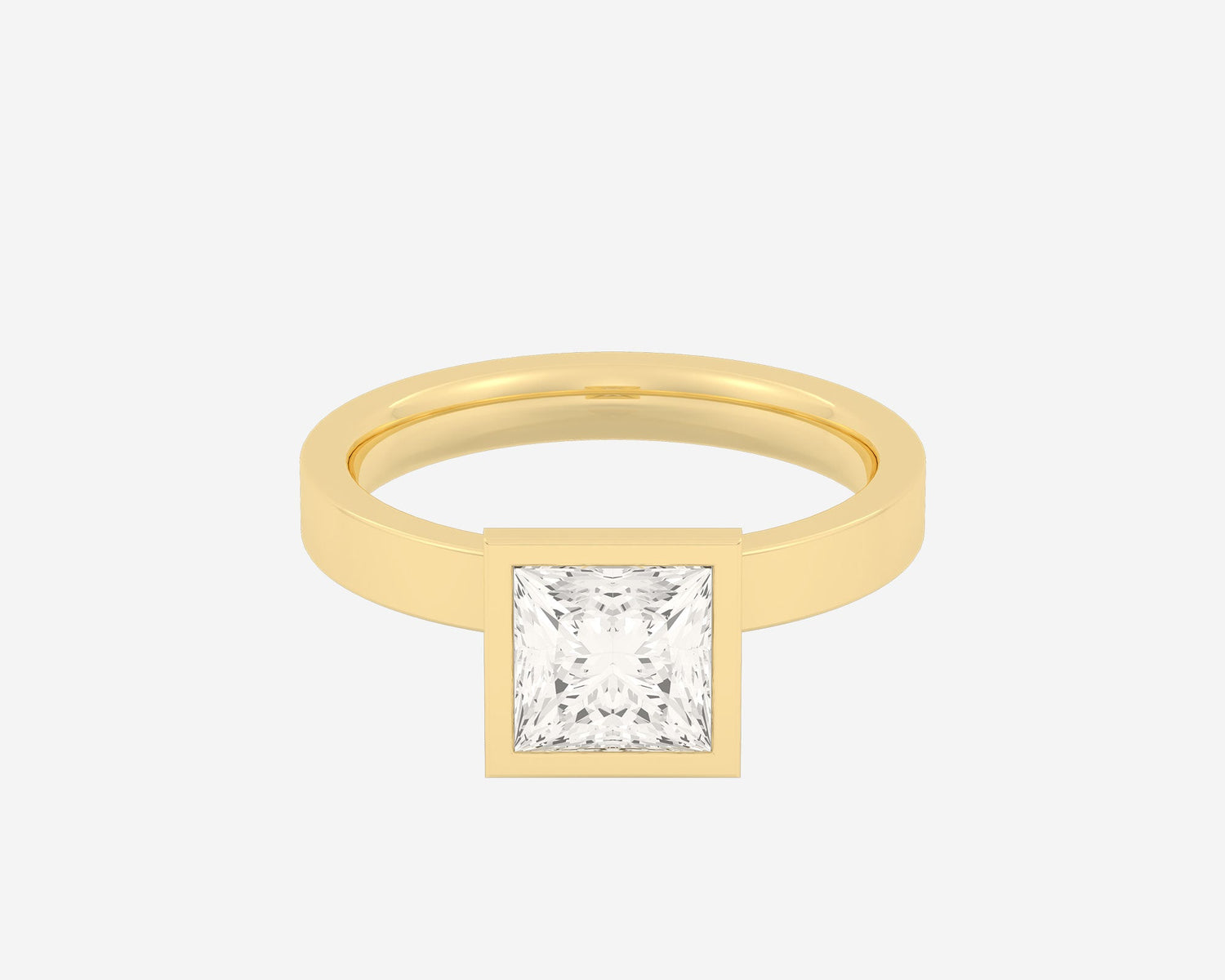 This Square Bezel Solitaire Princess by Holden features a princess-cut diamond framed by a sharp square bezel that enhances its clean lines and radiant sparkle. The 1.5mm band adds delicate balance, creating a sophisticated and contemporary solitaire ring with sustainable craftsmanship at its core.