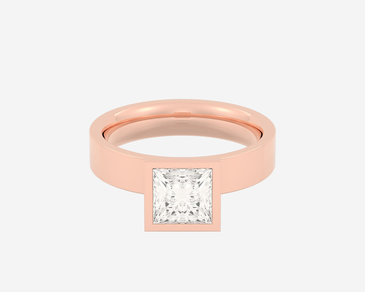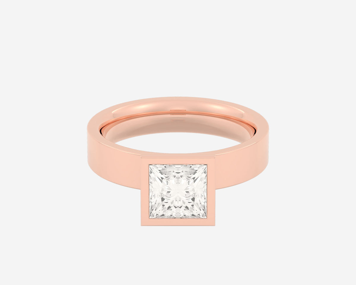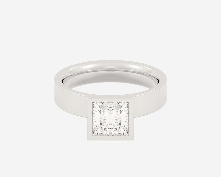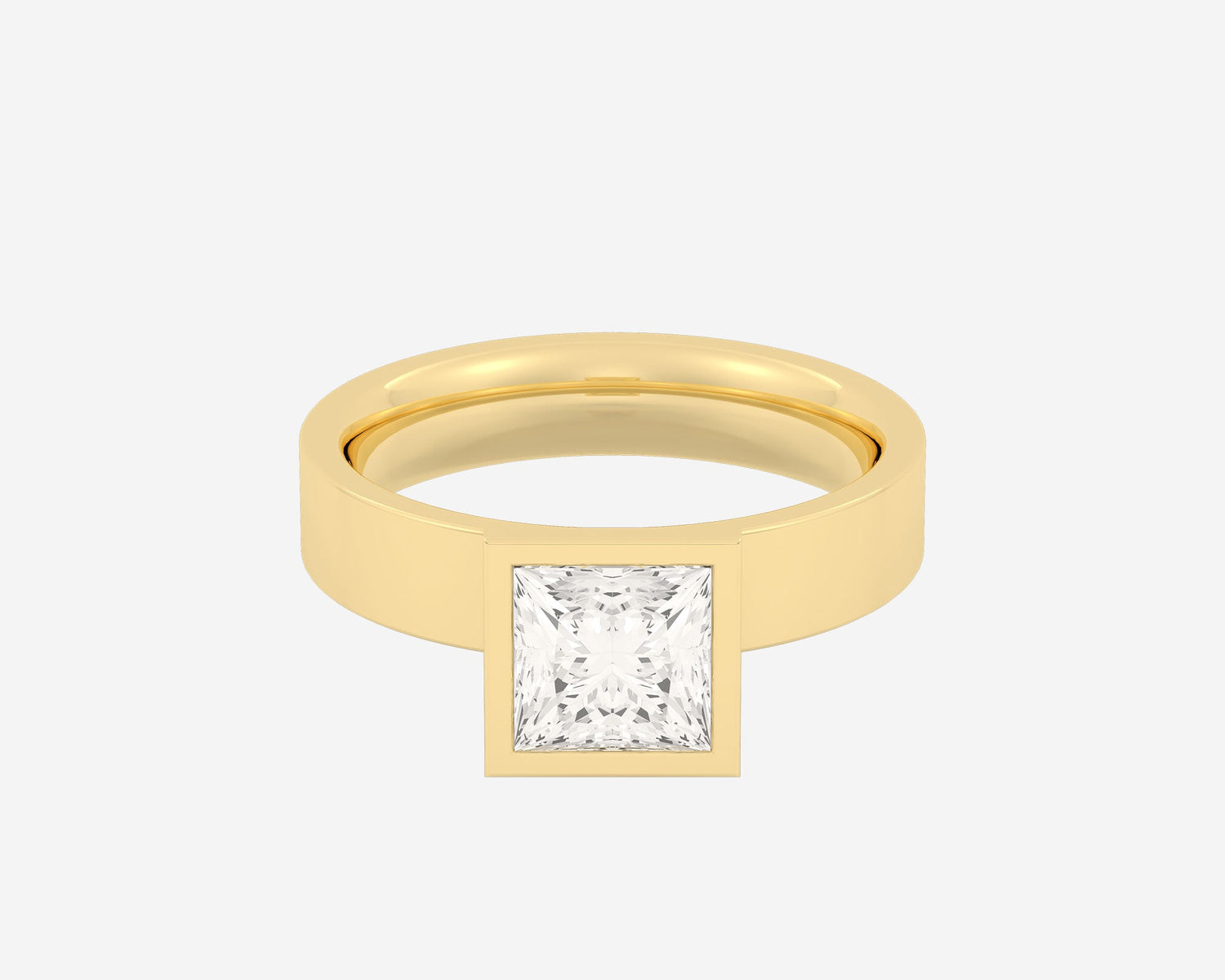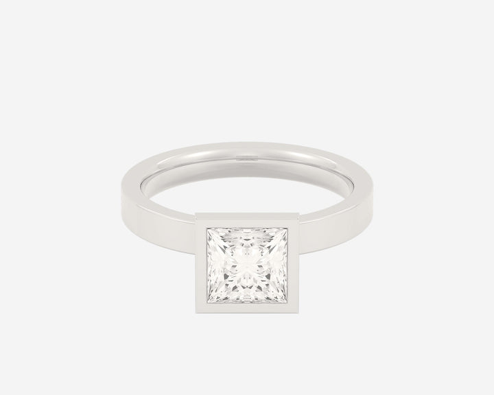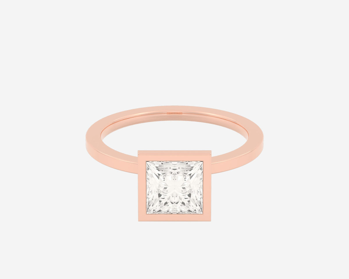 This Square Bezel Solitaire Princess by Holden features a princess-cut diamond framed by a sharp square bezel that enhances its clean lines and radiant sparkle. The 1.5mm band adds delicate balance, creating a sophisticated and contemporary solitaire ring with sustainable craftsmanship at its core.
