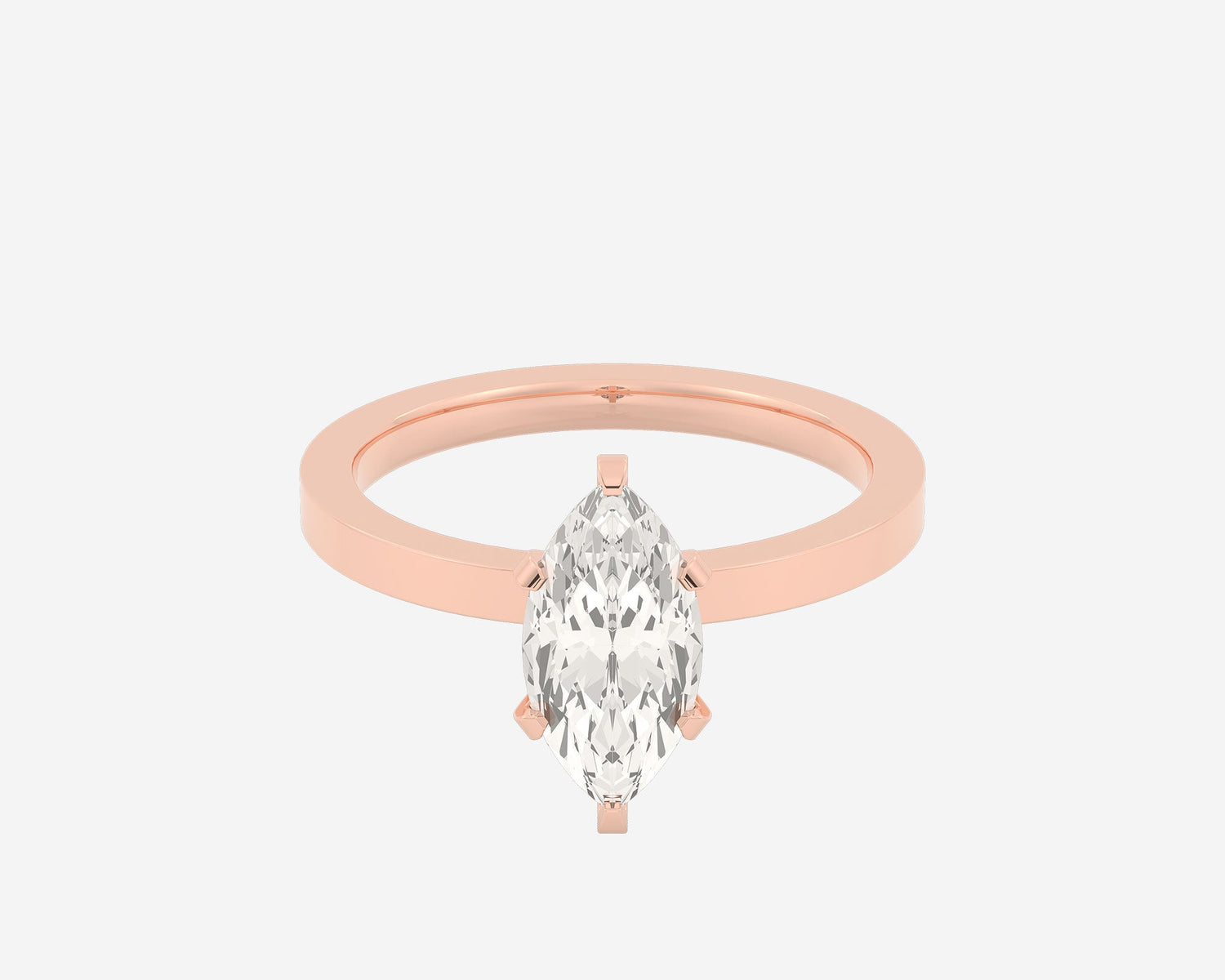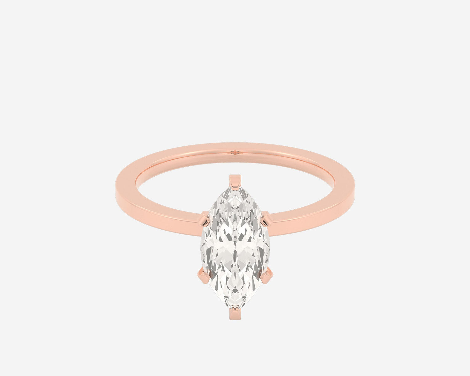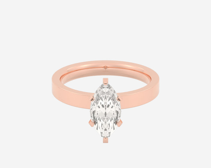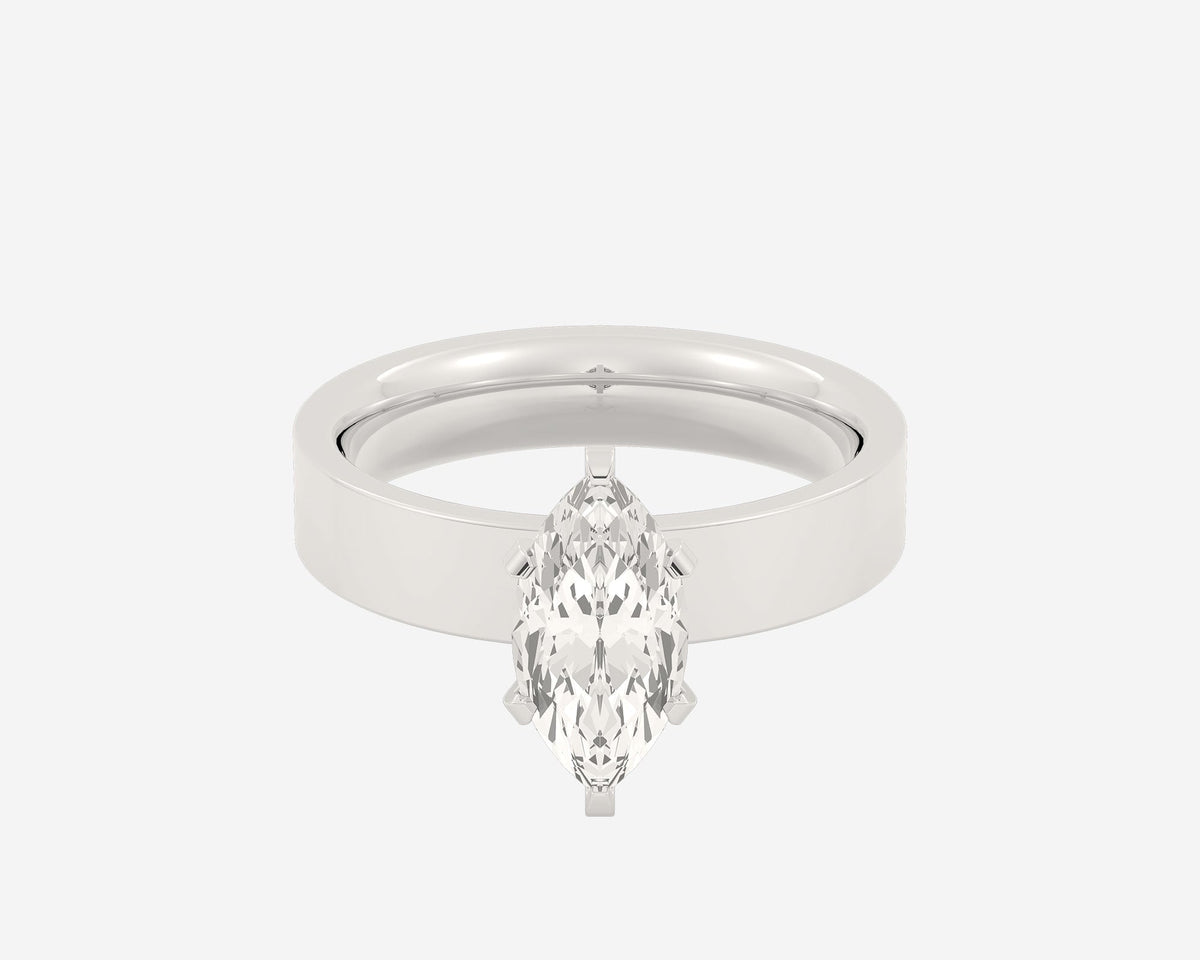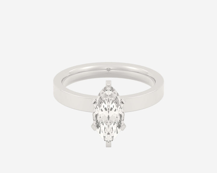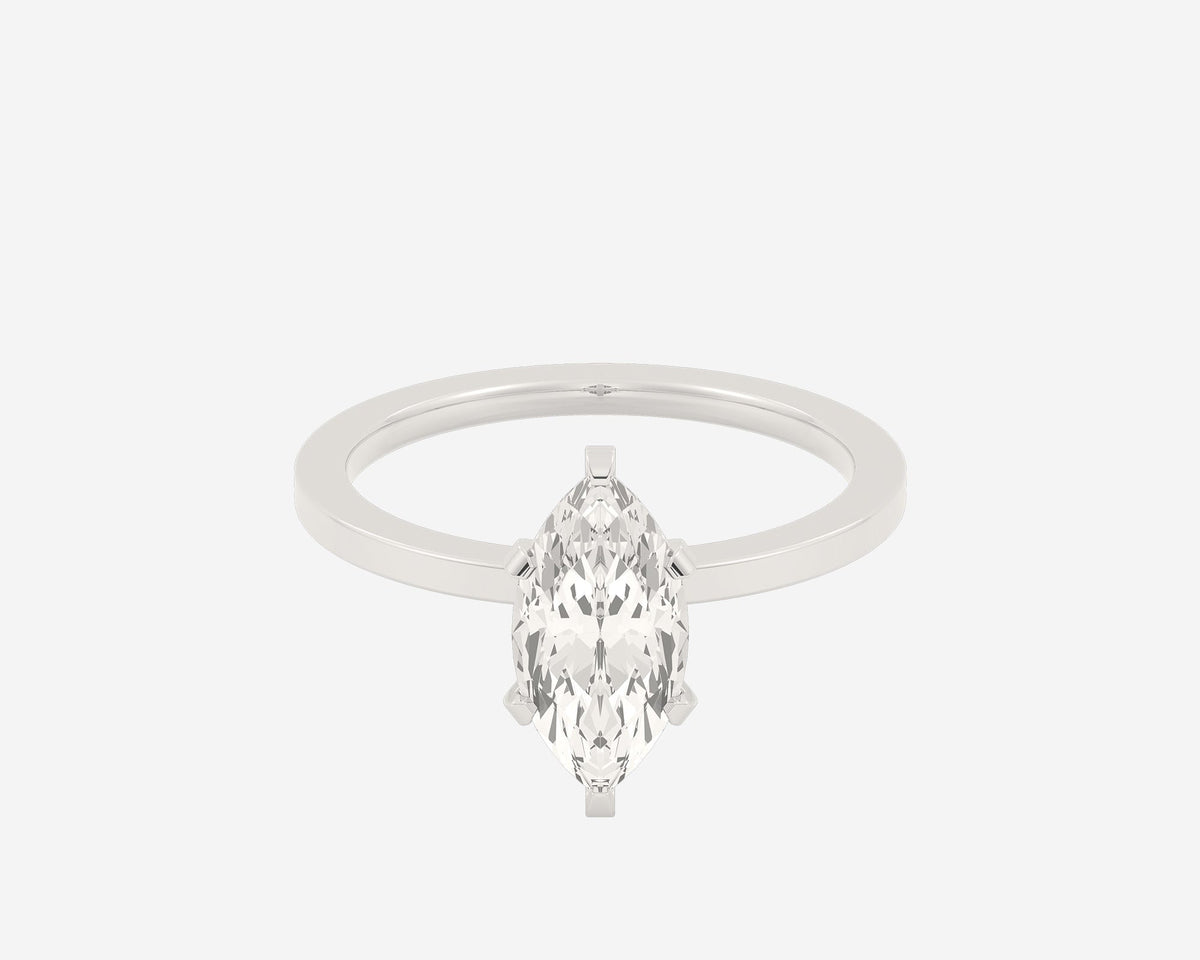 This Square Solitaire Marquise by Holden presents a marquise-cut diamond with sharp, clean lines set on a slender 1.5mm band. The design is a striking blend of modern geometry and traditional grace, symbolizing love that is both bold and enduring. Made with sustainable and ethical practices in NYC.