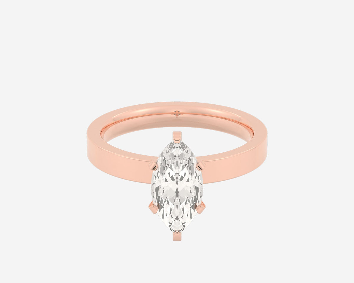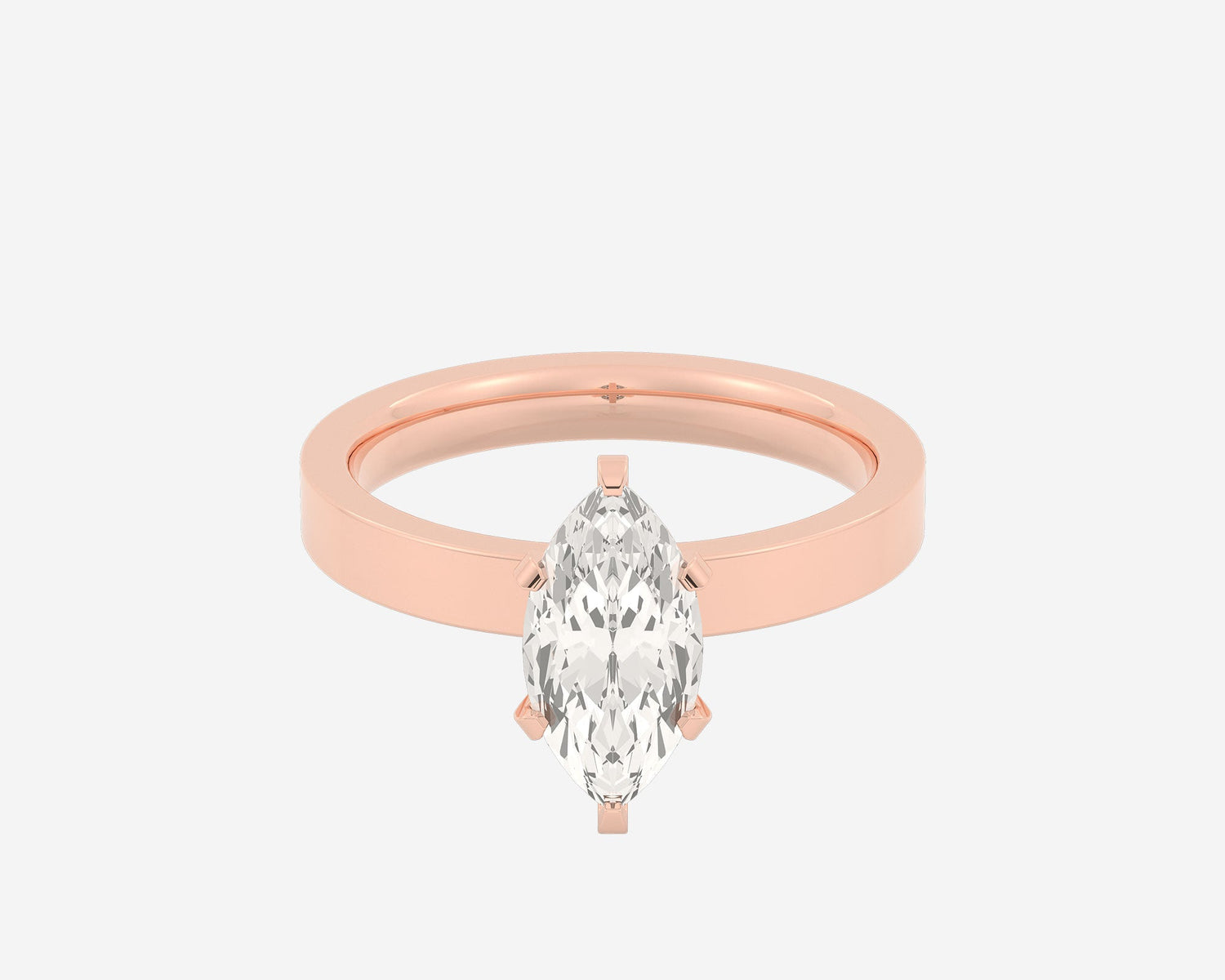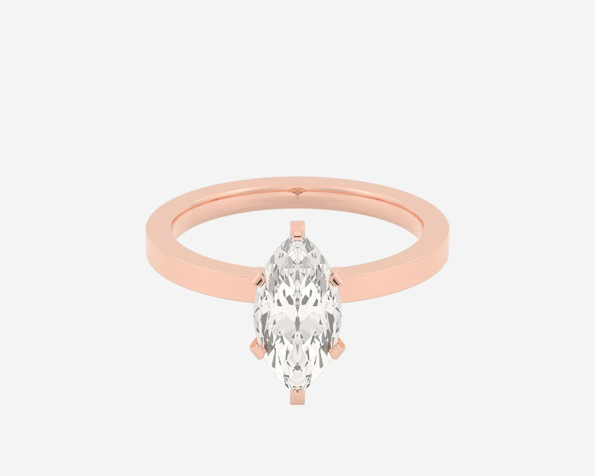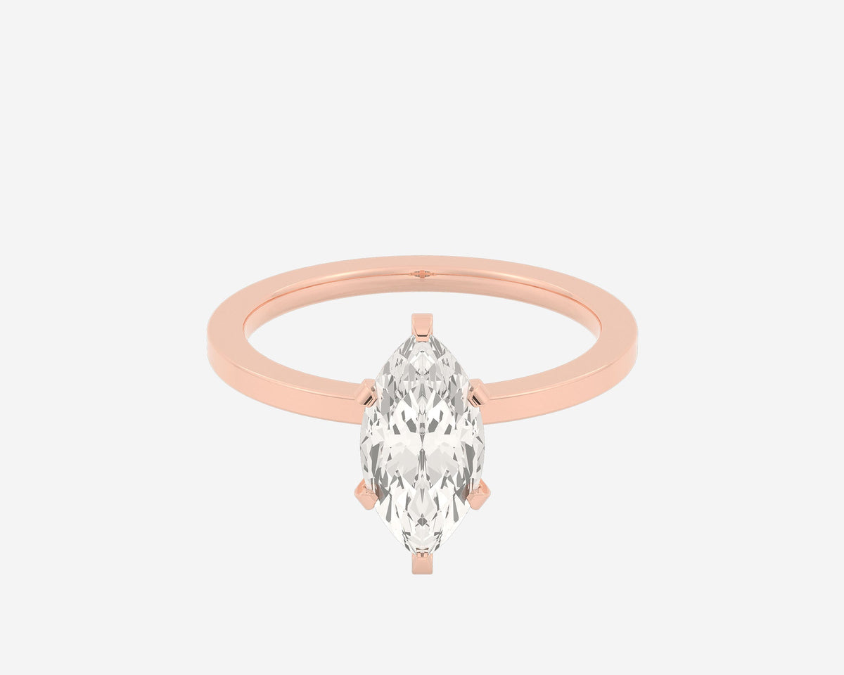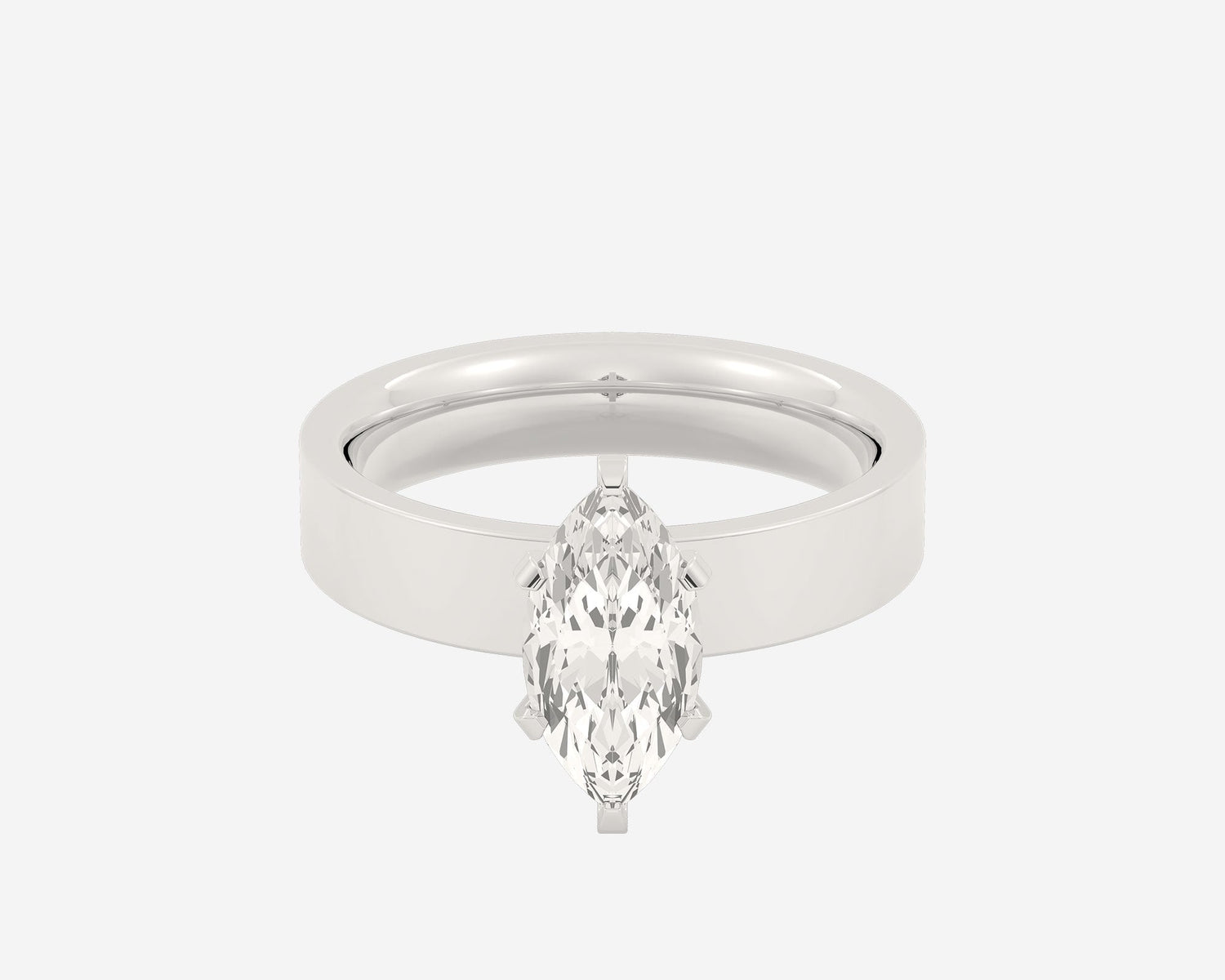 This Square Solitaire Marquise by Holden presents a marquise-cut diamond with sharp, clean lines set on a slender 1.5mm band. The design is a striking blend of modern geometry and traditional grace, symbolizing love that is both bold and enduring. Made with sustainable and ethical practices in NYC.