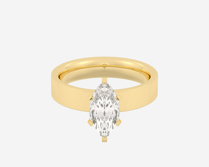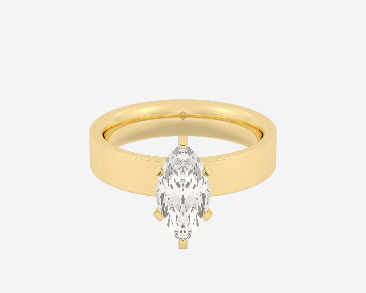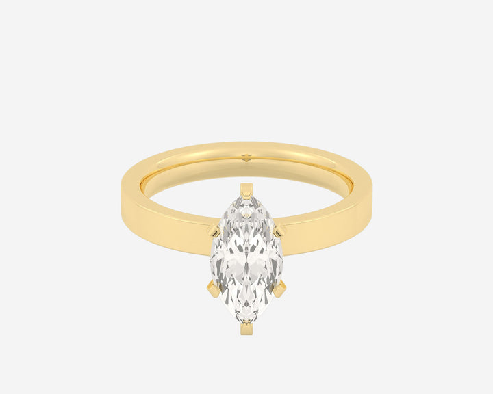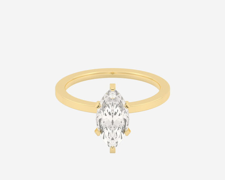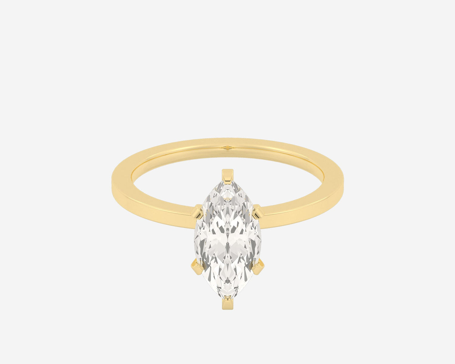 Handcrafted in 14k yellow gold with a marquise-cut lab-grown diamond. Band width measures 1.5mm. Made from recycled metals and ethical lab-grown diamonds, crafted in NYC.