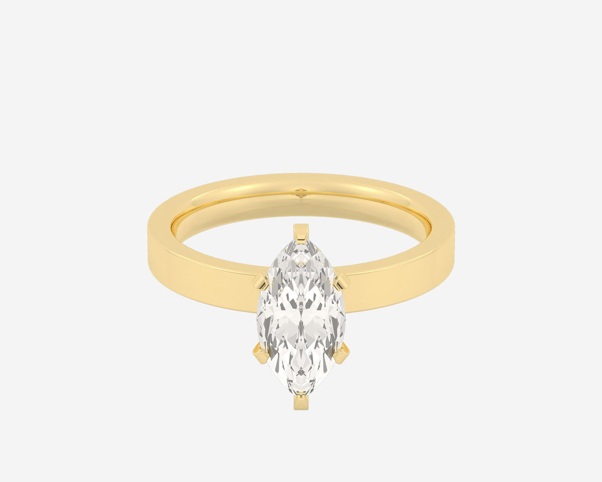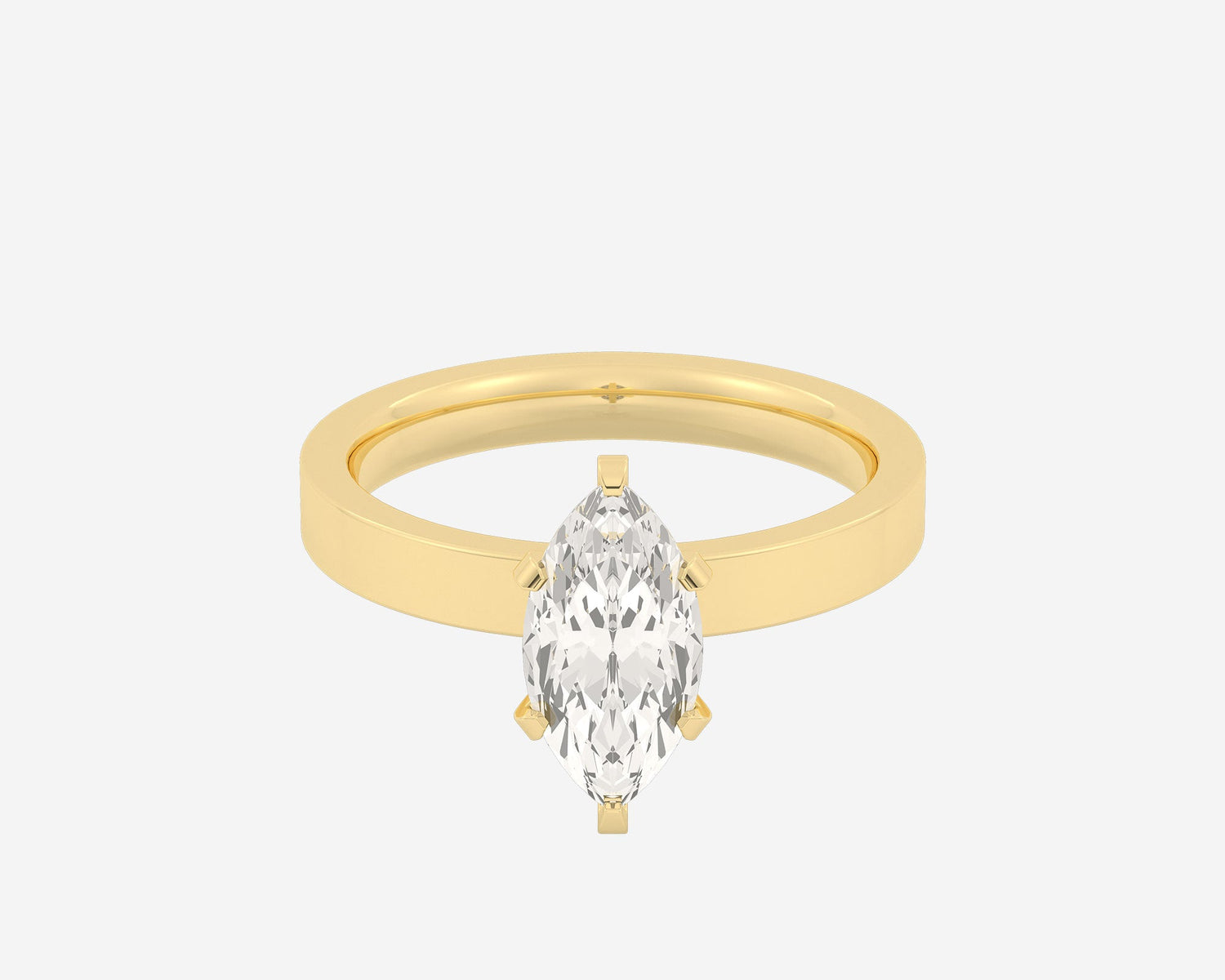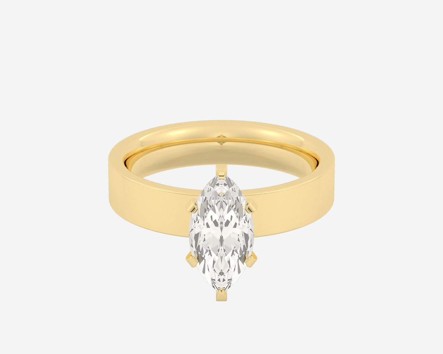 Handcrafted in 14k yellow gold with a marquise-cut lab-grown diamond. Band width measures 1.5mm. Made from recycled metals and ethical lab-grown diamonds, crafted in NYC.