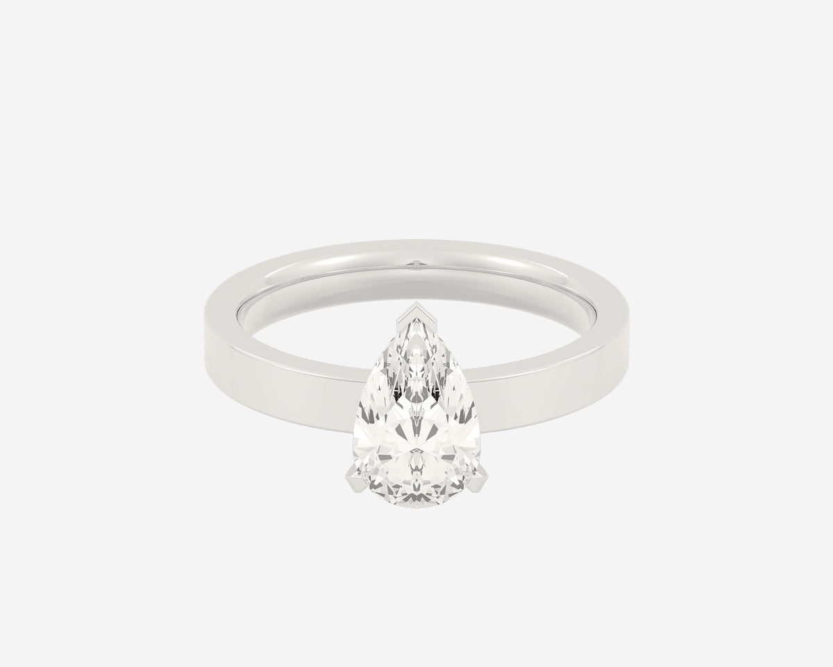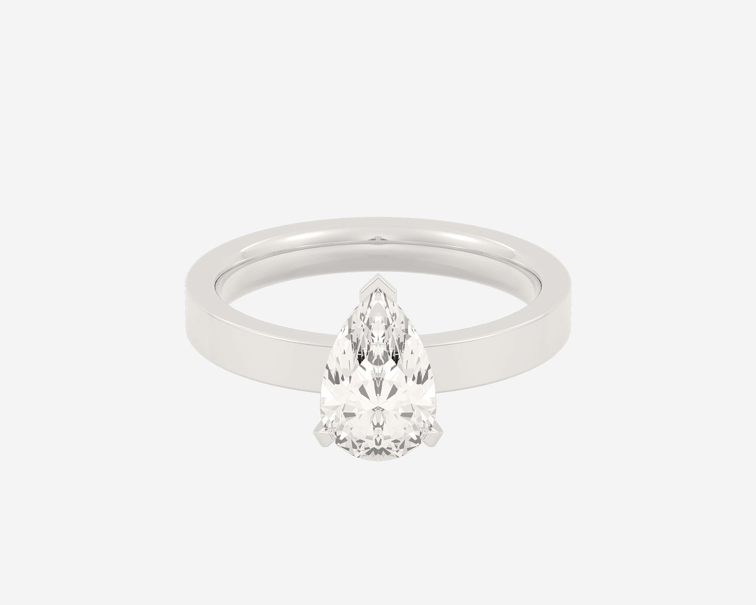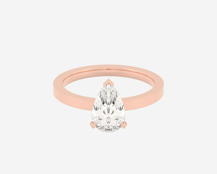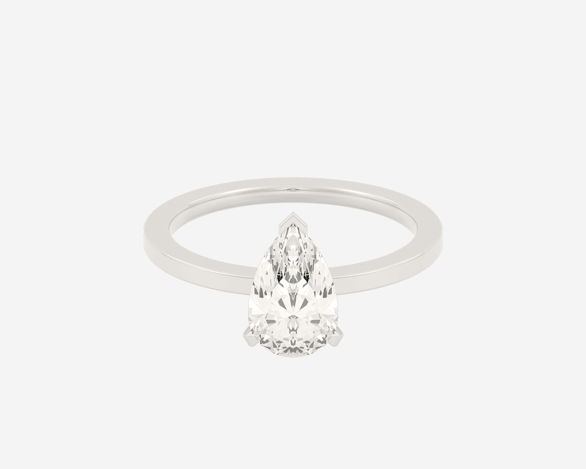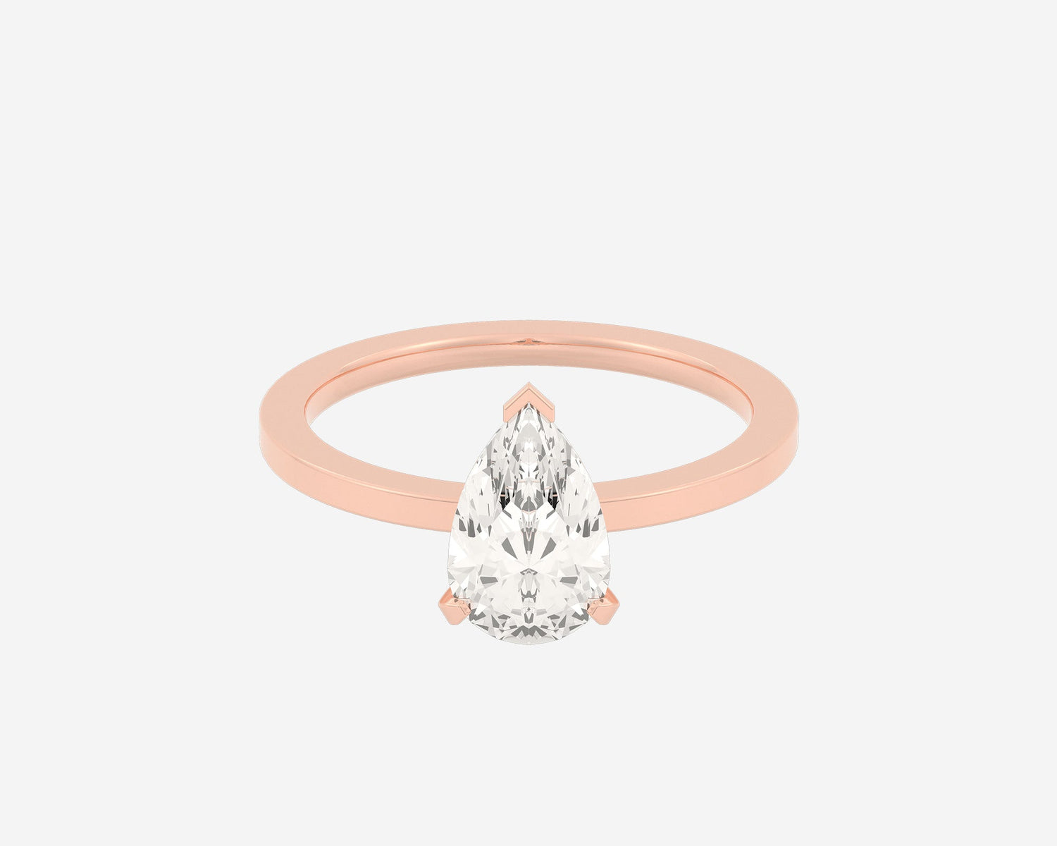 This Square Solitaire — Pear by Holden is a distinctive solitaire ring featuring a pear-shaped lab-grown diamond embraced by a square setting, blending classic form with contemporary edge. Handcrafted with ethical materials in NYC, it offers a unique statement of love and style.