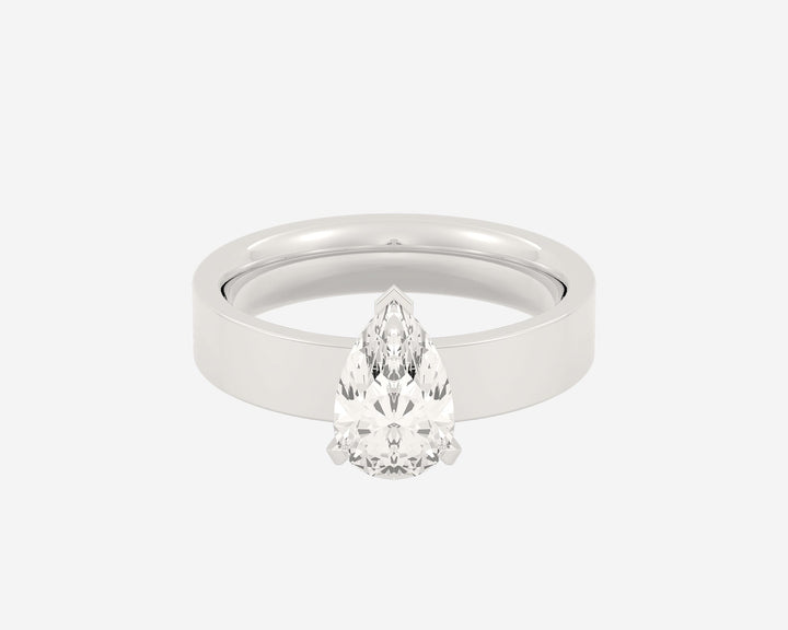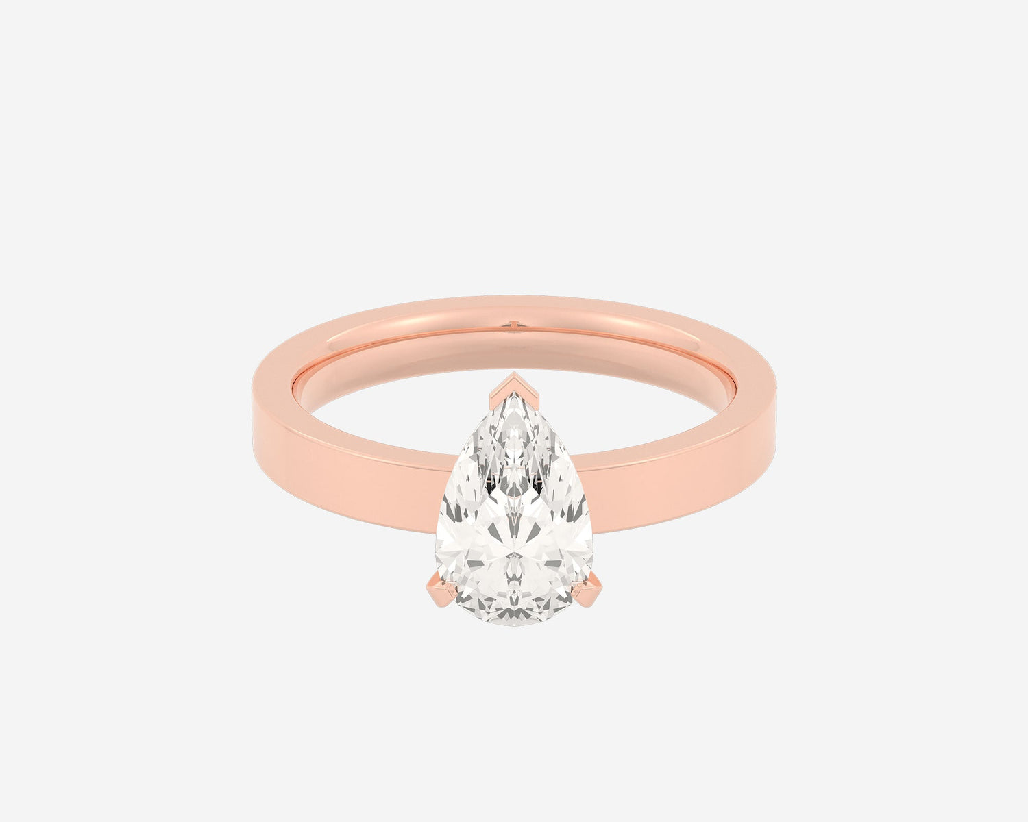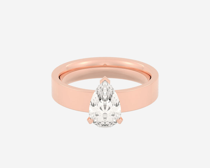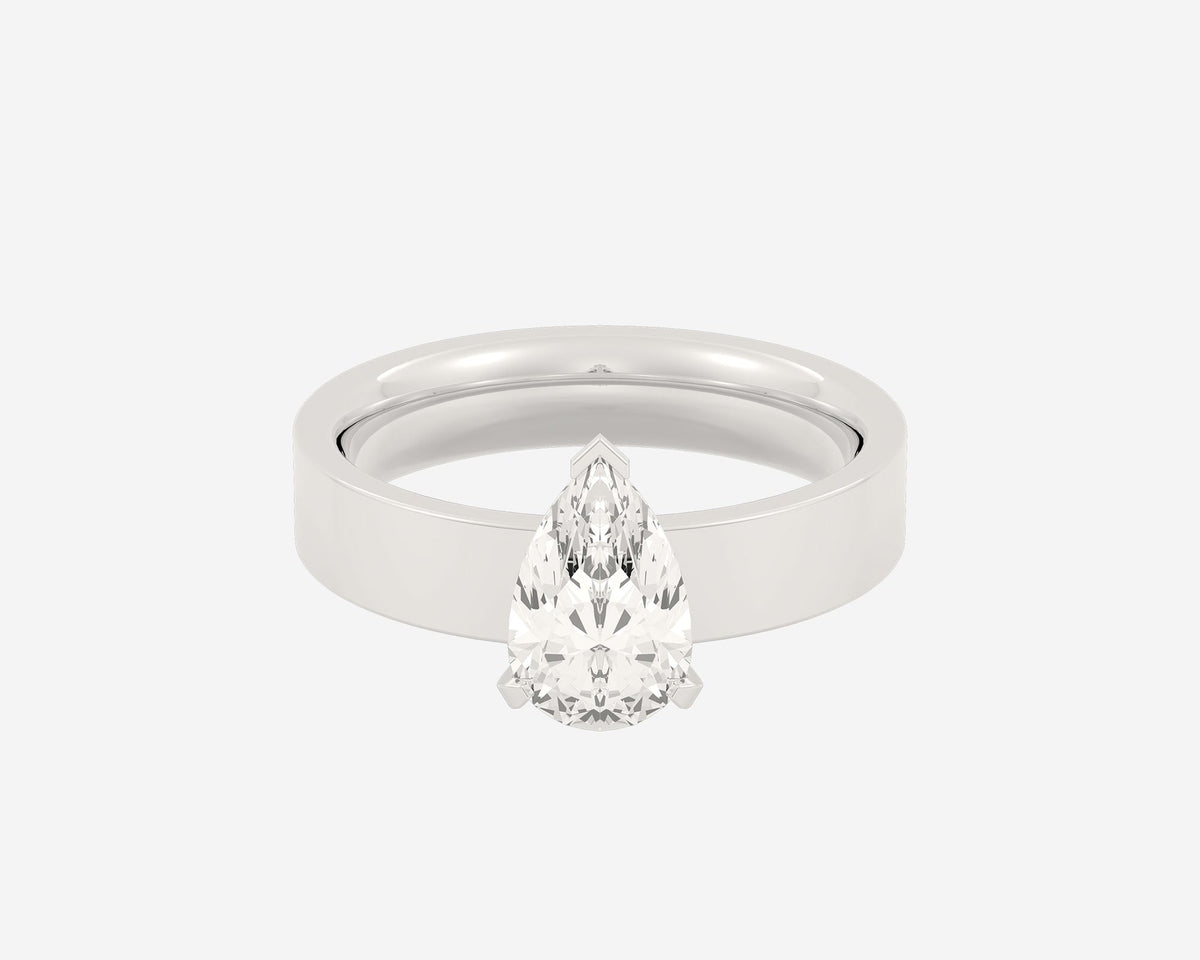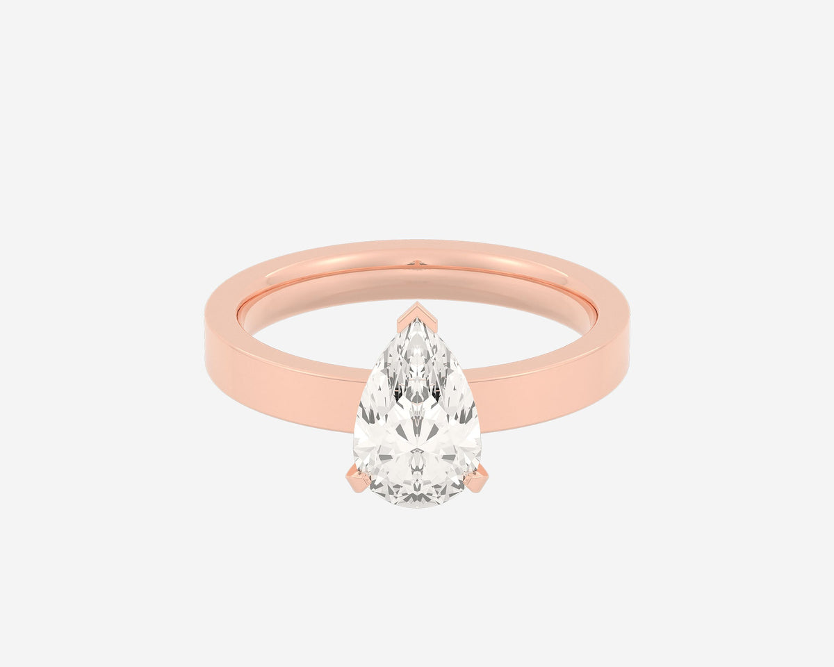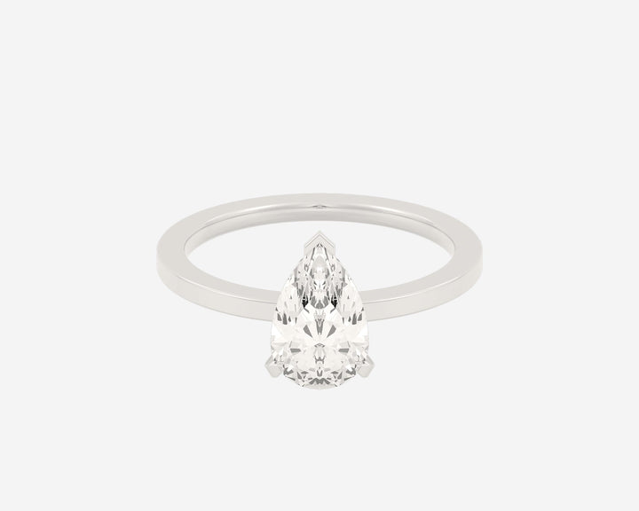 This Square Solitaire — Pear by Holden is a distinctive solitaire ring featuring a pear-shaped lab-grown diamond embraced by a square setting, blending classic form with contemporary edge. Handcrafted with ethical materials in NYC, it offers a unique statement of love and style.