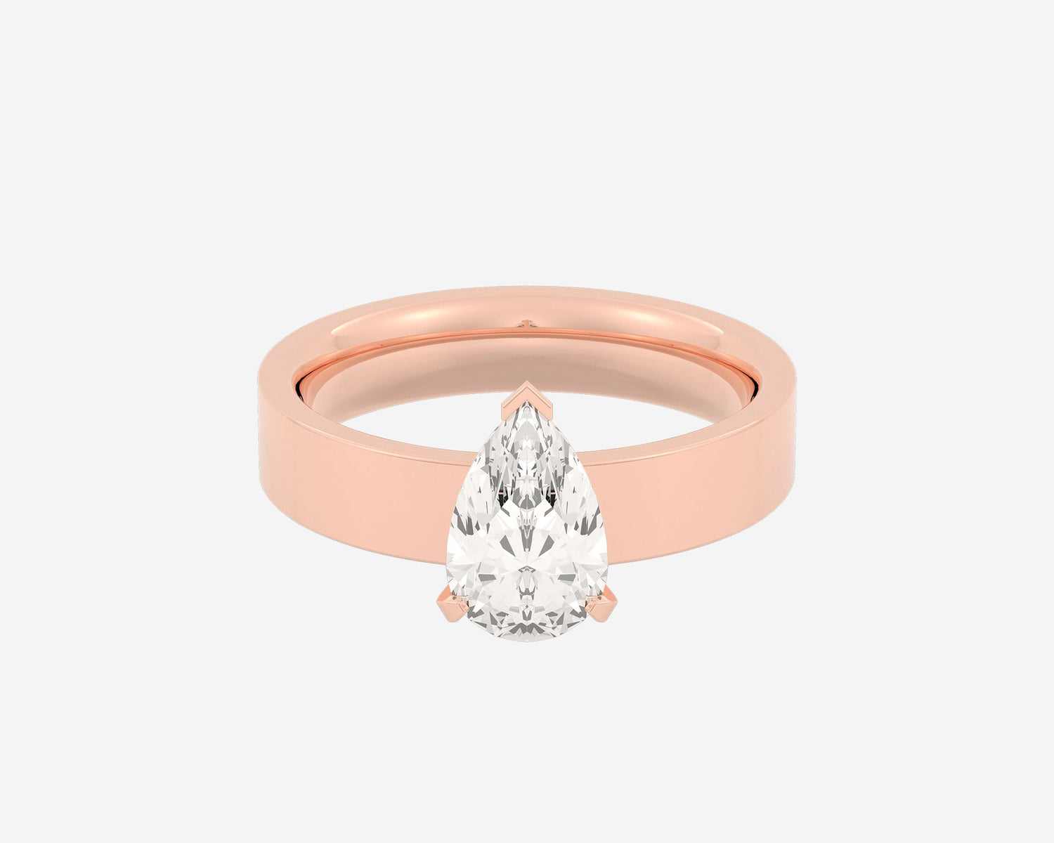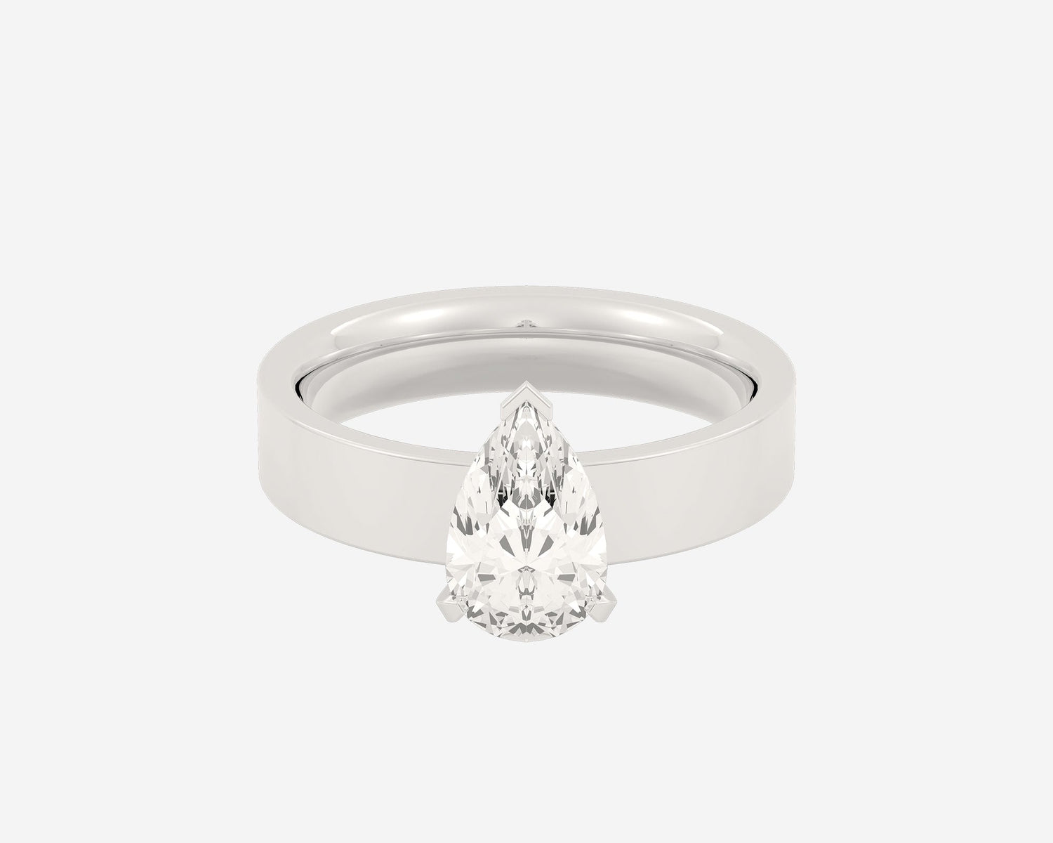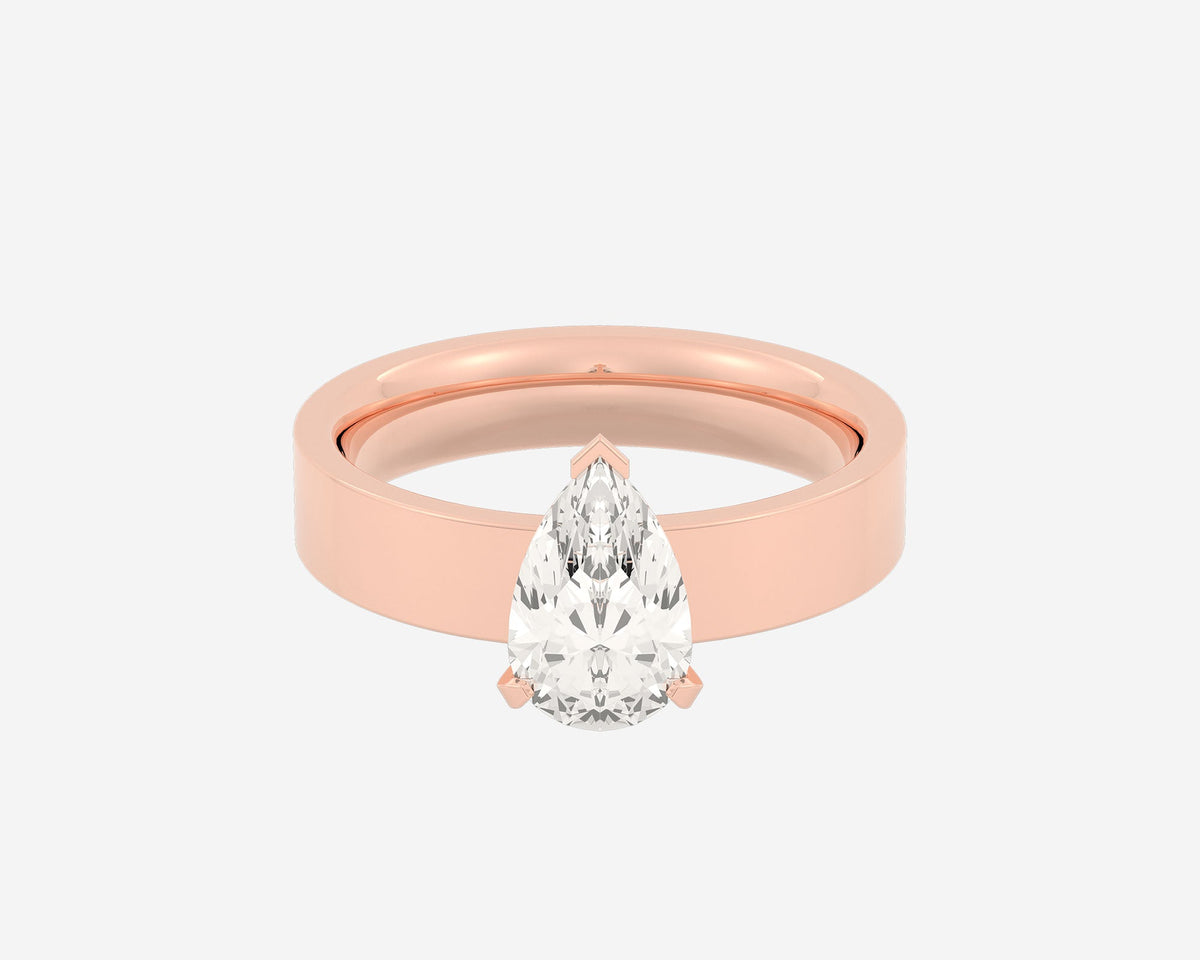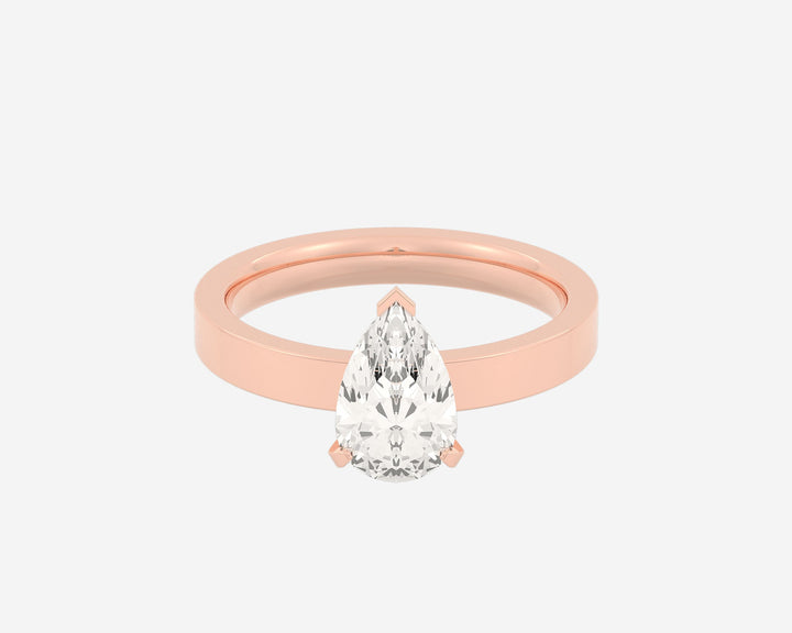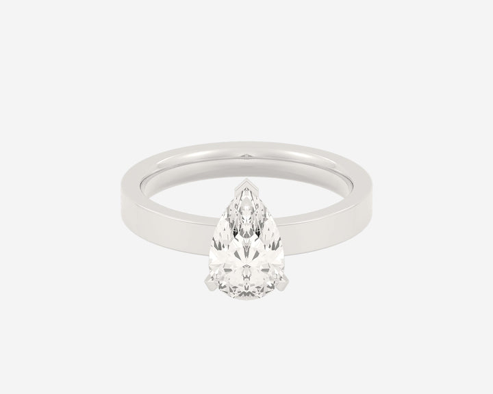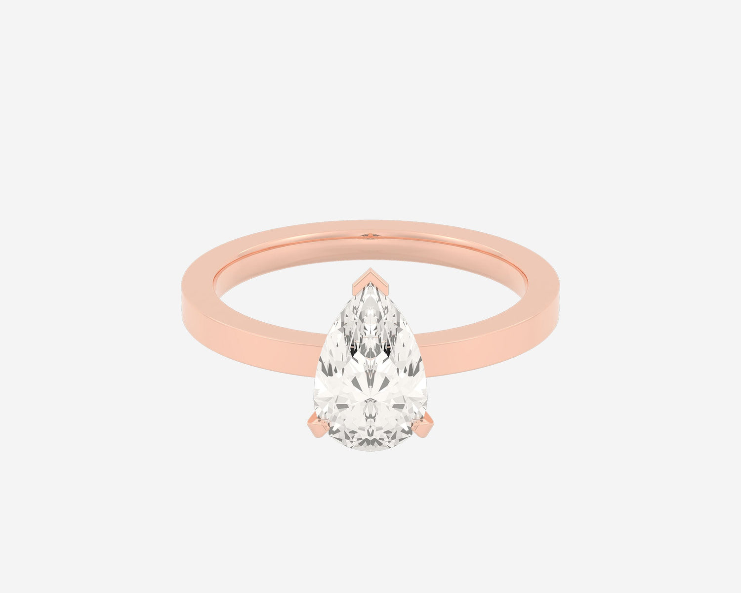 This Square Solitaire — Pear by Holden is a distinctive solitaire ring featuring a pear-shaped lab-grown diamond embraced by a square setting, blending classic form with contemporary edge. Handcrafted with ethical materials in NYC, it offers a unique statement of love and style.