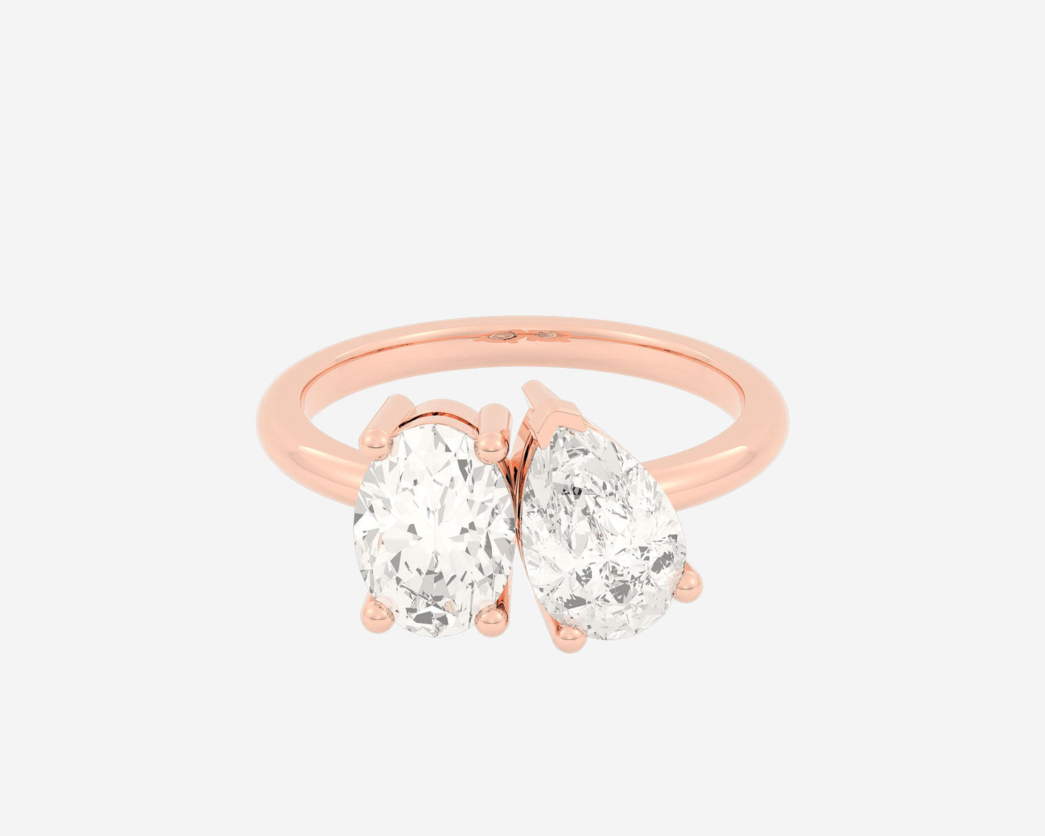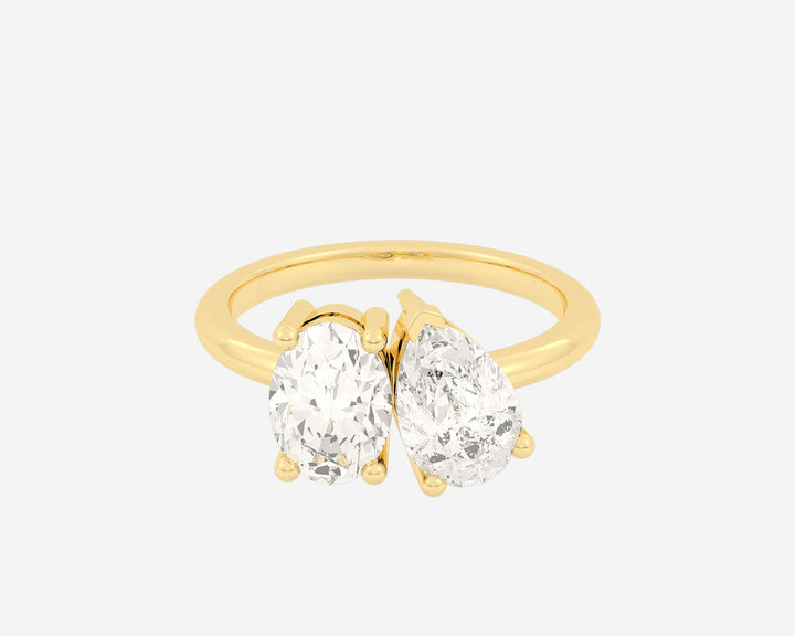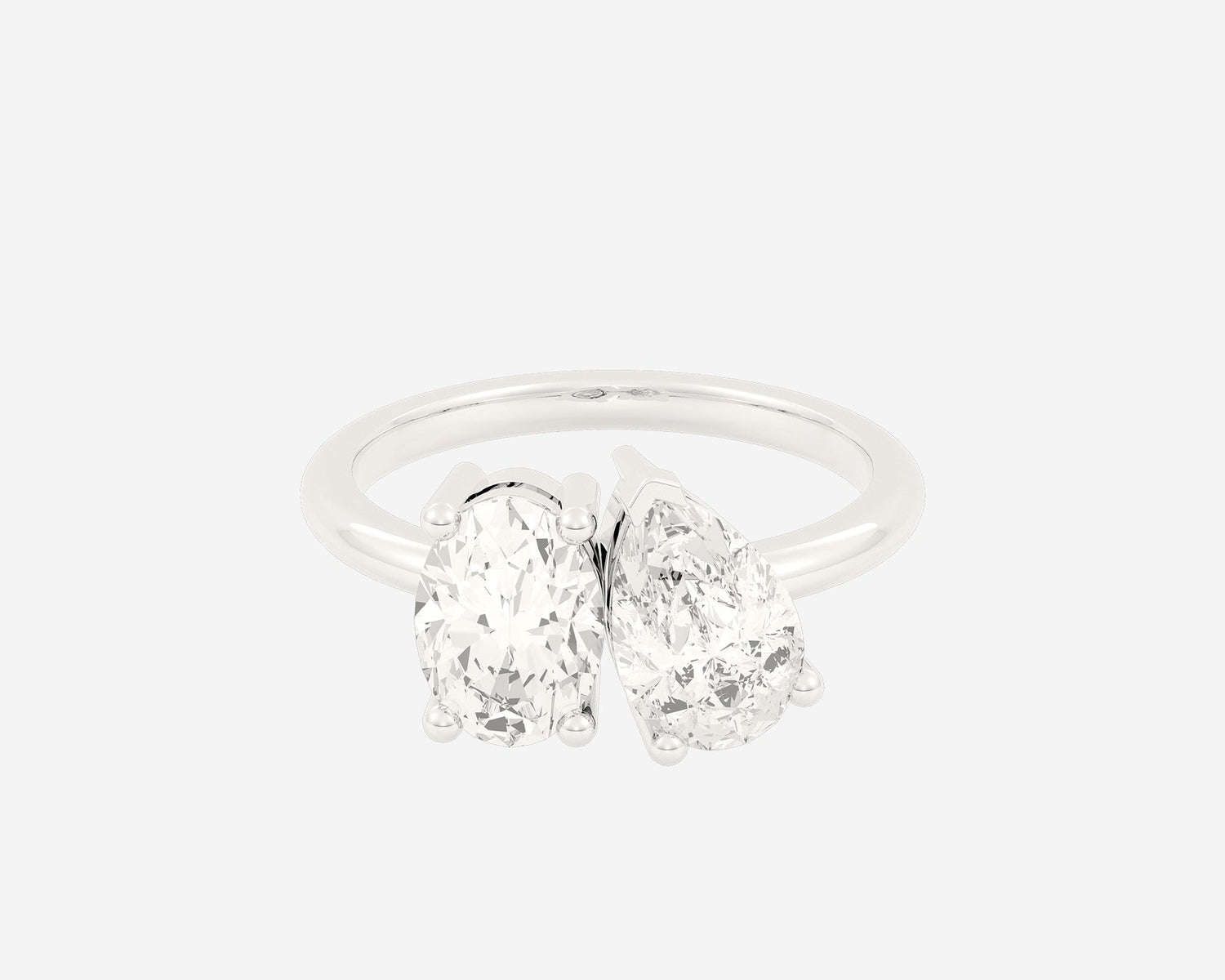 This Toi et Moi — Oval/Pear engagement ring by Holden embodies the timeless 'you and me' design with a graceful pairing of oval and pear-shaped lab-grown diamonds. Crafted sustainably in NYC, it is a poetic symbol of partnership and ethical luxury.