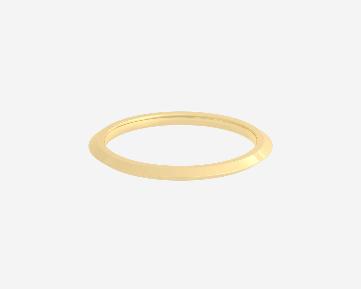 Handcrafted in 10k yellow gold, 1.5mm width with triangular profile. Made from conflict-free, recycled metals with a unisex, comfort-fit design.