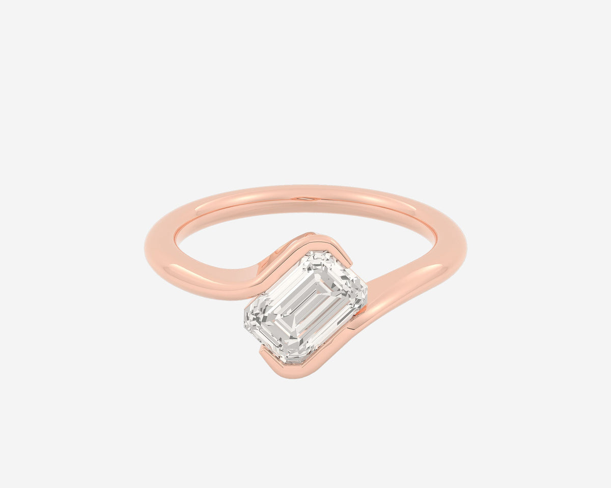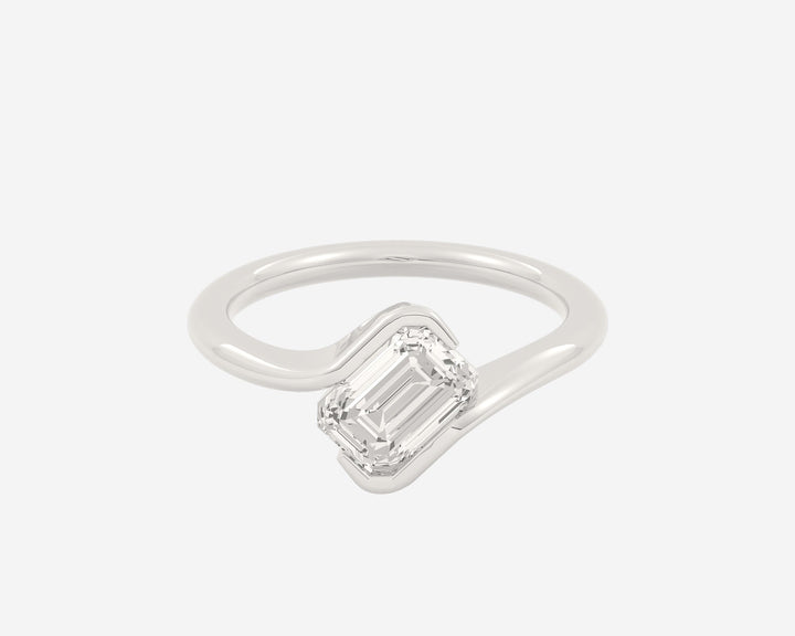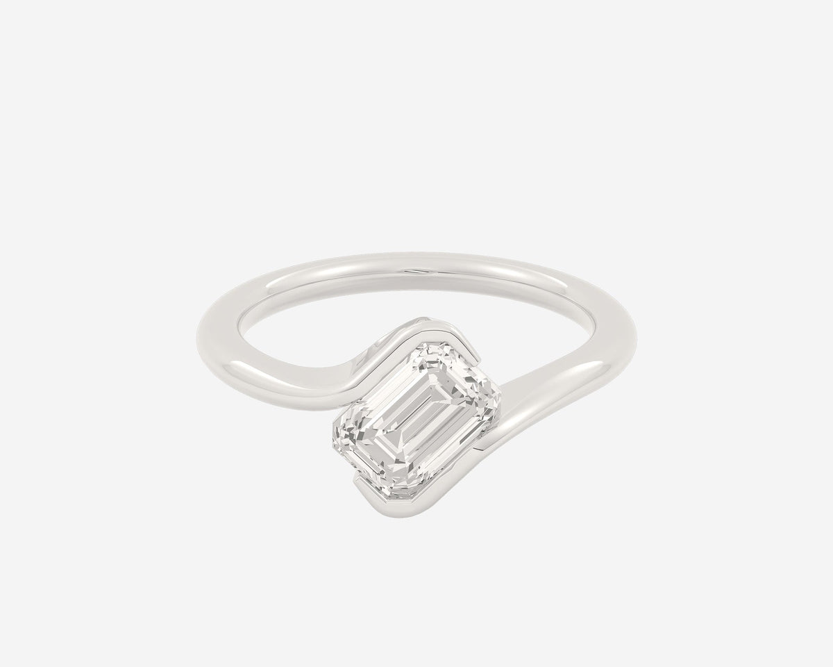 This Within Solitaire — Emerald ring by Holden offers a modern and minimalist engagement design where a lab-grown emerald-cut diamond appears to float between the edges of a rounded band. Crafted from recycled gold or platinum, this ring combines structure and timeless simplicity for a conscious commitment that’s both distinctive and wearable.