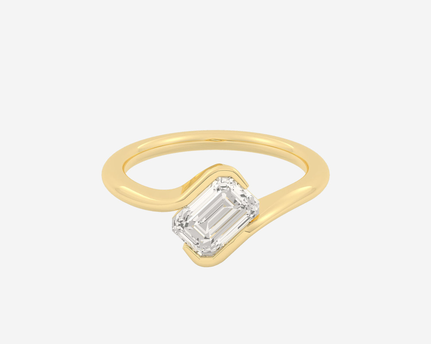 Handcrafted in 14k yellow gold, 2mm band width with lab-grown emerald-cut diamond.